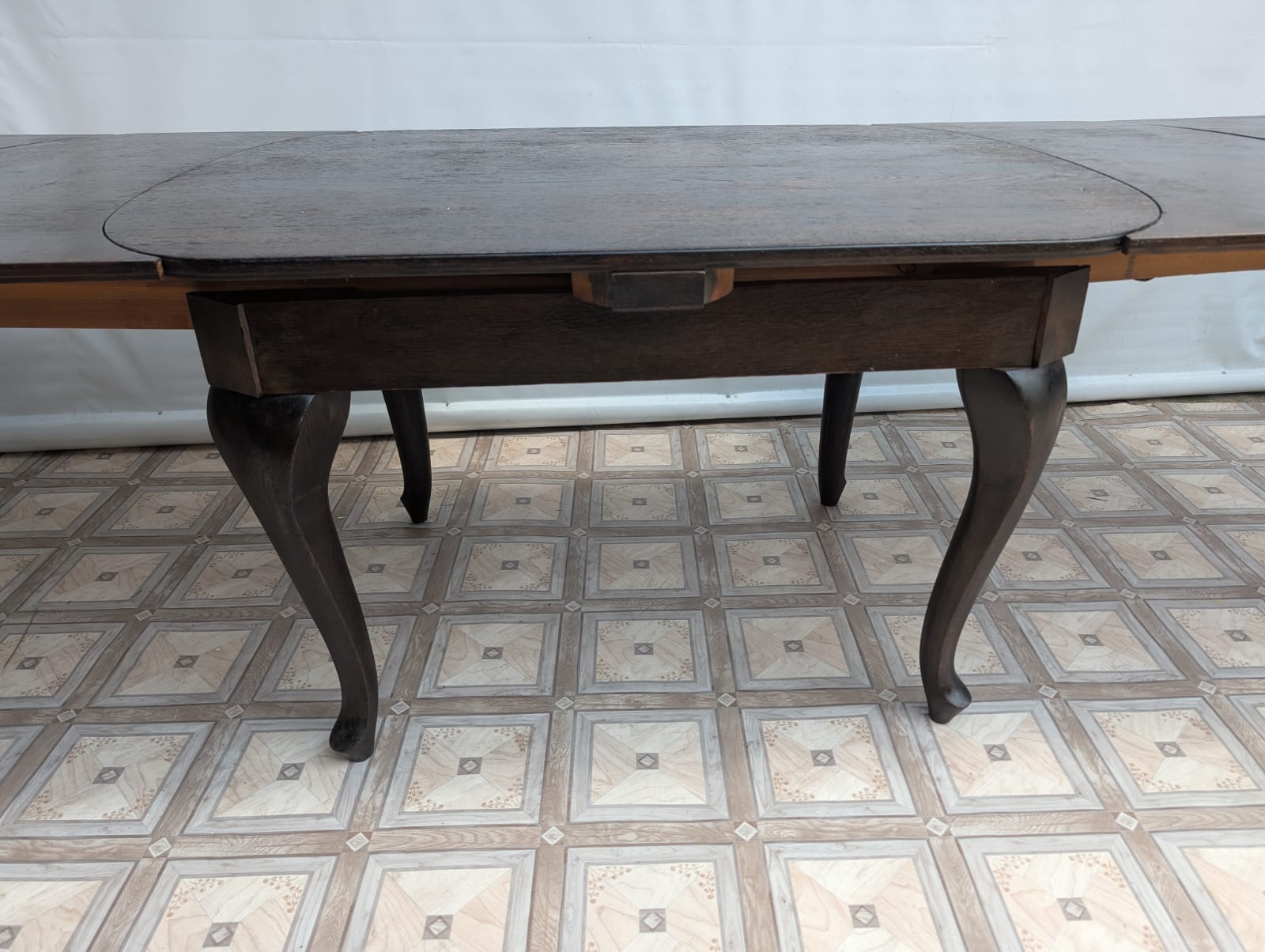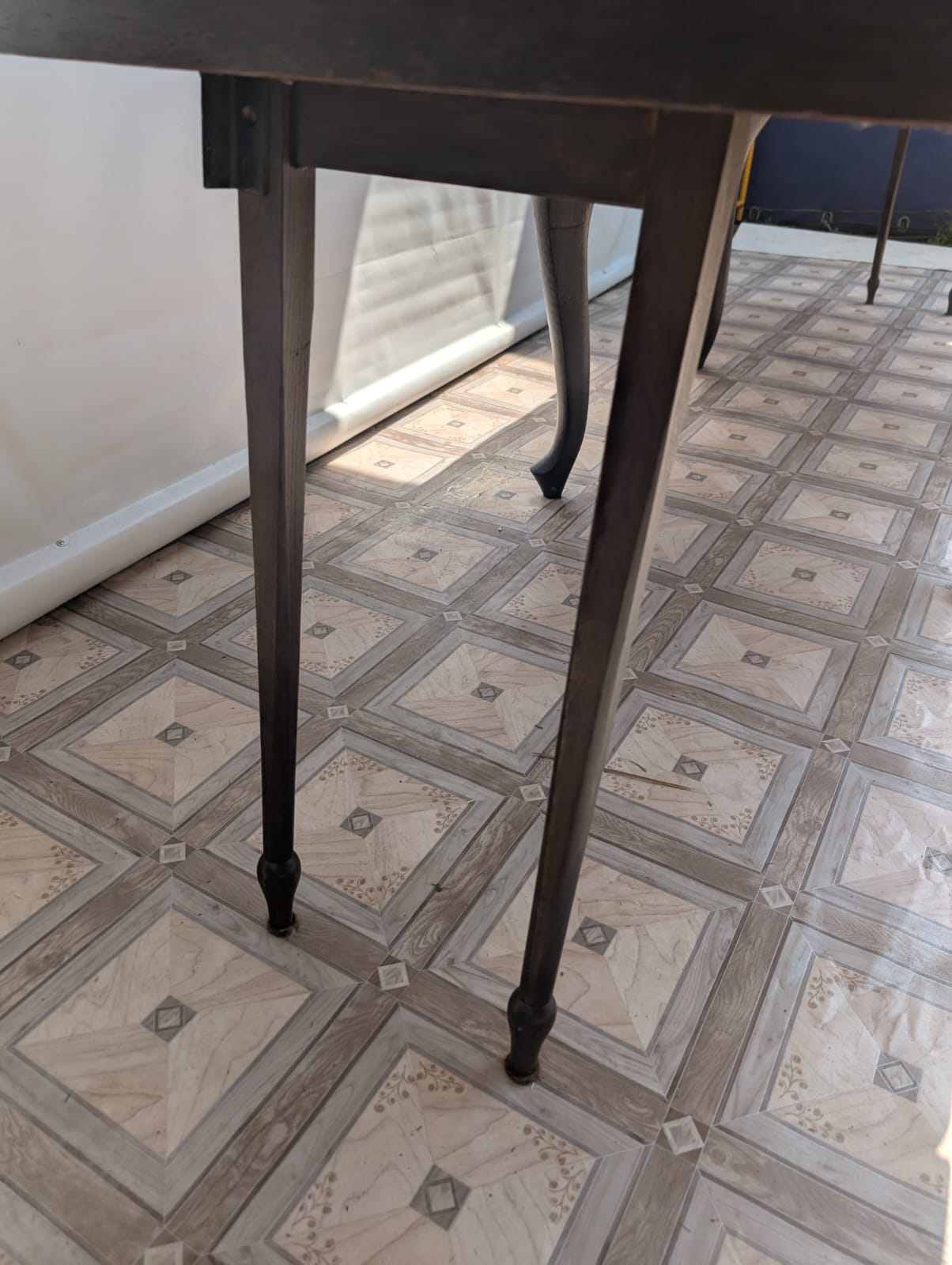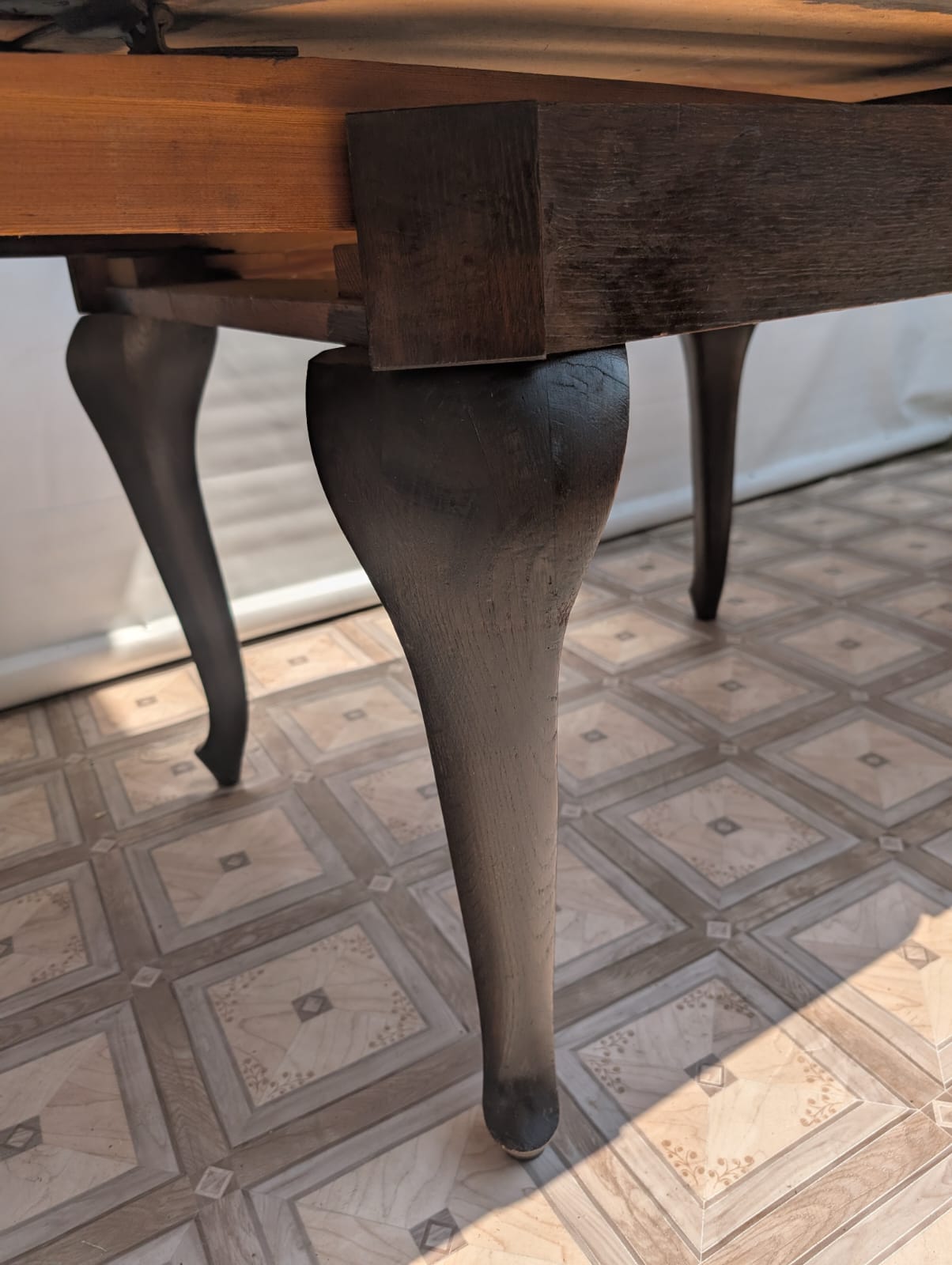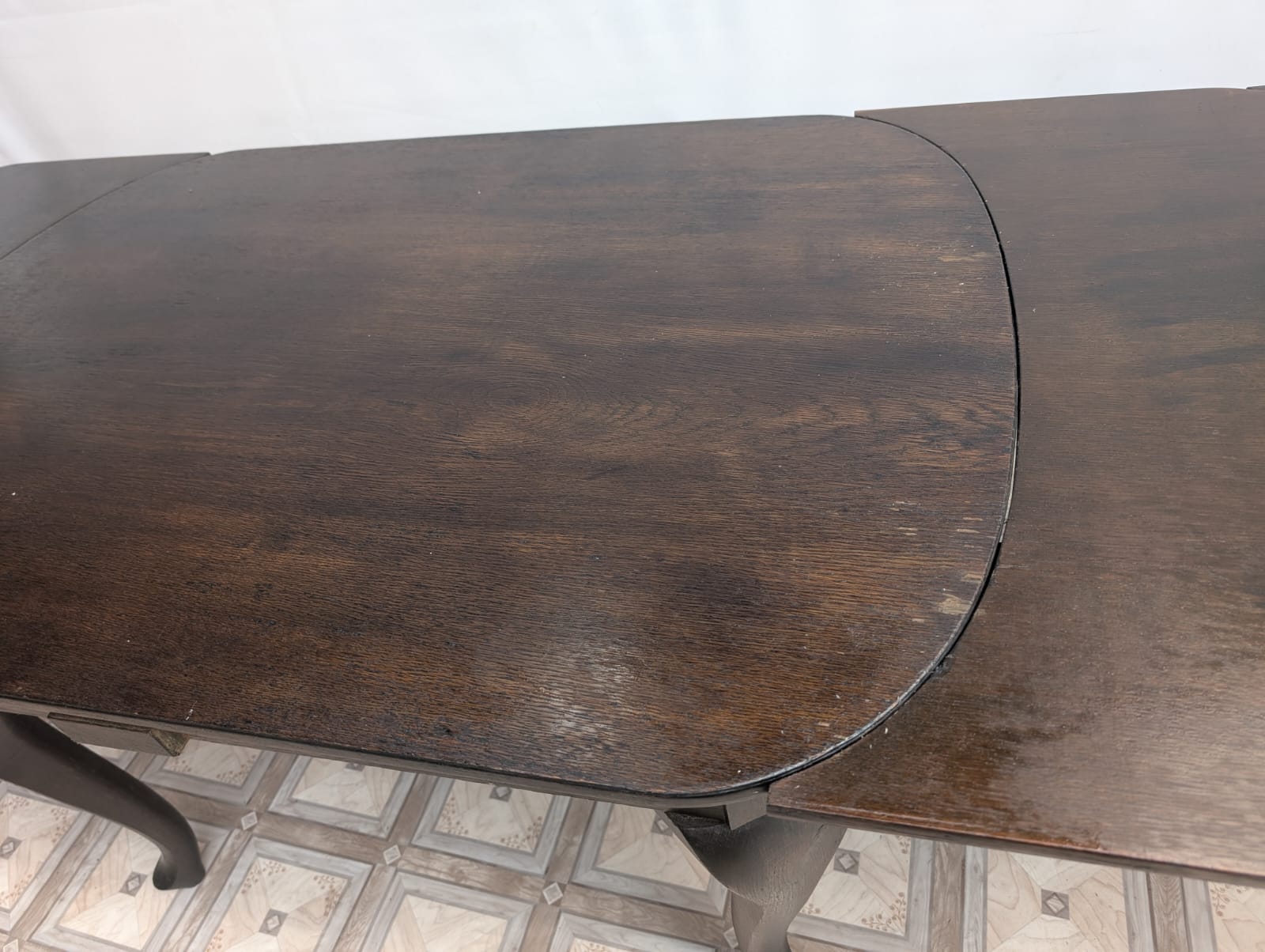 Stół posiada oznaki minionego czasu oraz na nodze wystającej po rozłożeniu widać pęknięcie nogi.