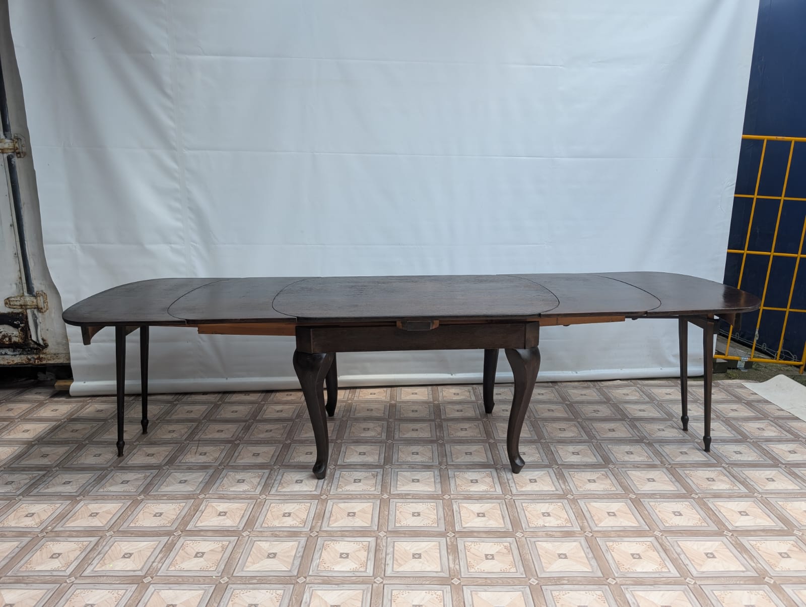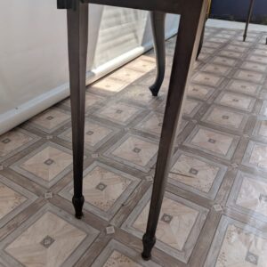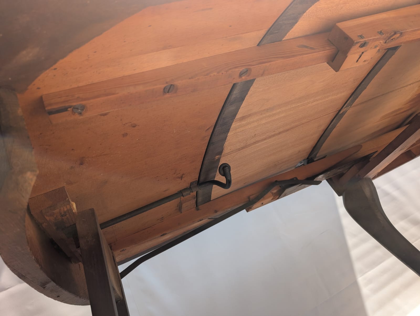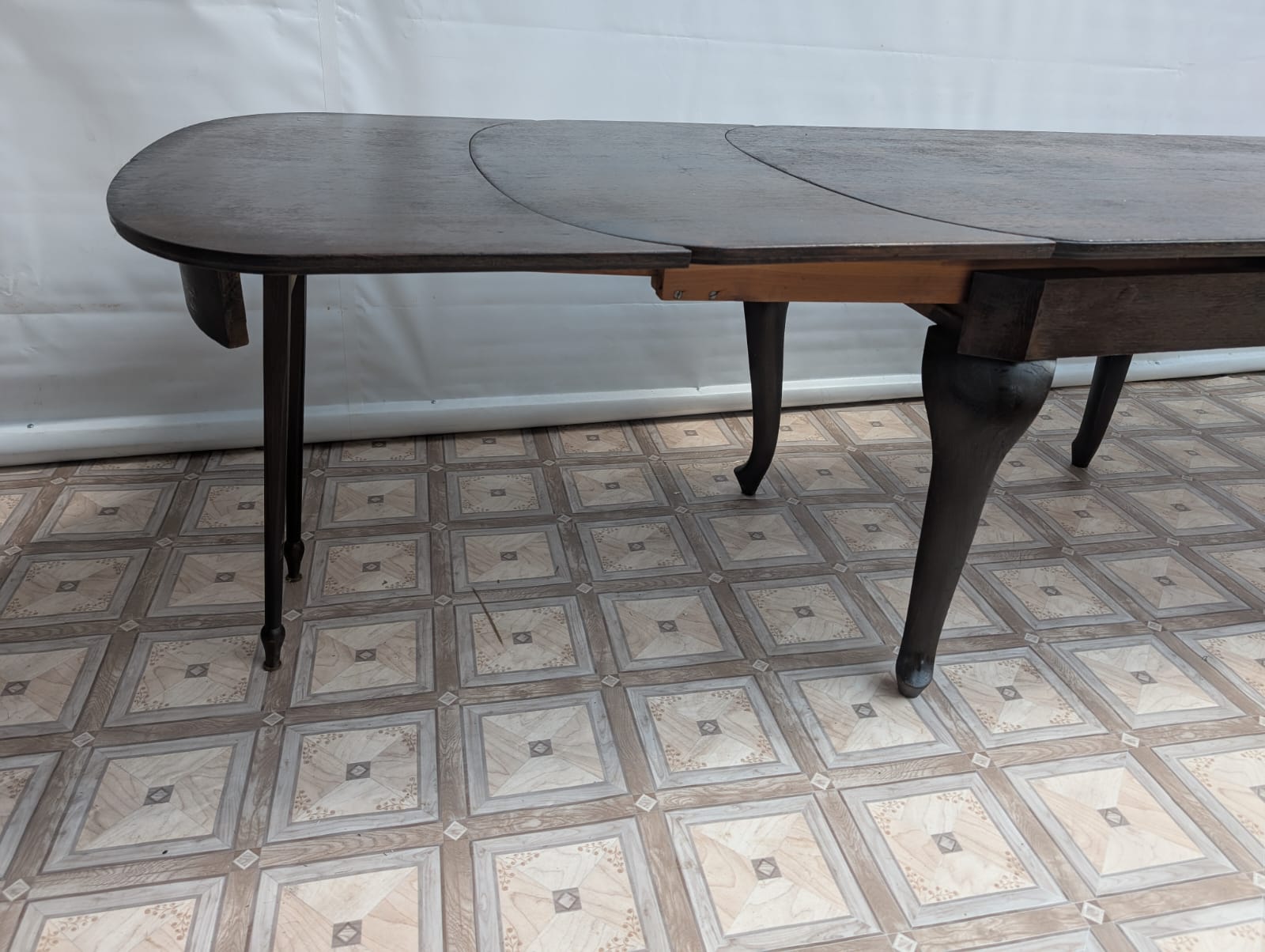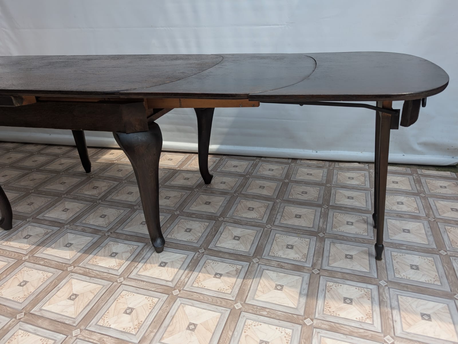 Stół posiada oznaki minionego czasu oraz na nodze wystającej po rozłożeniu widać pęknięcie nogi.