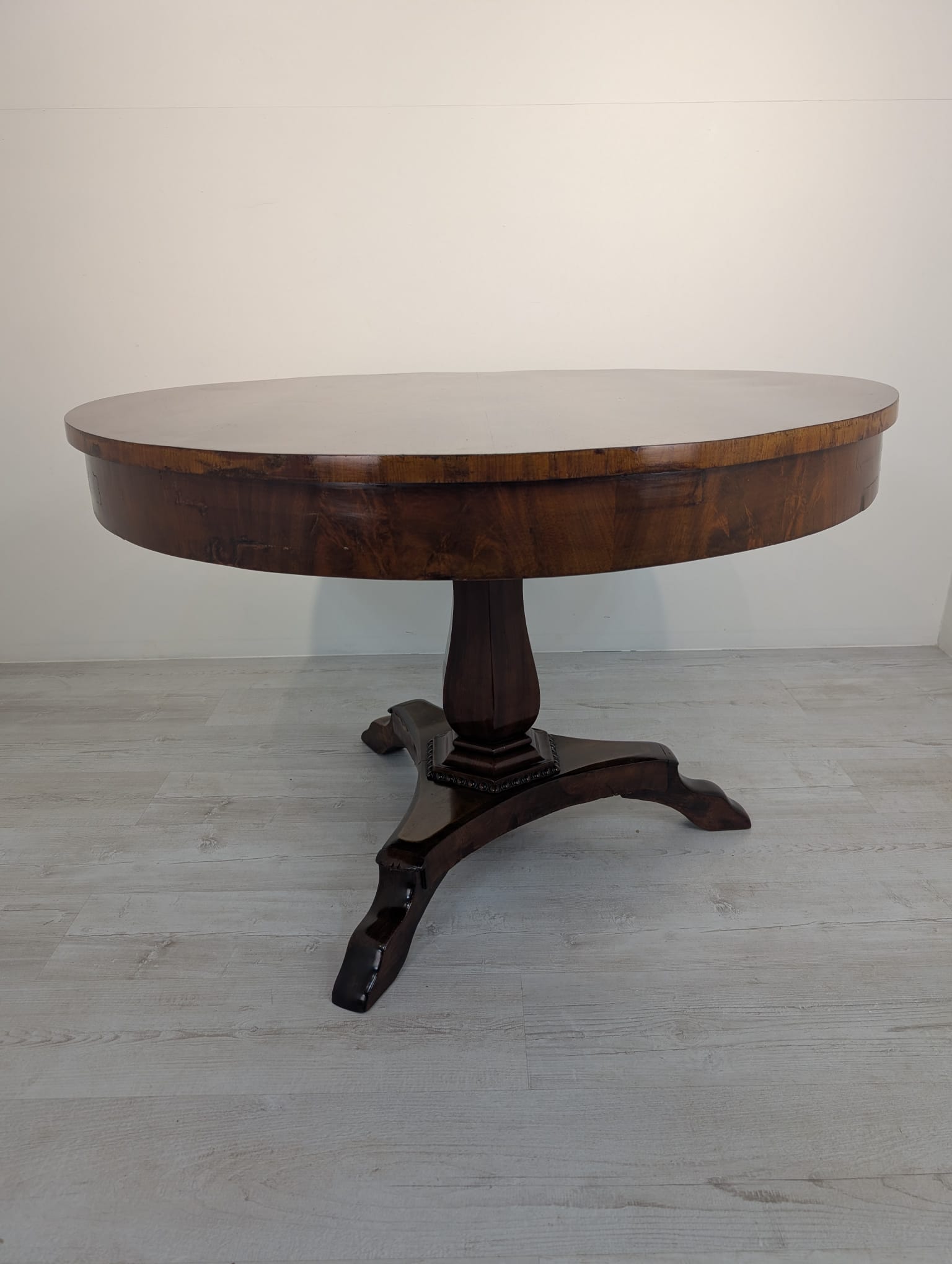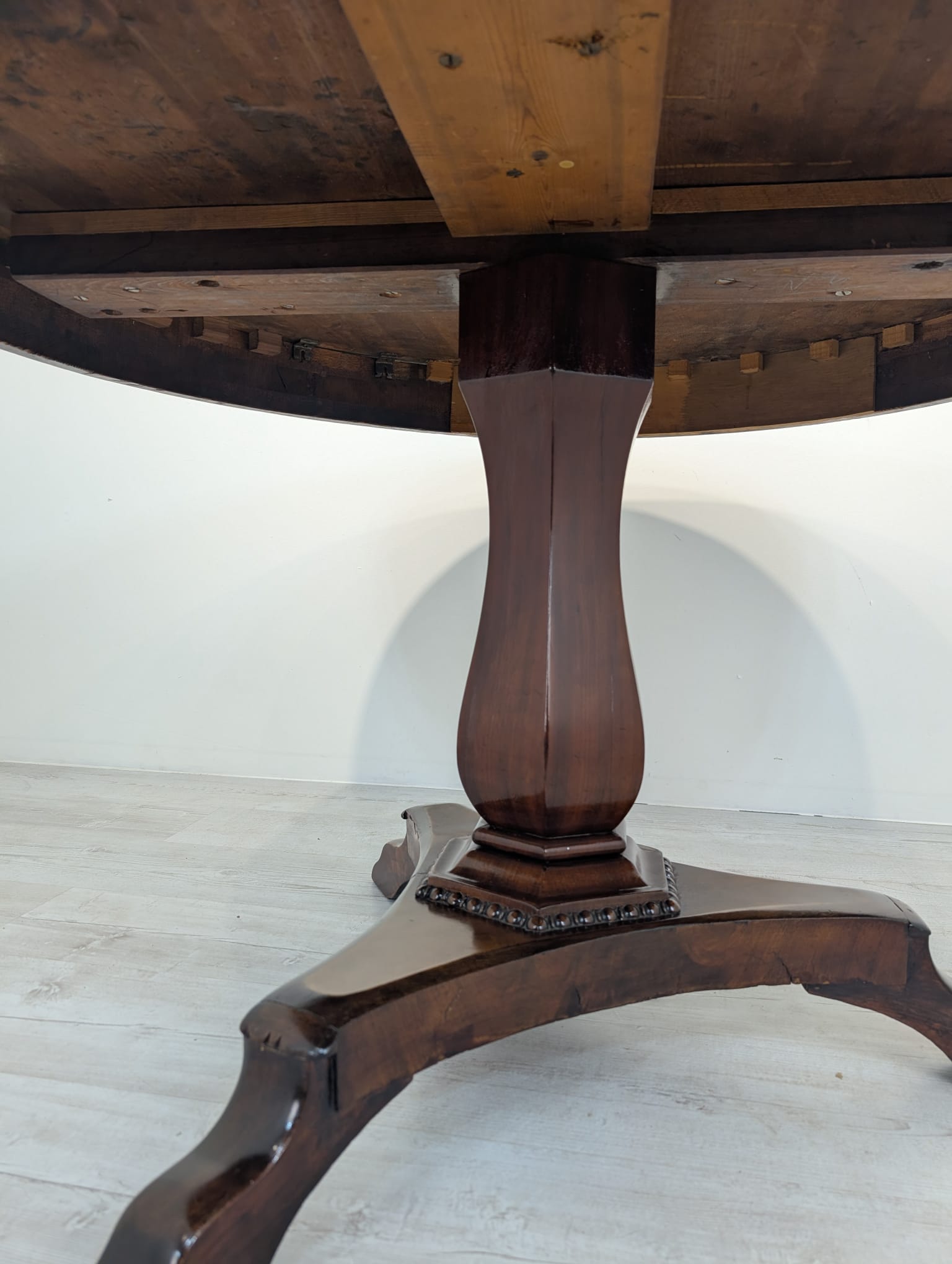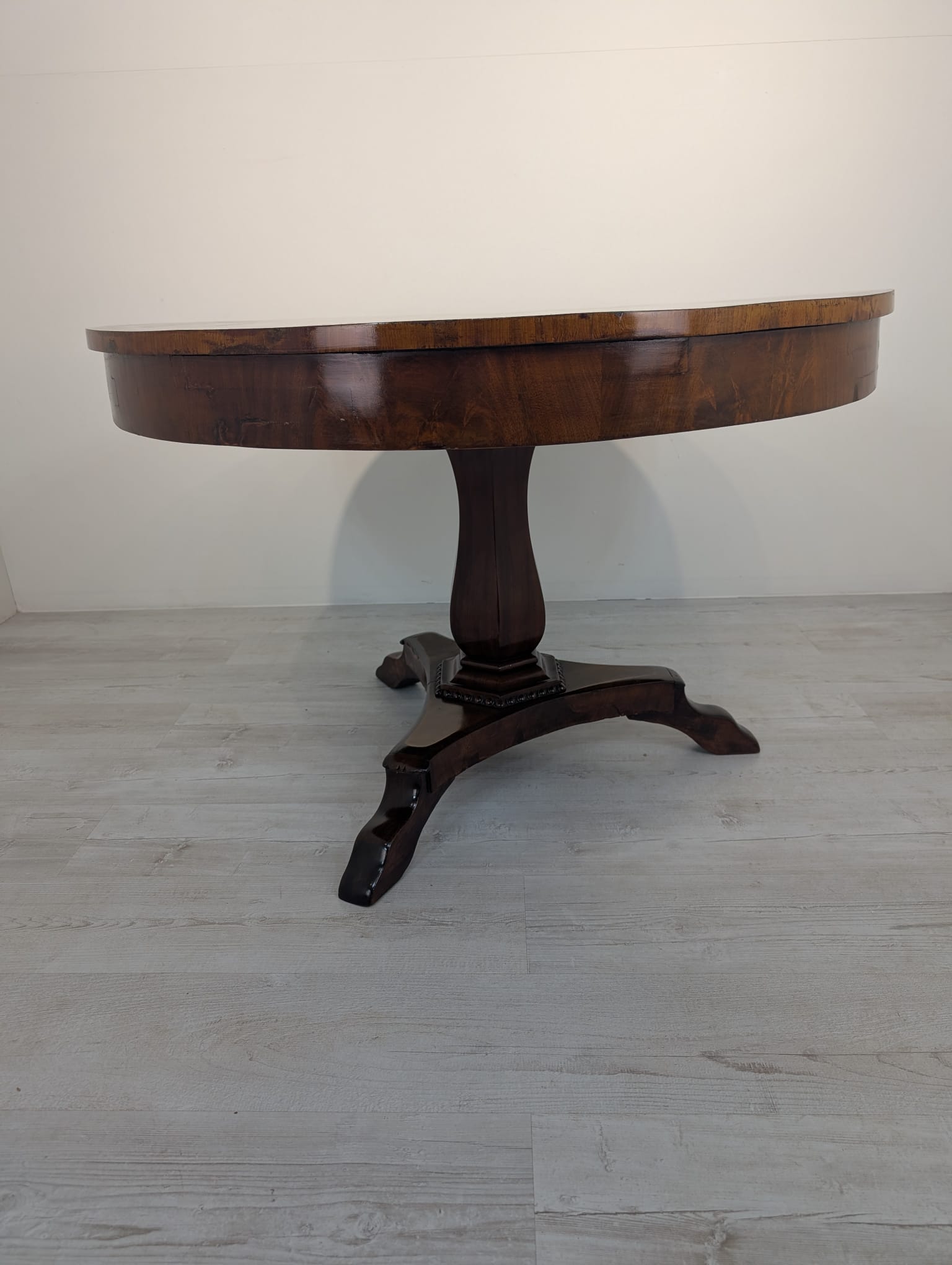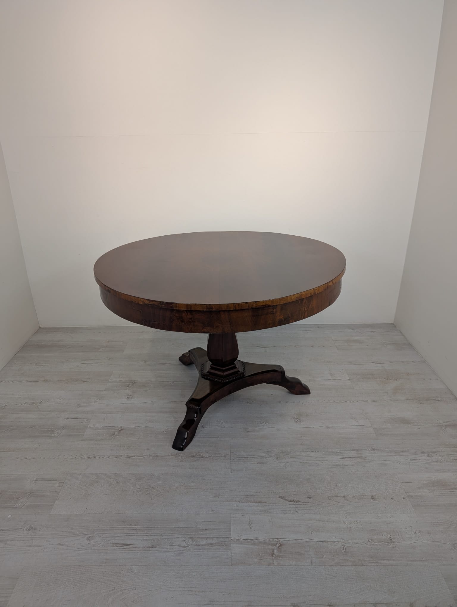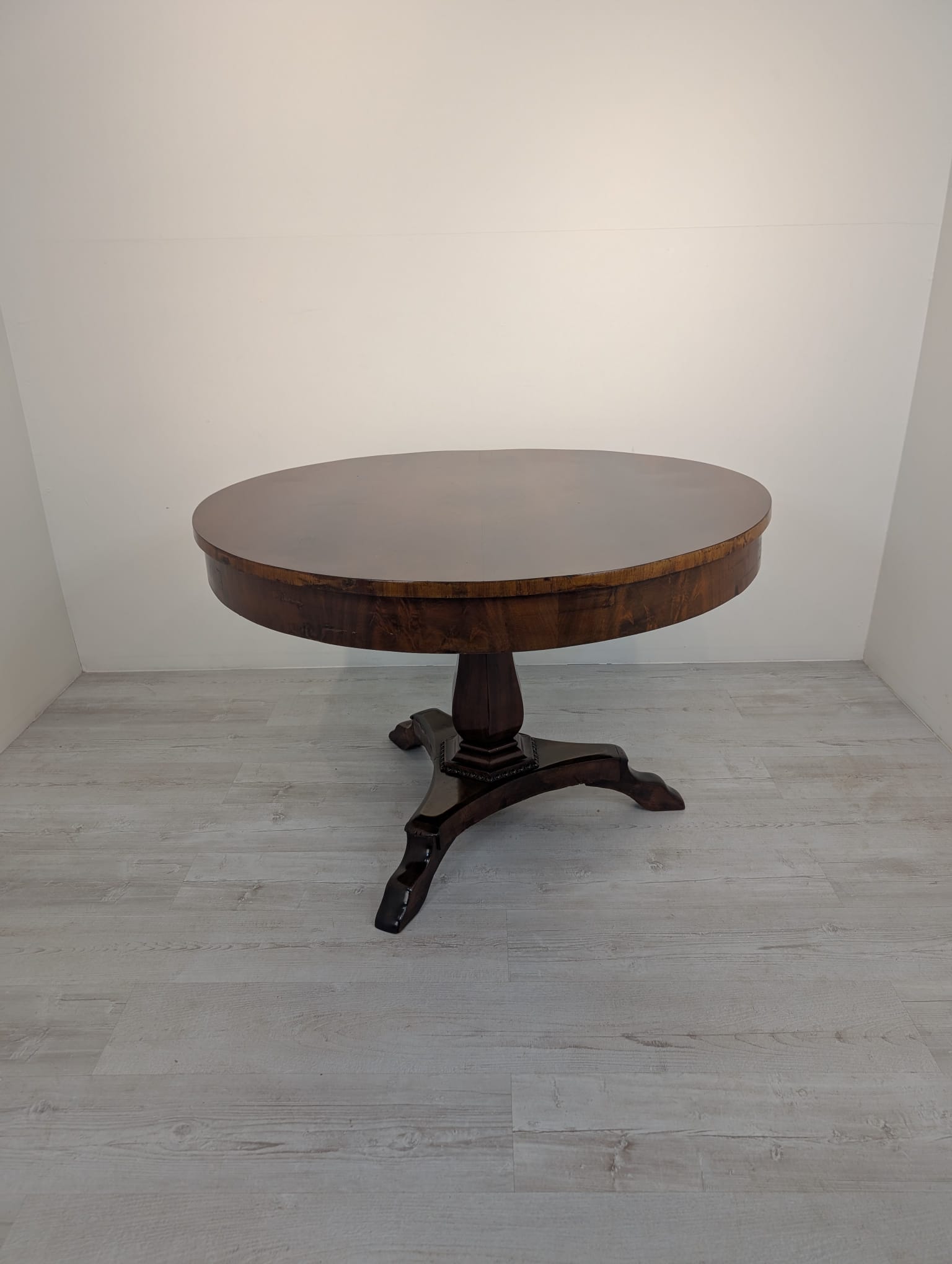 Stół okrągły antyczny Biedermeier w orzechu z XIX wieku