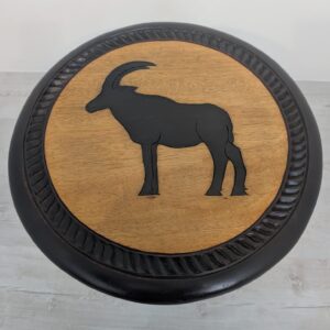 Unikatowy, ręcznie rzeźbiony stolik kawowy w afrykańskim stylu z drewna mahoniowego. Przedmiot ma niepowtarzalny, artystyczny wygląd i stanowi ciekawy element dekoracyjny.