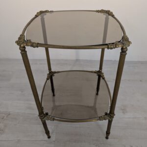 Stolik, barek mosiądzowany z dymionymi szybami z lat 60-tych