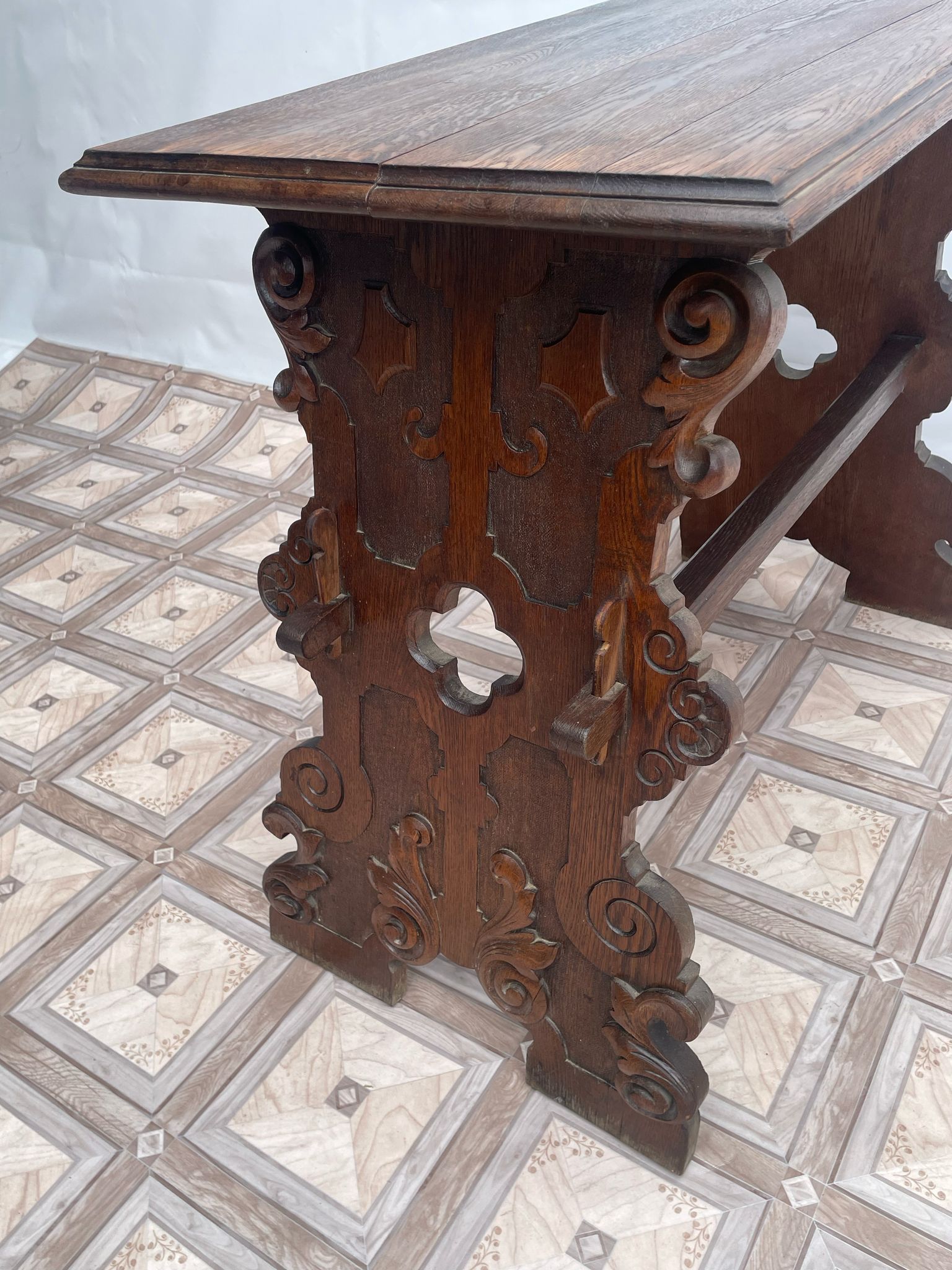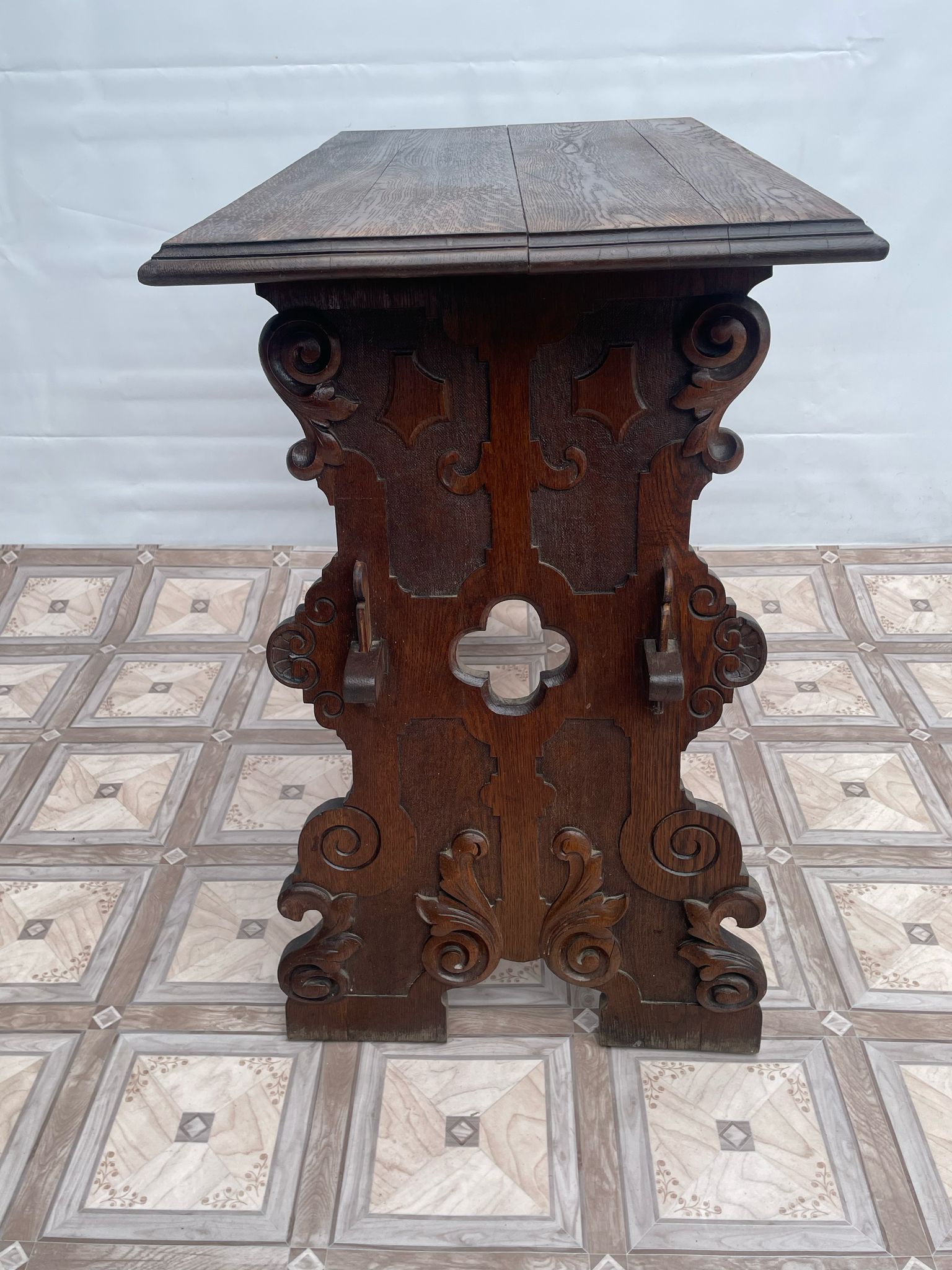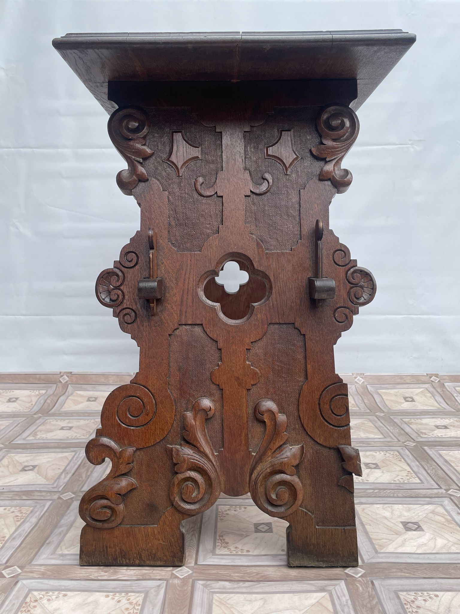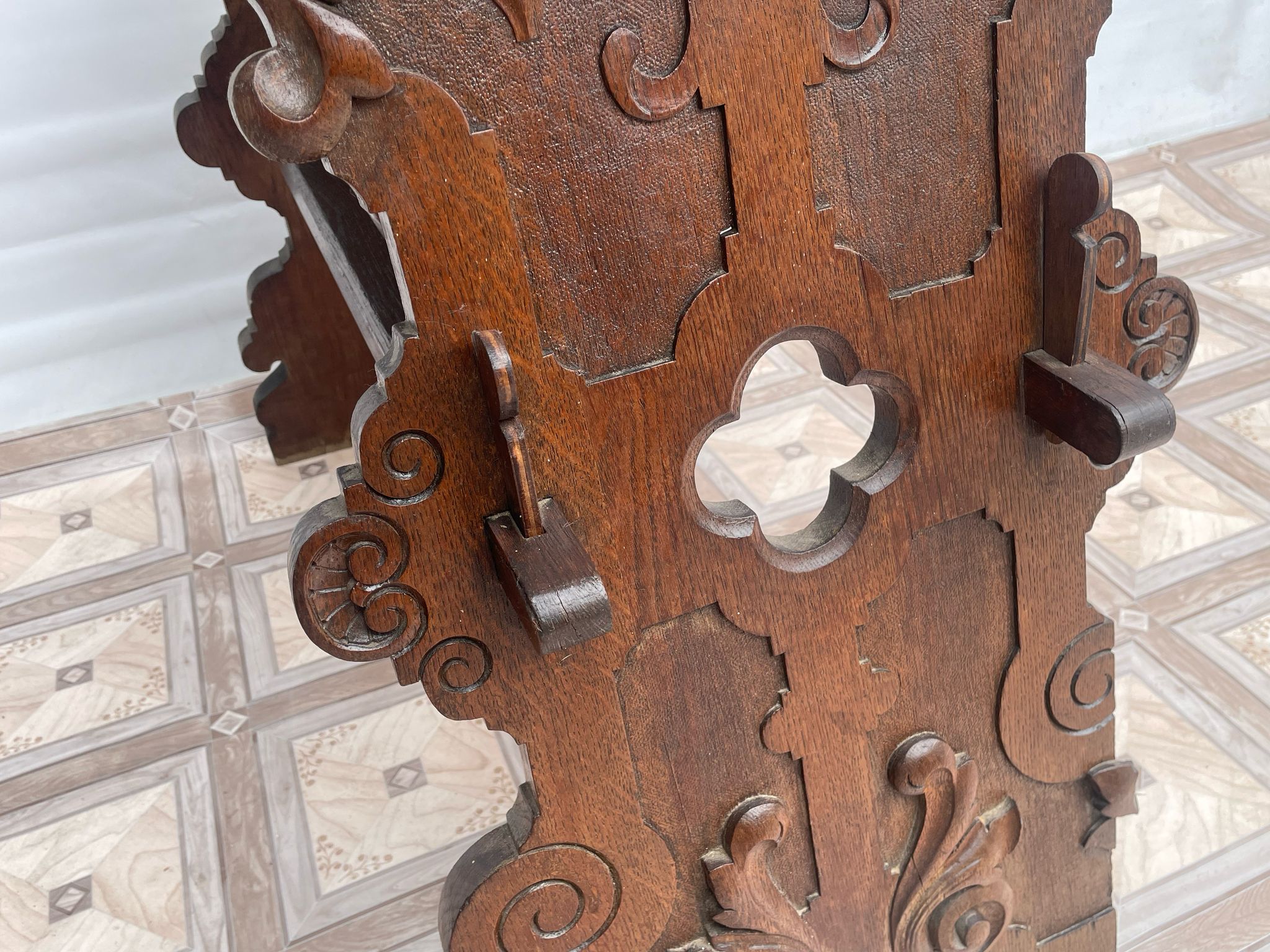 Konstrukcja stolika ręcznie rzeźbiona.