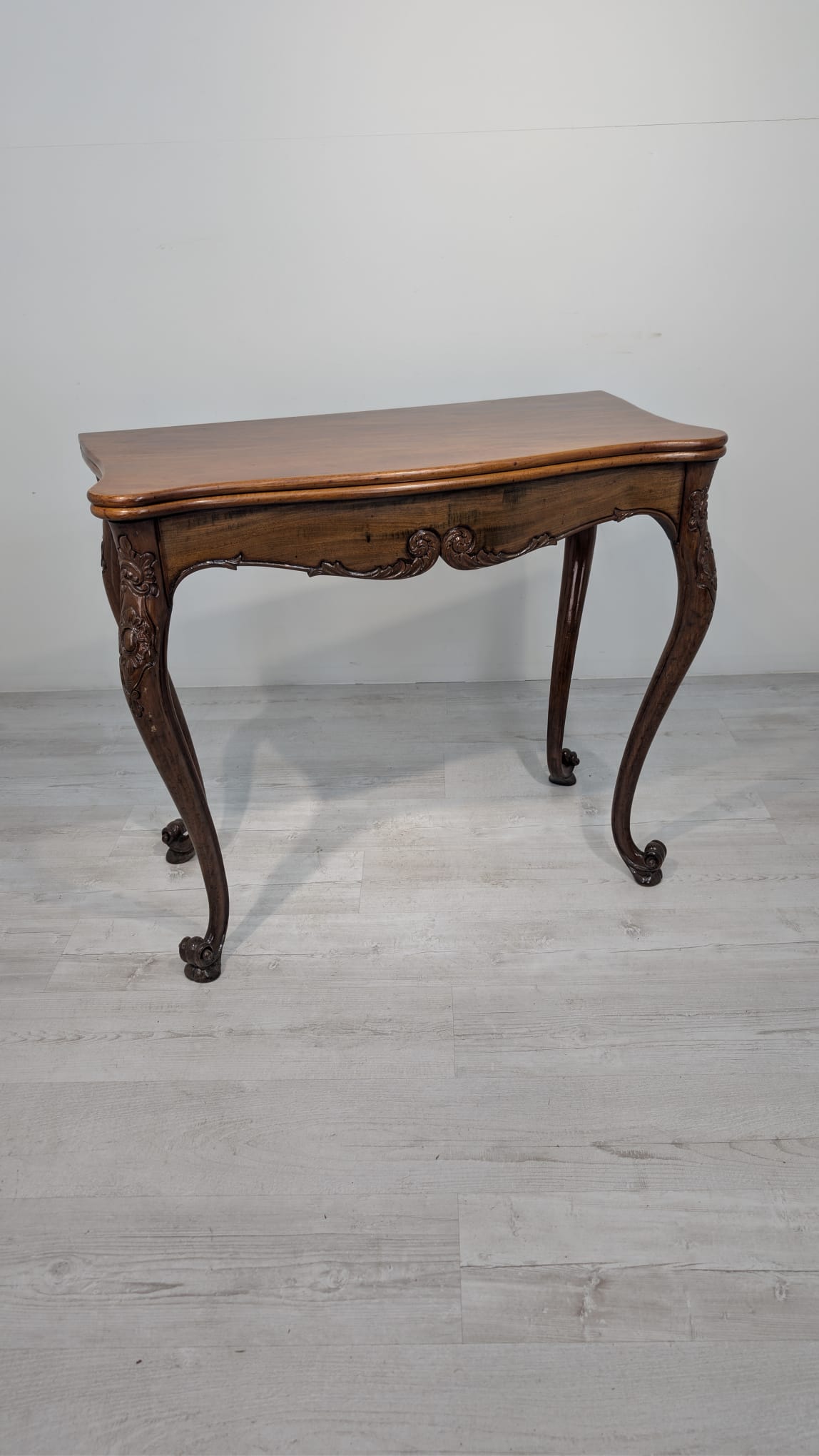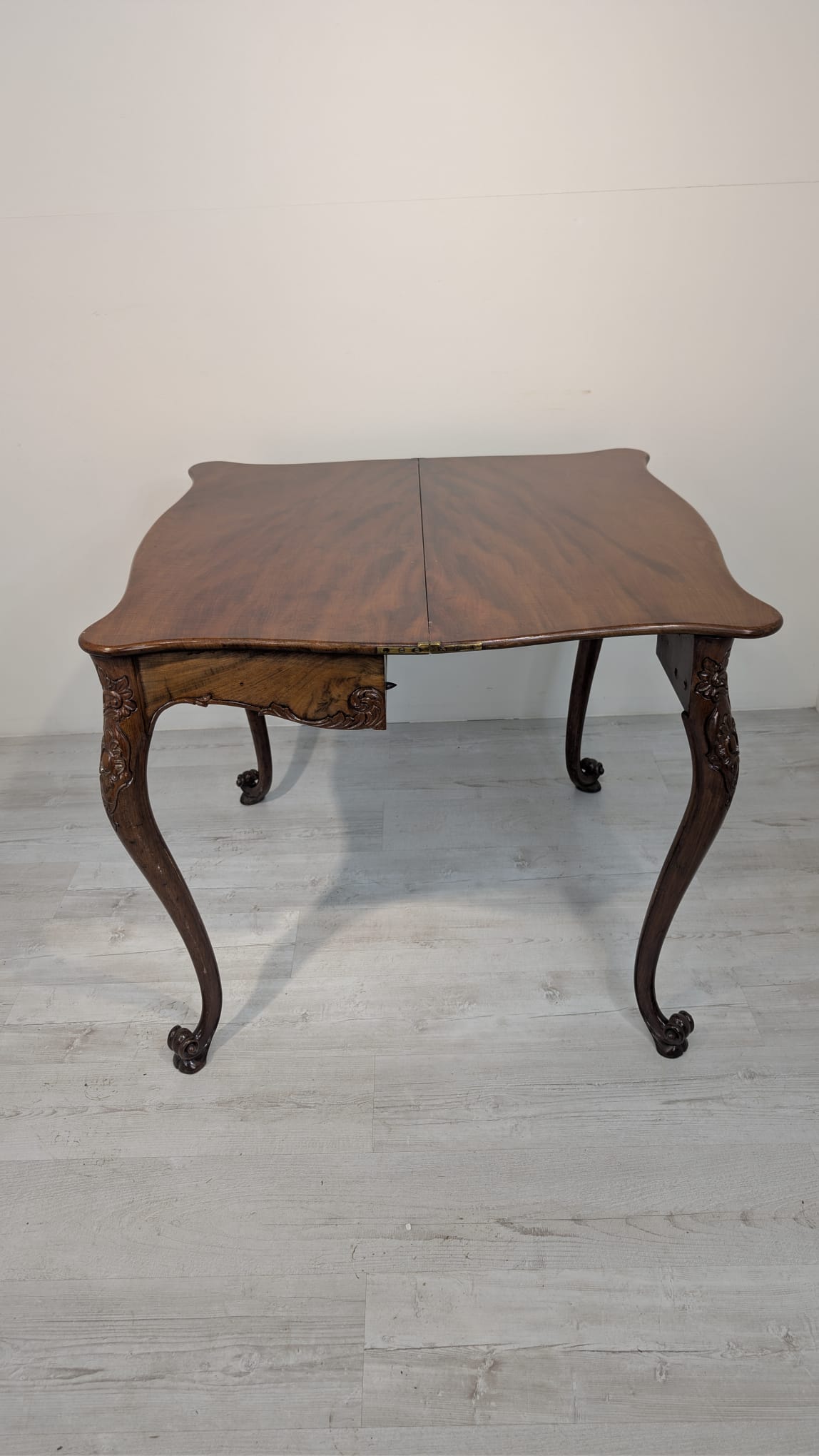 Stolik, karciak z litego drewna w mahoniu w stylu ludwikowskim