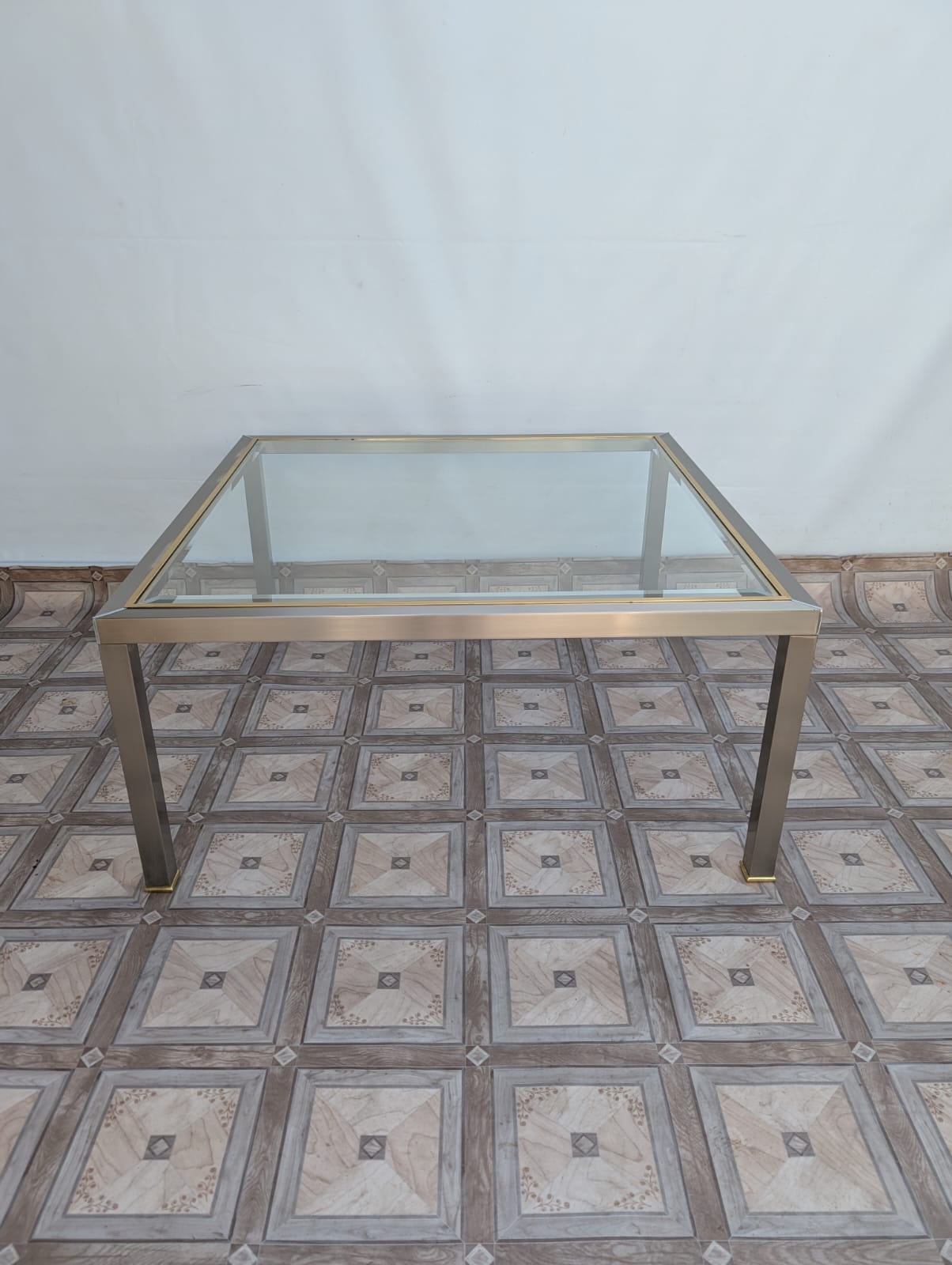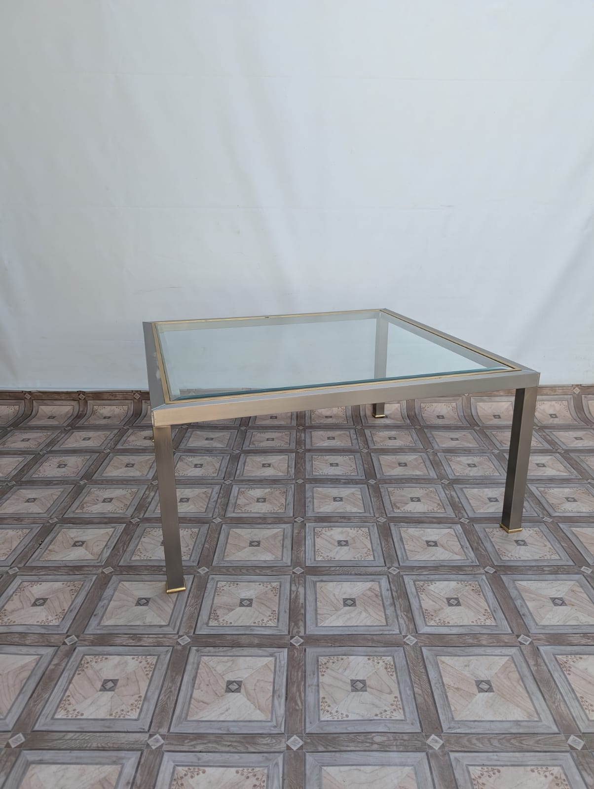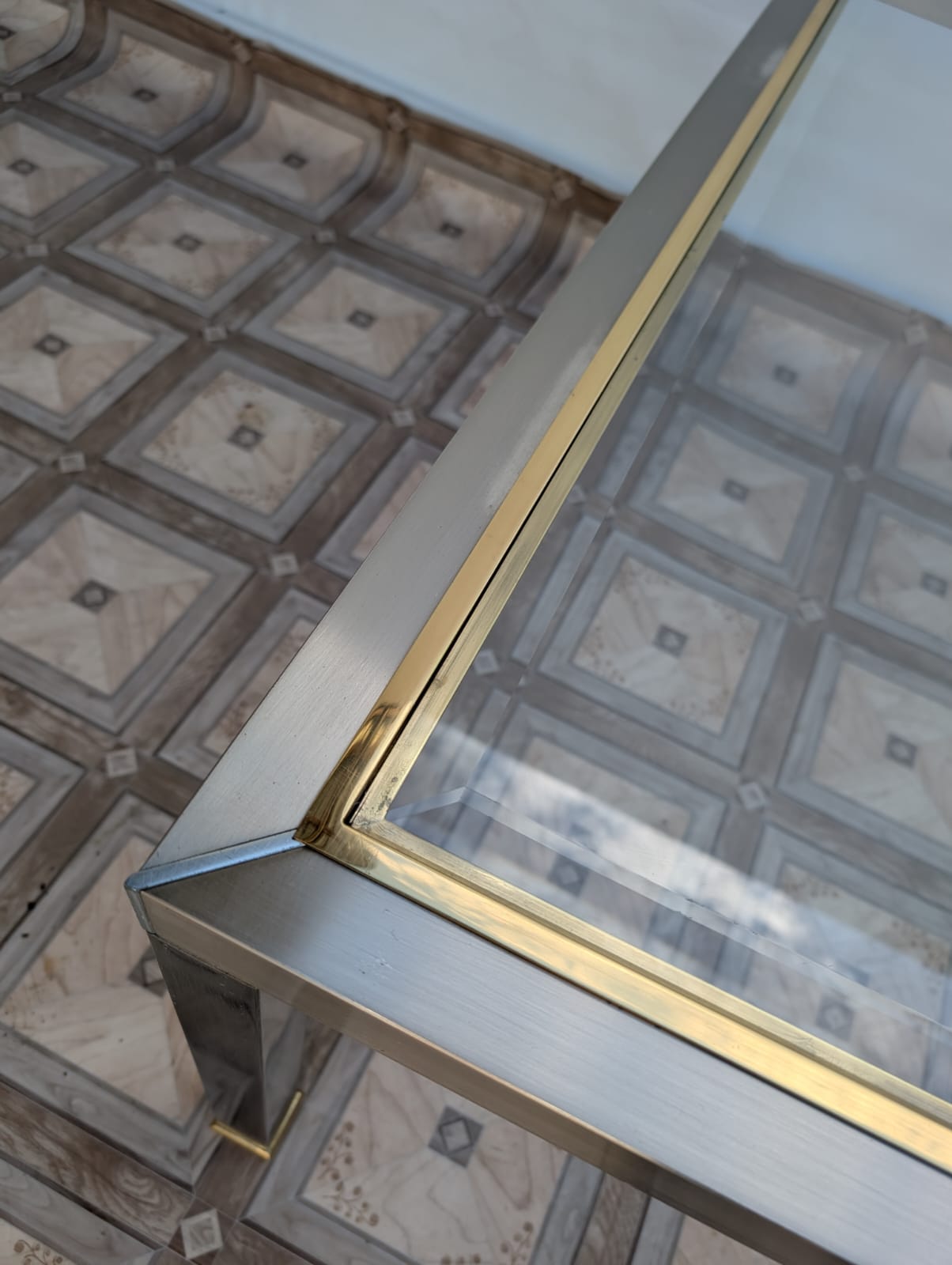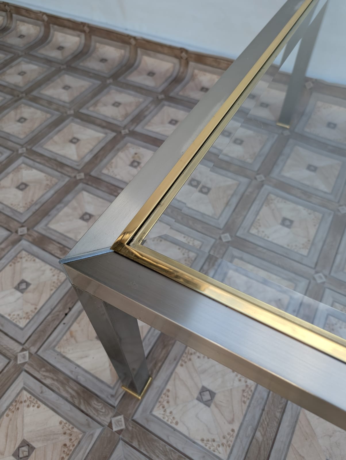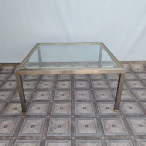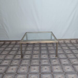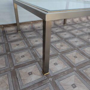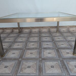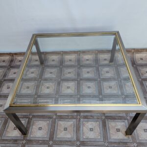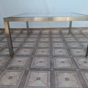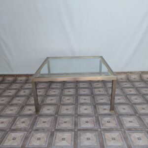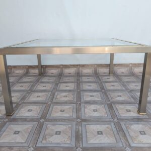 Stolik kawowy szklany chromowany z mosiądzem włoski z lat 70-tych
