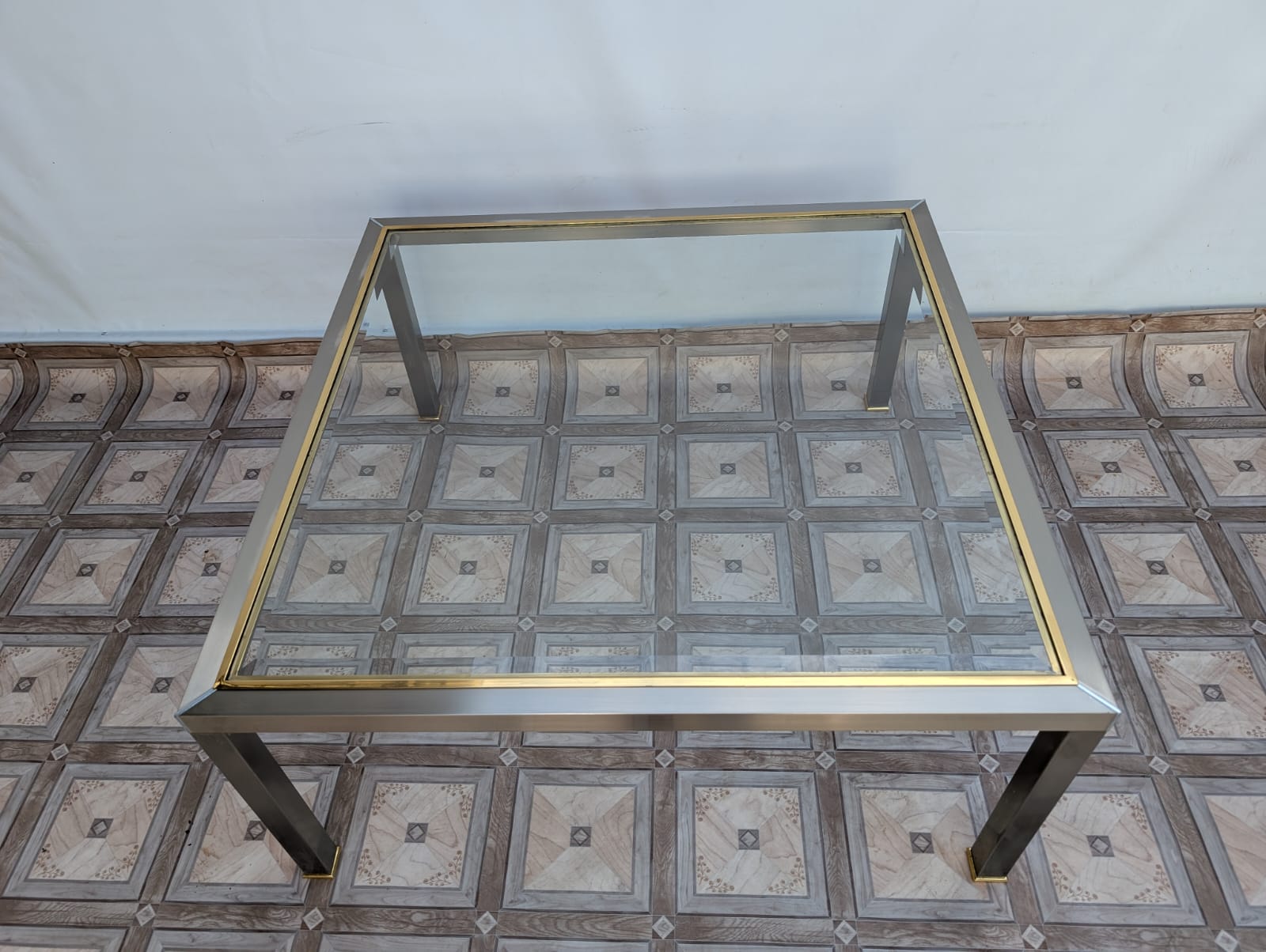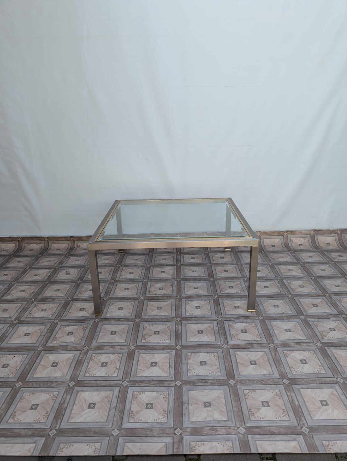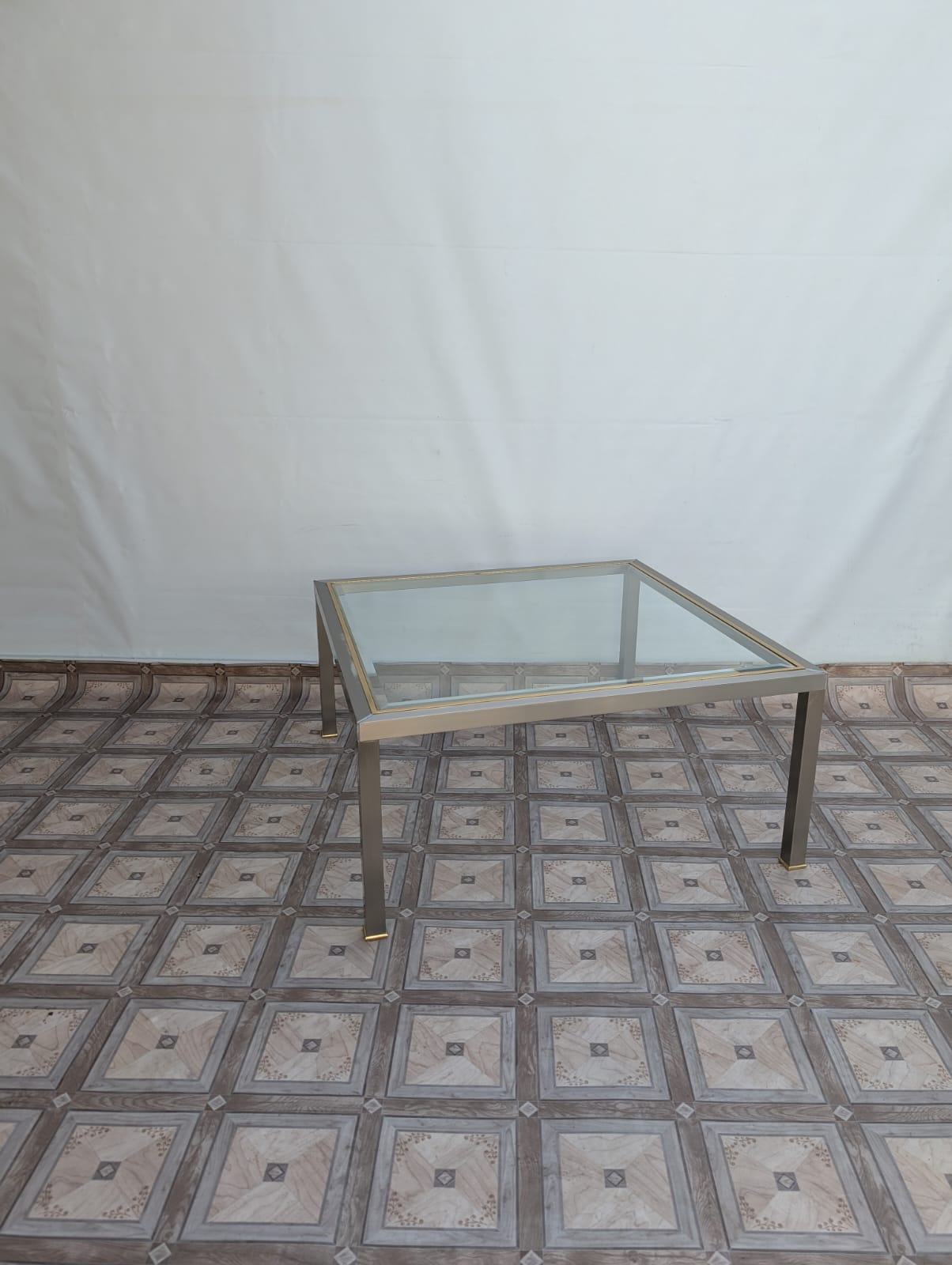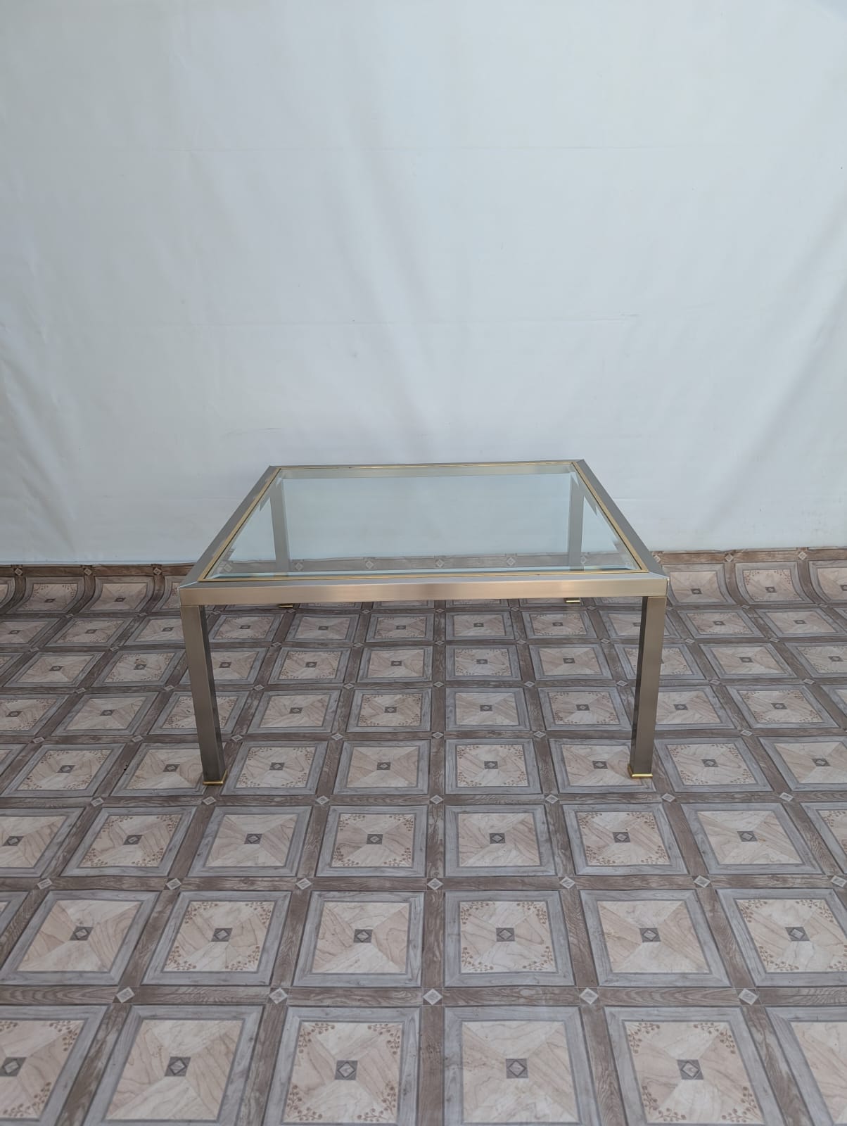 Stolik kawowy szklany chromowany z mosiądzem włoski z lat 70-tych