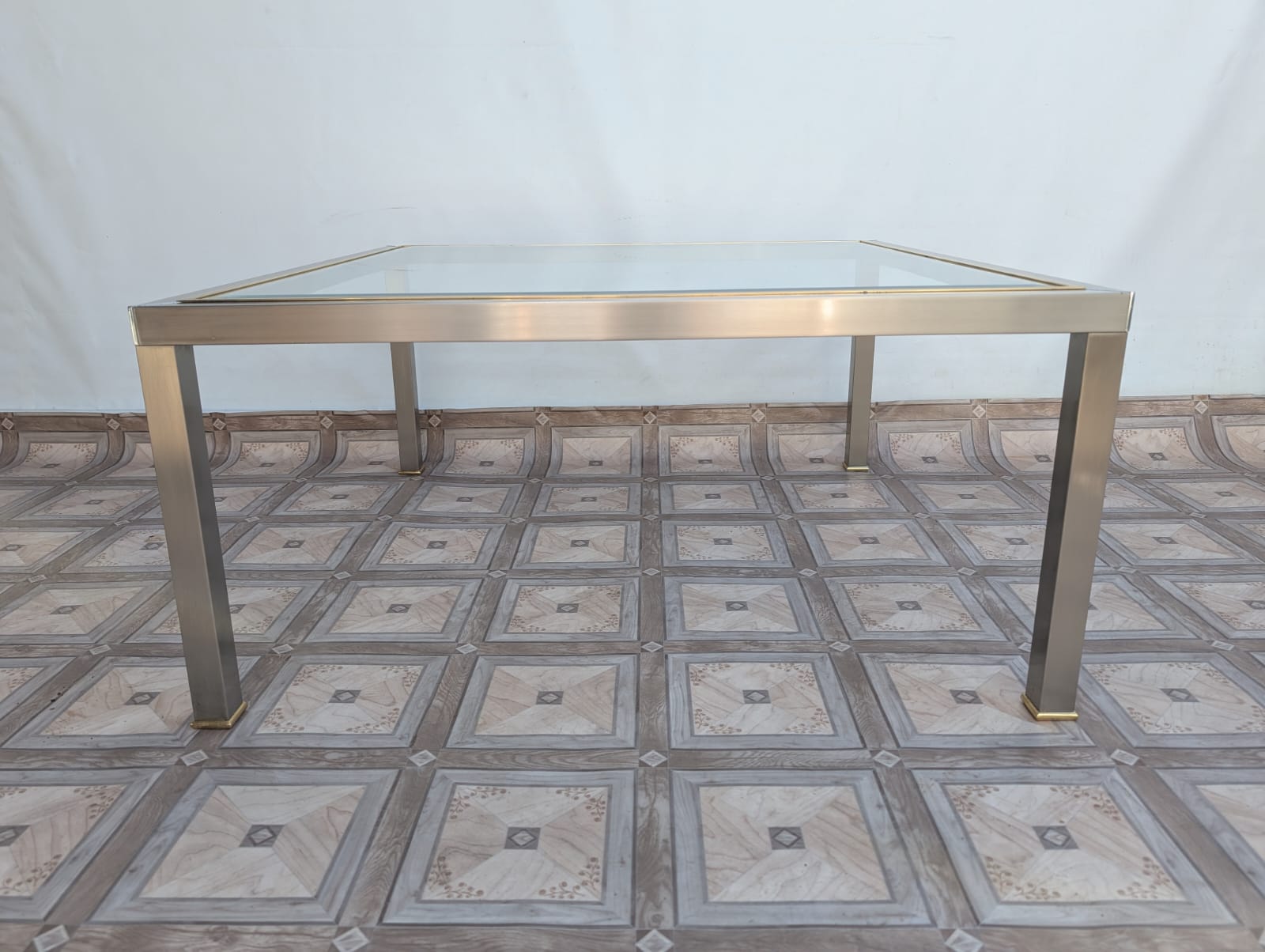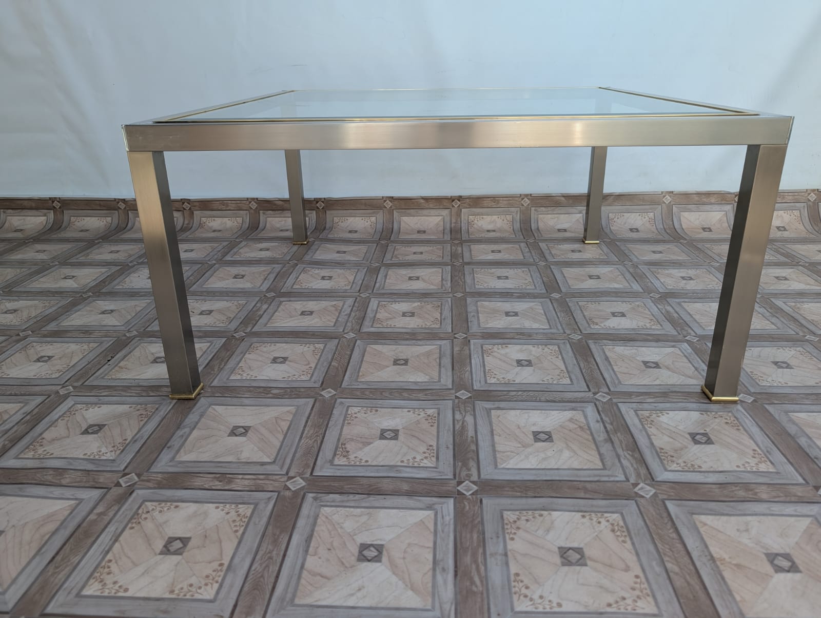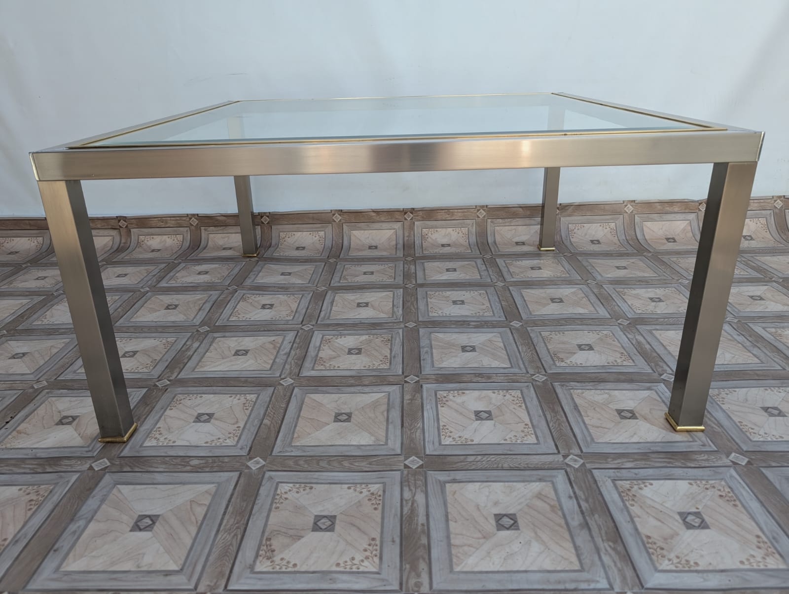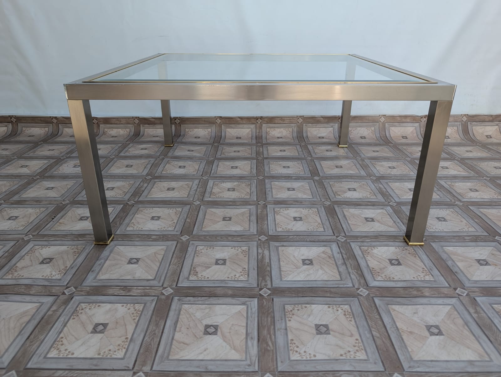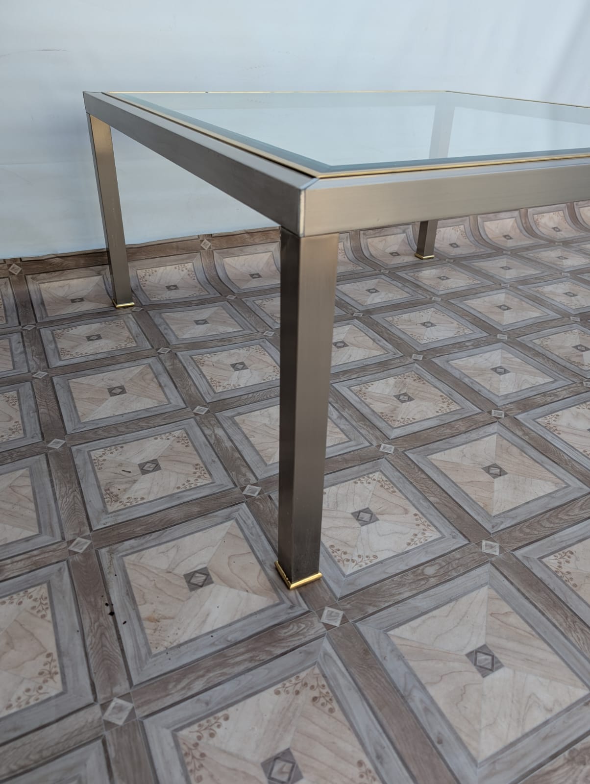 Stolik kawowy szklany chromowany z mosiądzem włoski z lat 70-tych