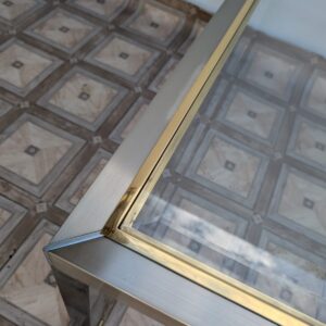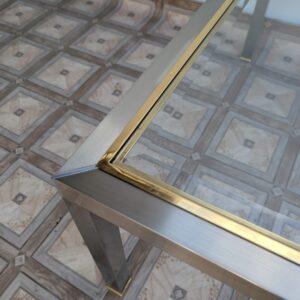Stolik wykonany z chromowanego metali z mosiądzem w stylu Hollywood Regency Włoch z lat 70-tych.