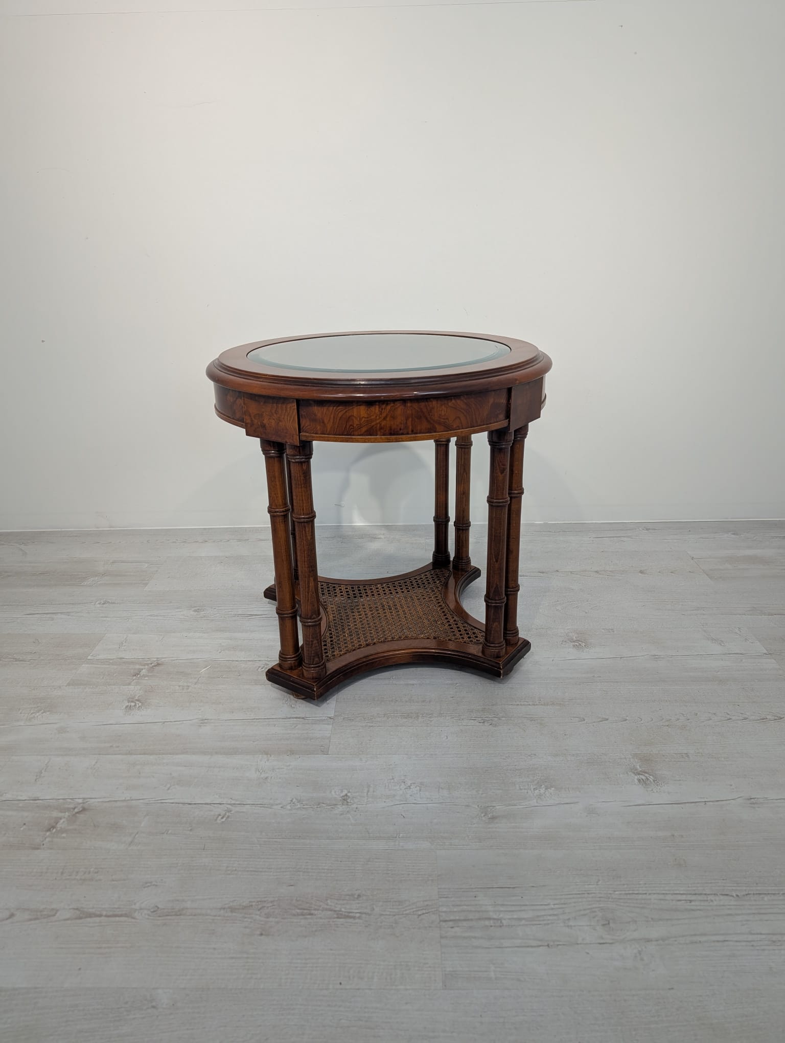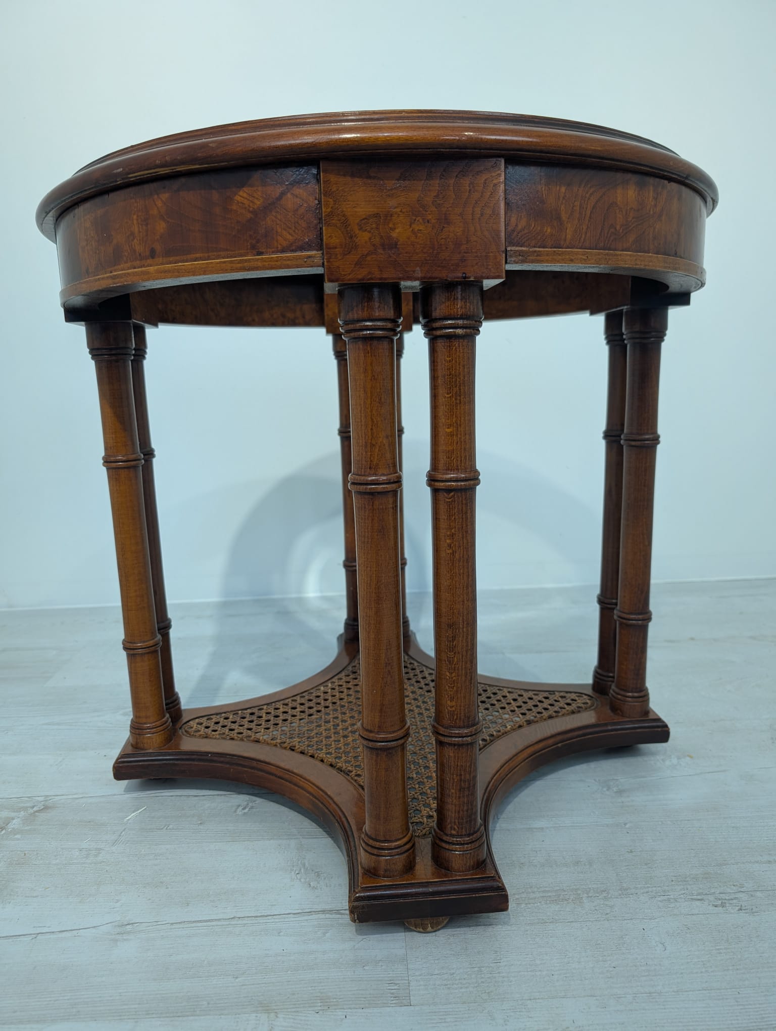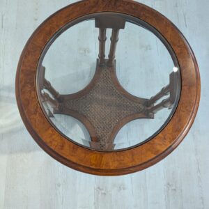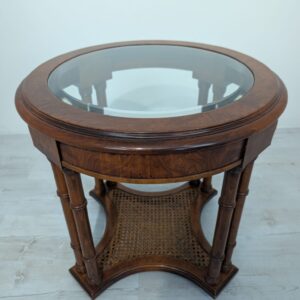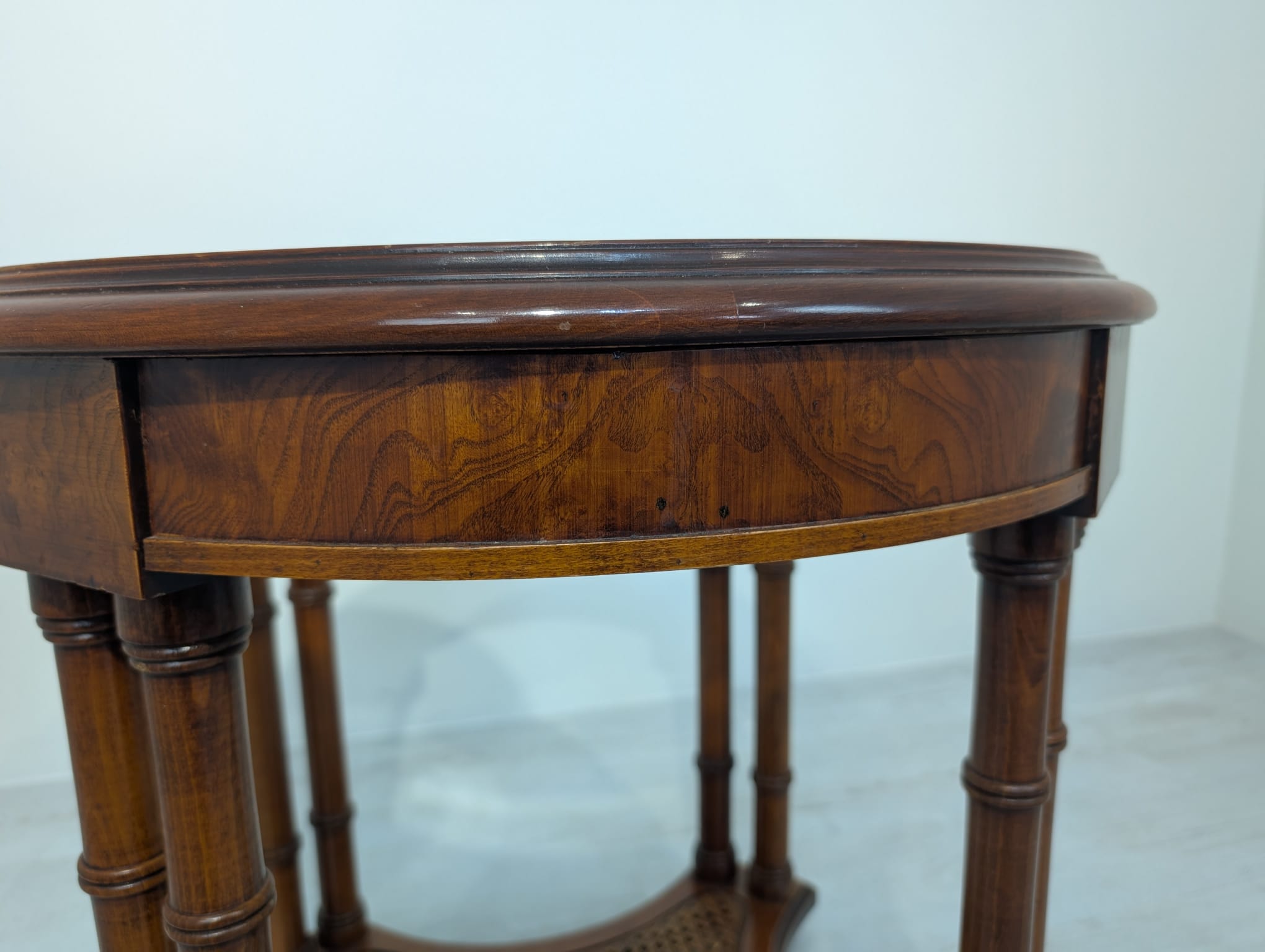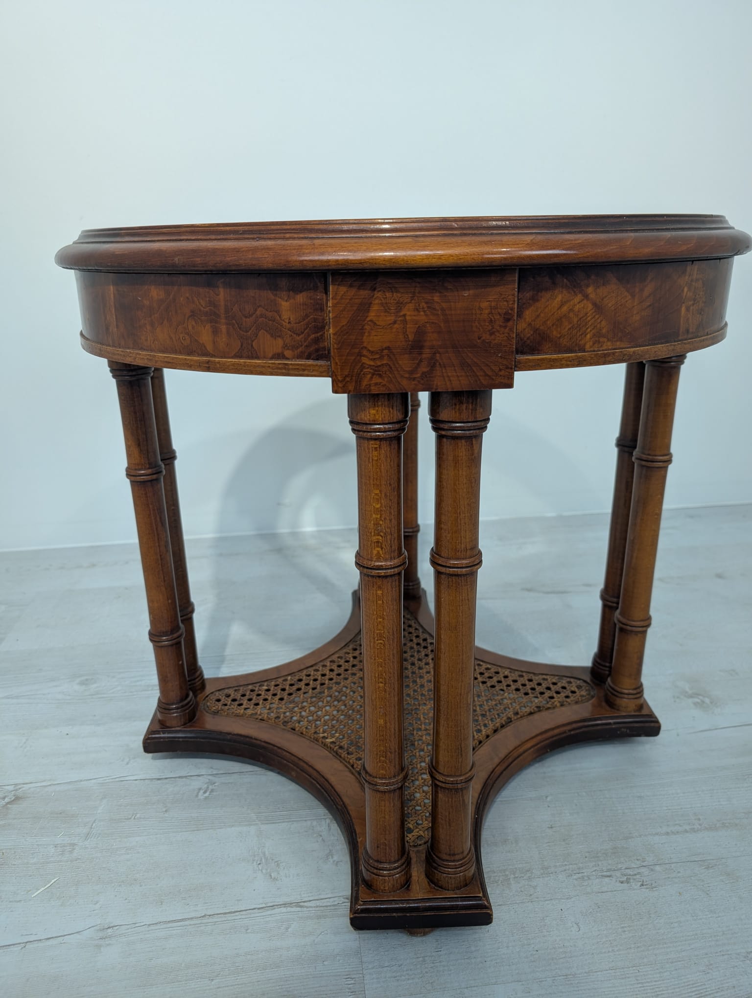 Stolik kawowy z drewna orzechowego z rafią z lat 40/50-tych