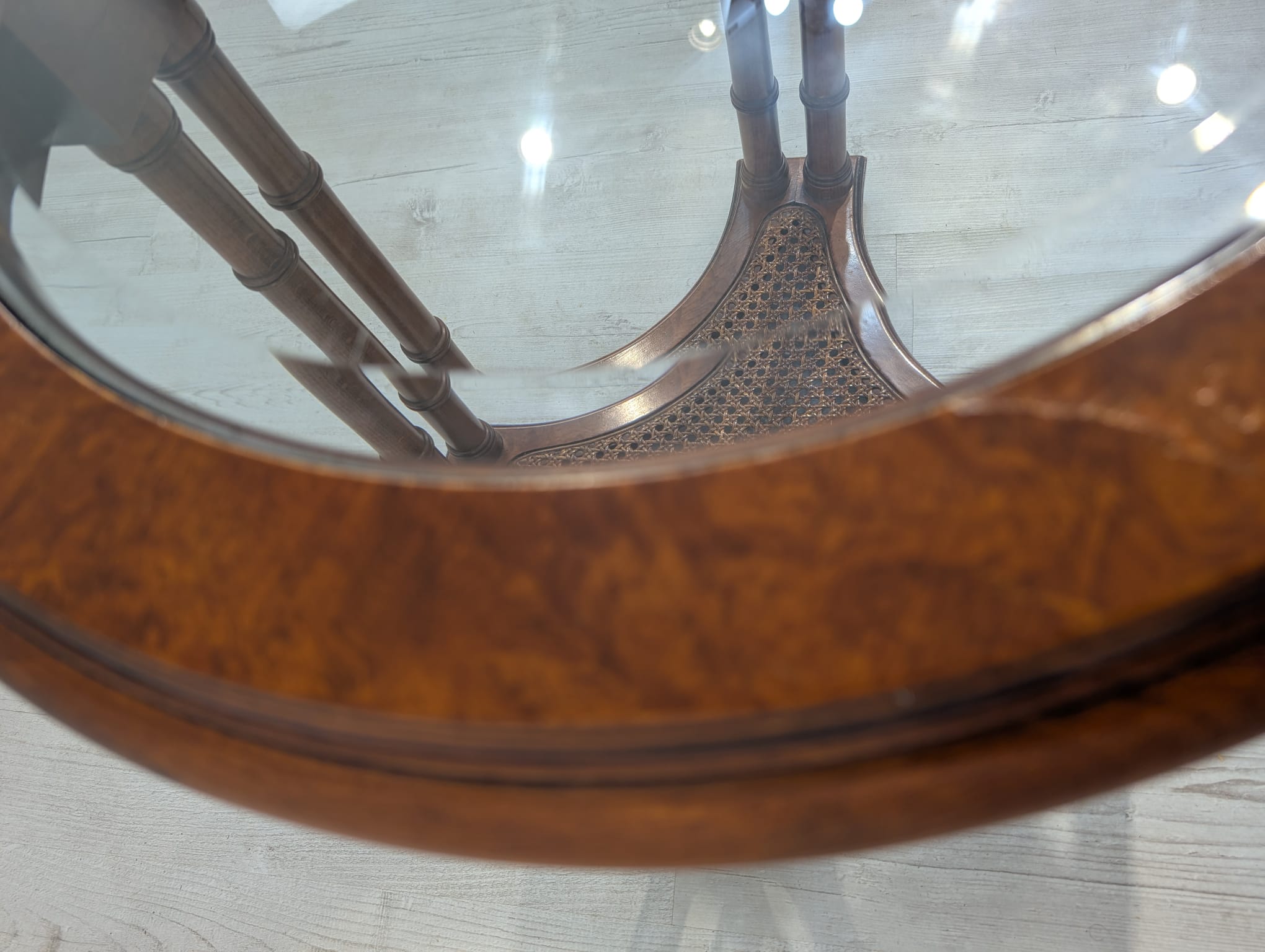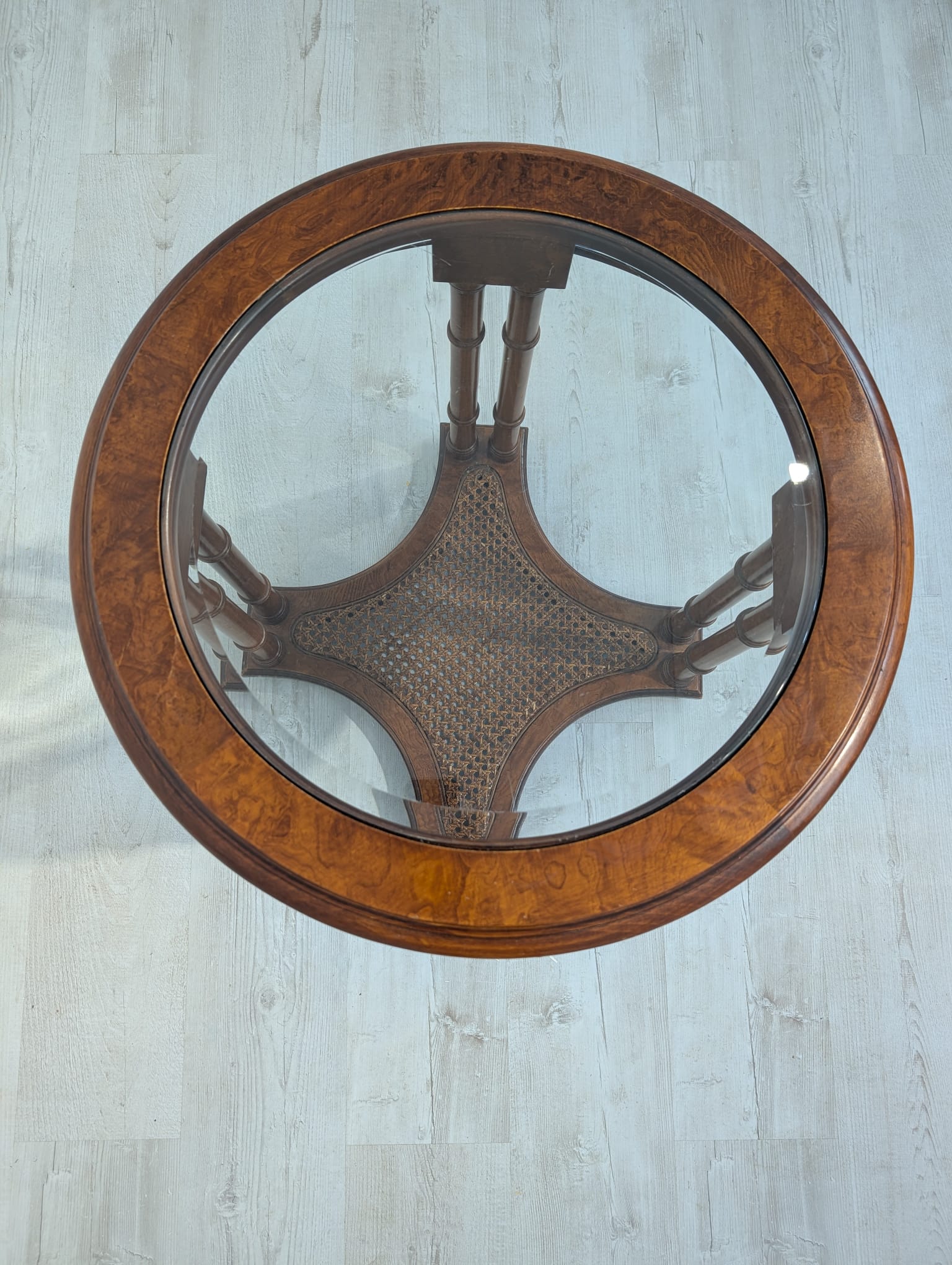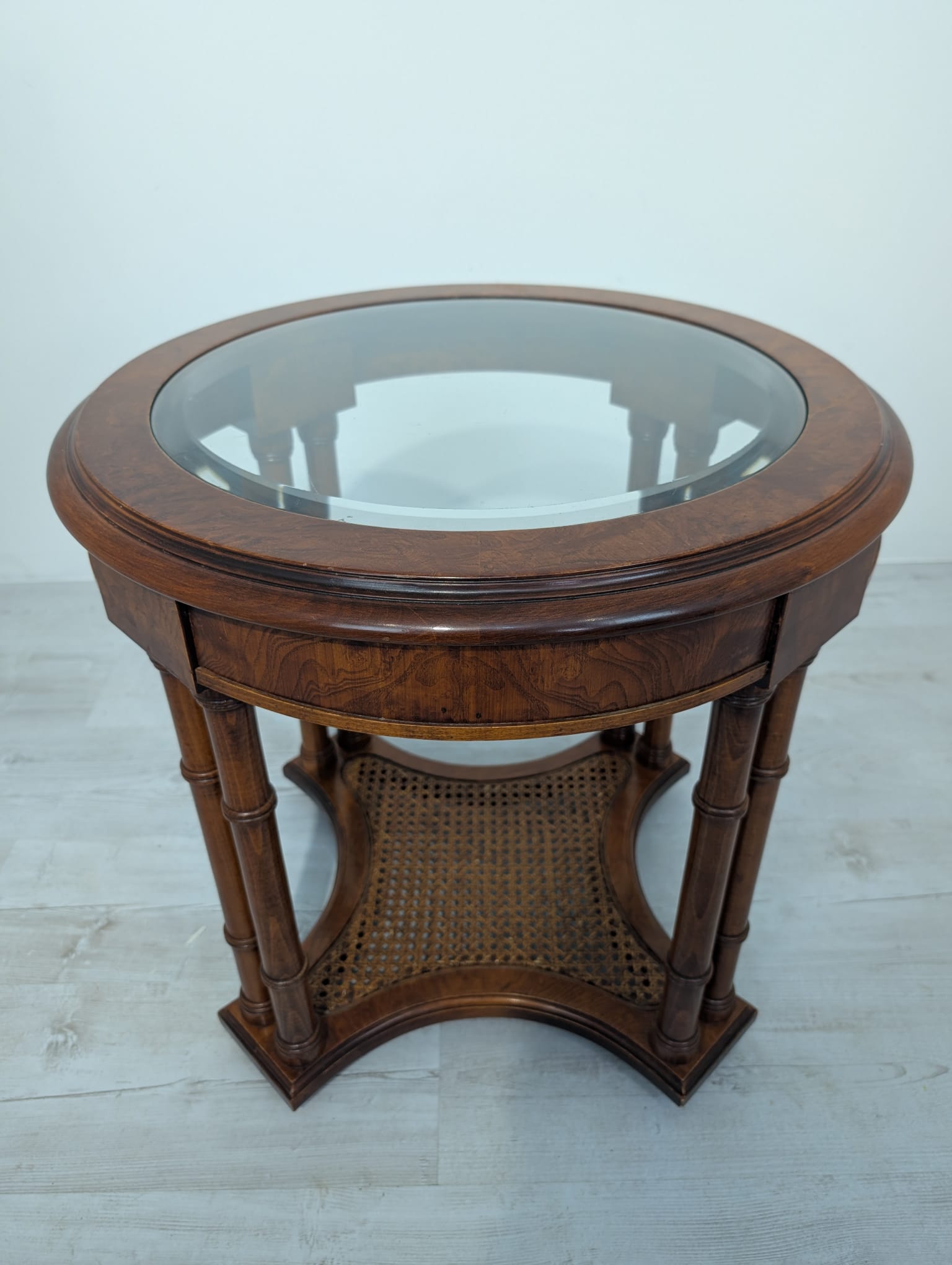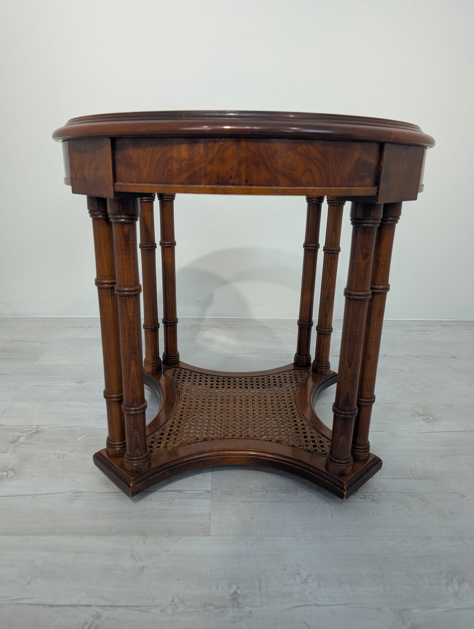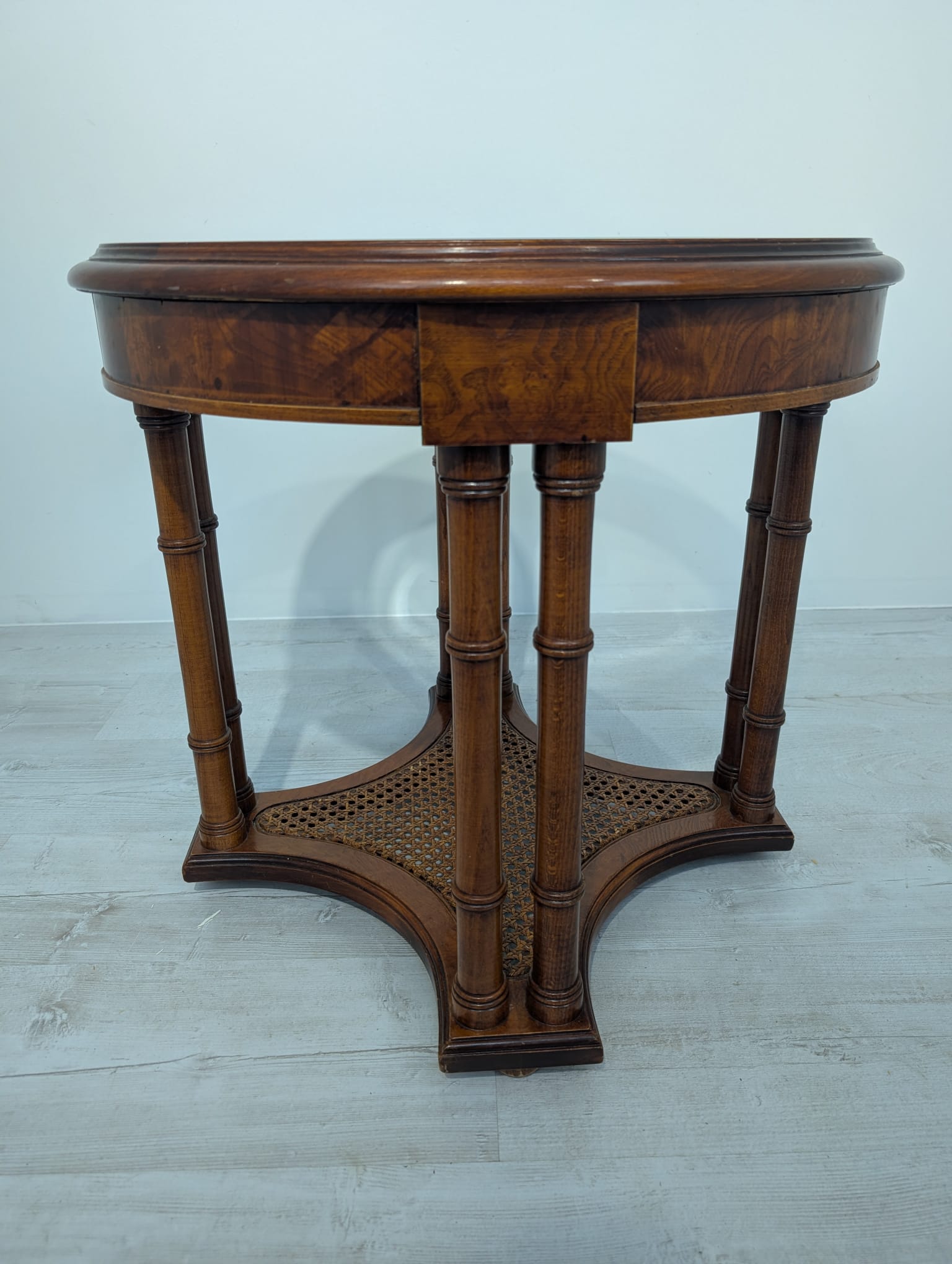 Stolik kawowy z drewna orzechowego z rafią z lat 40/50-tych