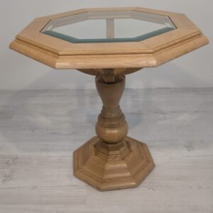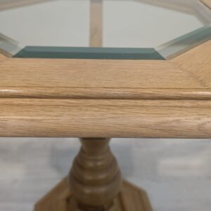 Stolik kawowy z litego drewna jasny dąb ośmiokątny z szybą fazowaną