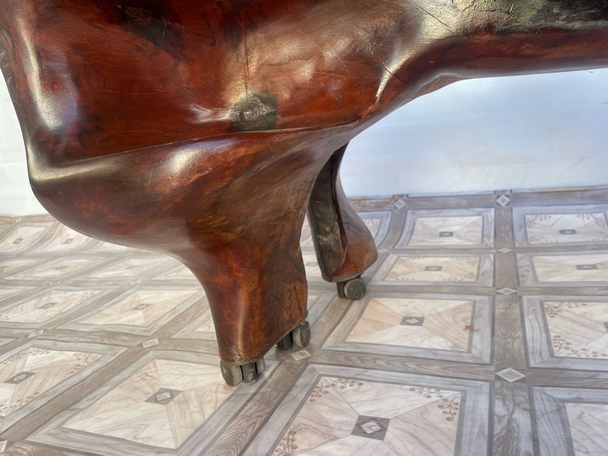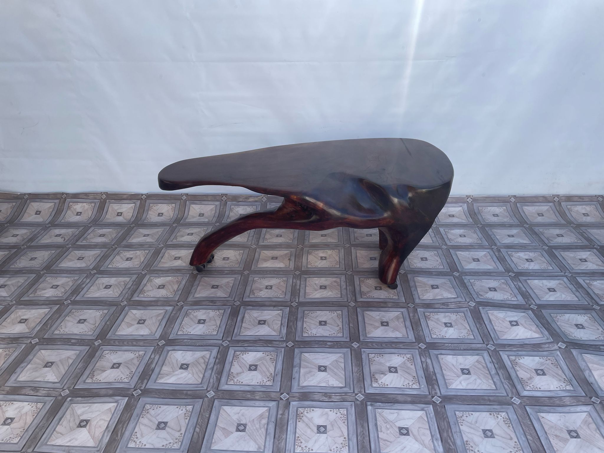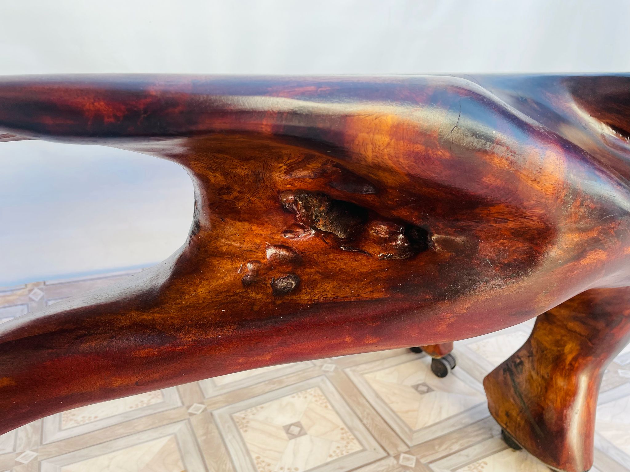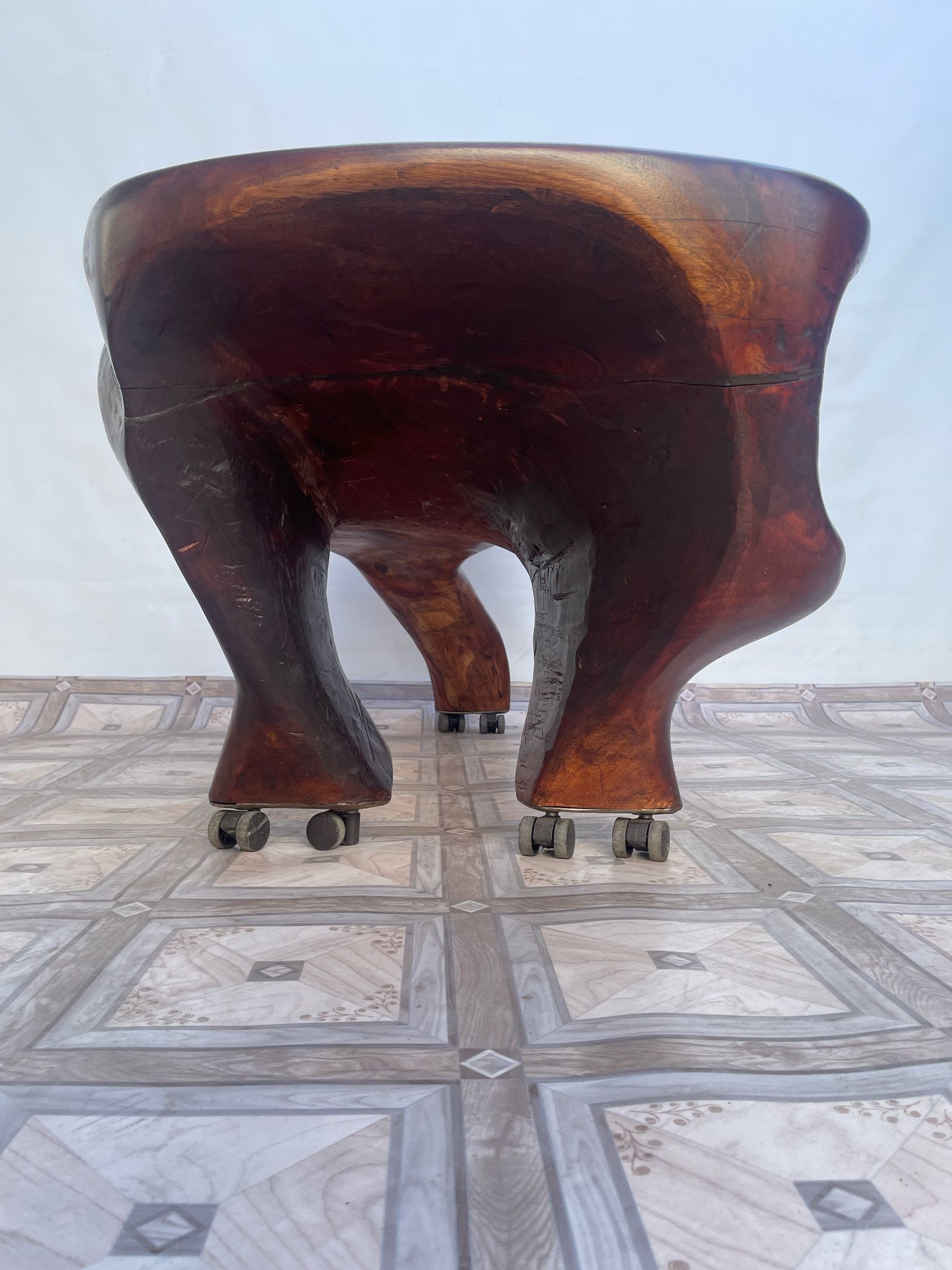 Stolik, ława stylowa z litego korzenia mango ma kółkach.