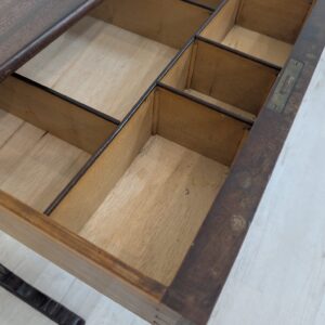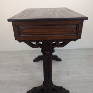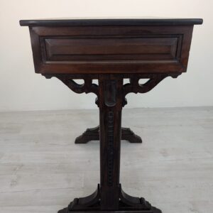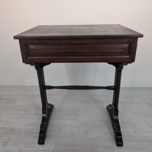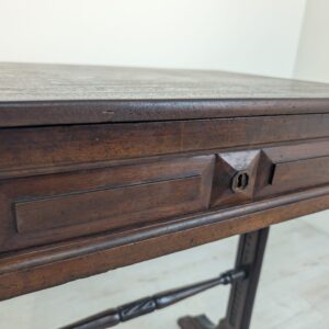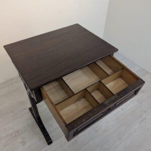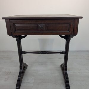 Stylowy, zabytkowy stolik drewniany w orzechu. Posiada jedną szufladę, która dodaje mu funkcjonalności. Solidna konstrukcja i piękne wykończenie sprawiają, że będzie on doskonałą ozdobą każdego wnętrza.