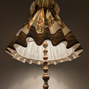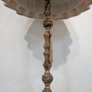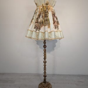 Stylowa lampa podłogowa z marmurową podstawą i oryginalnym abażurem. Lampa ma elegancki, klasyczny wygląd i będzie pięknym dodatkiem do każdego wnętrza.