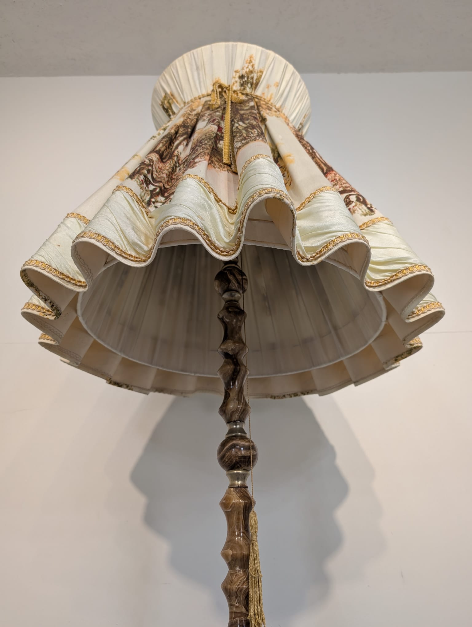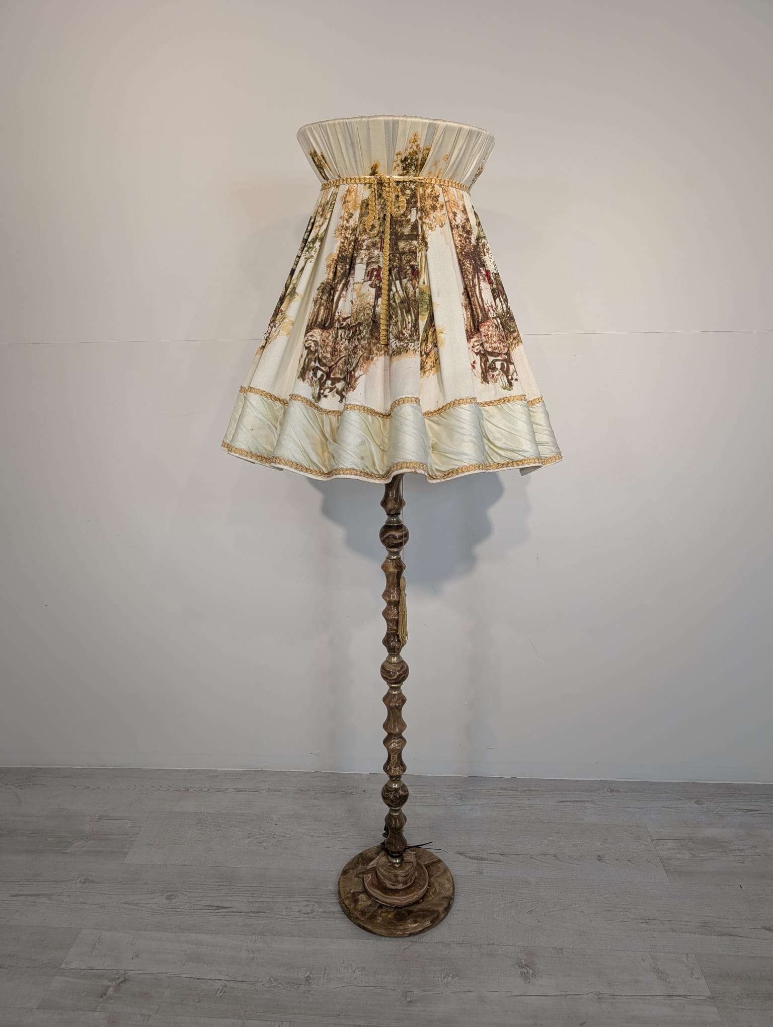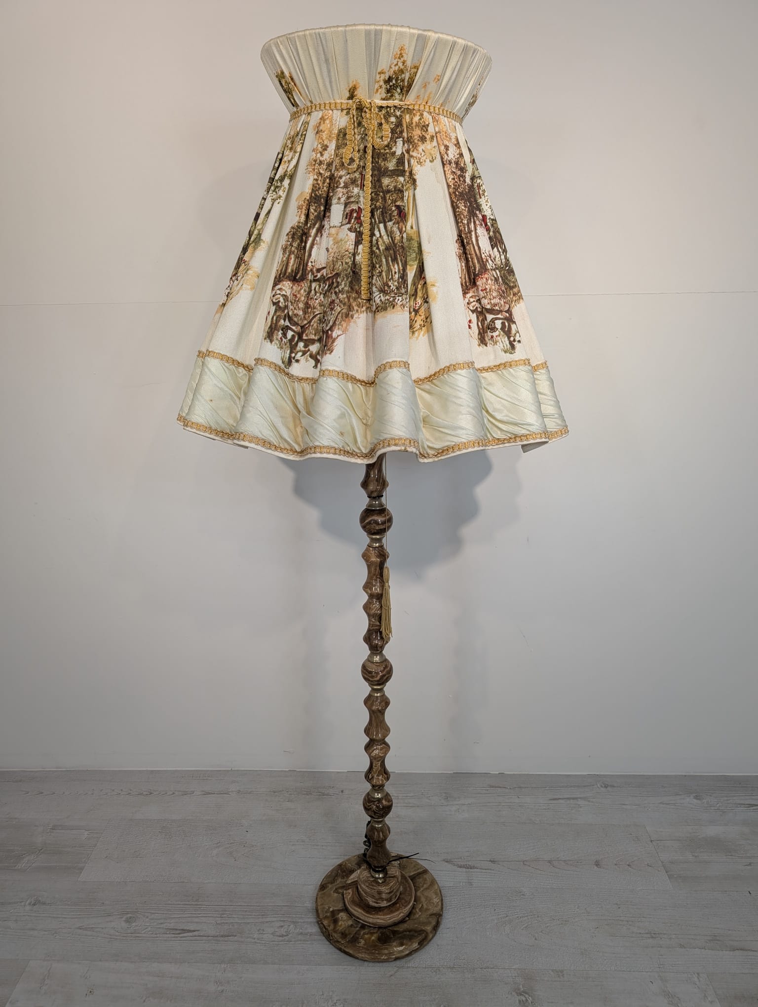 Stylowa lampa podłogowa marmurowa oryginalny abażur