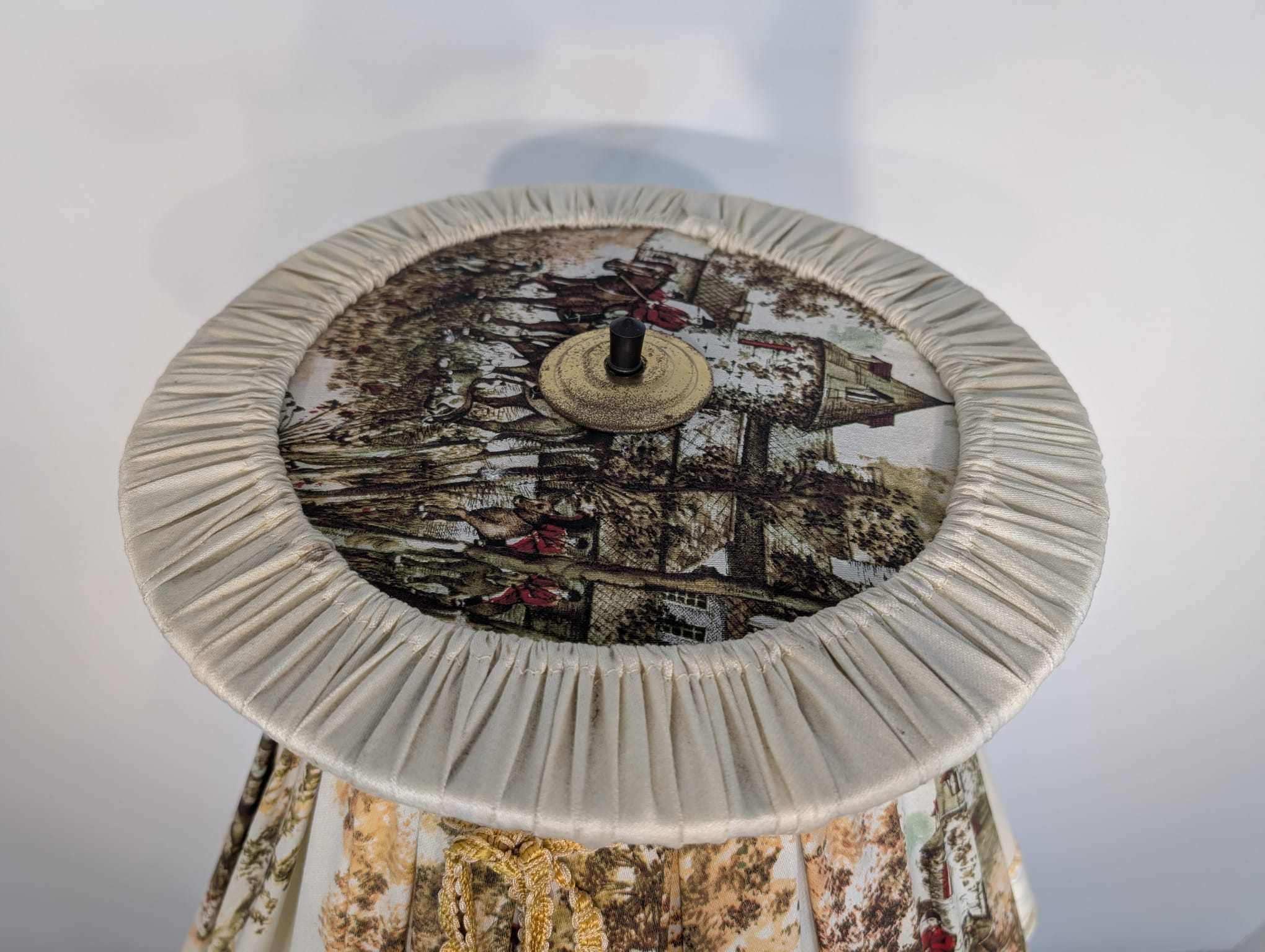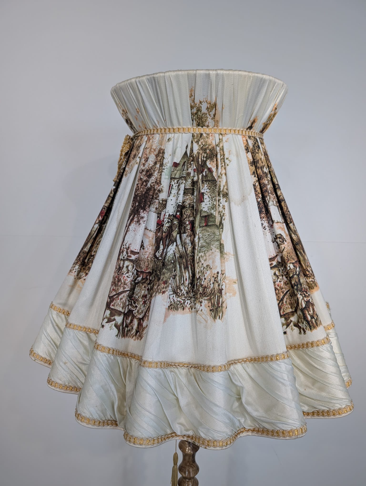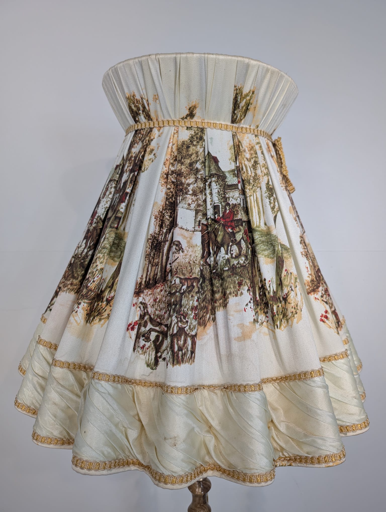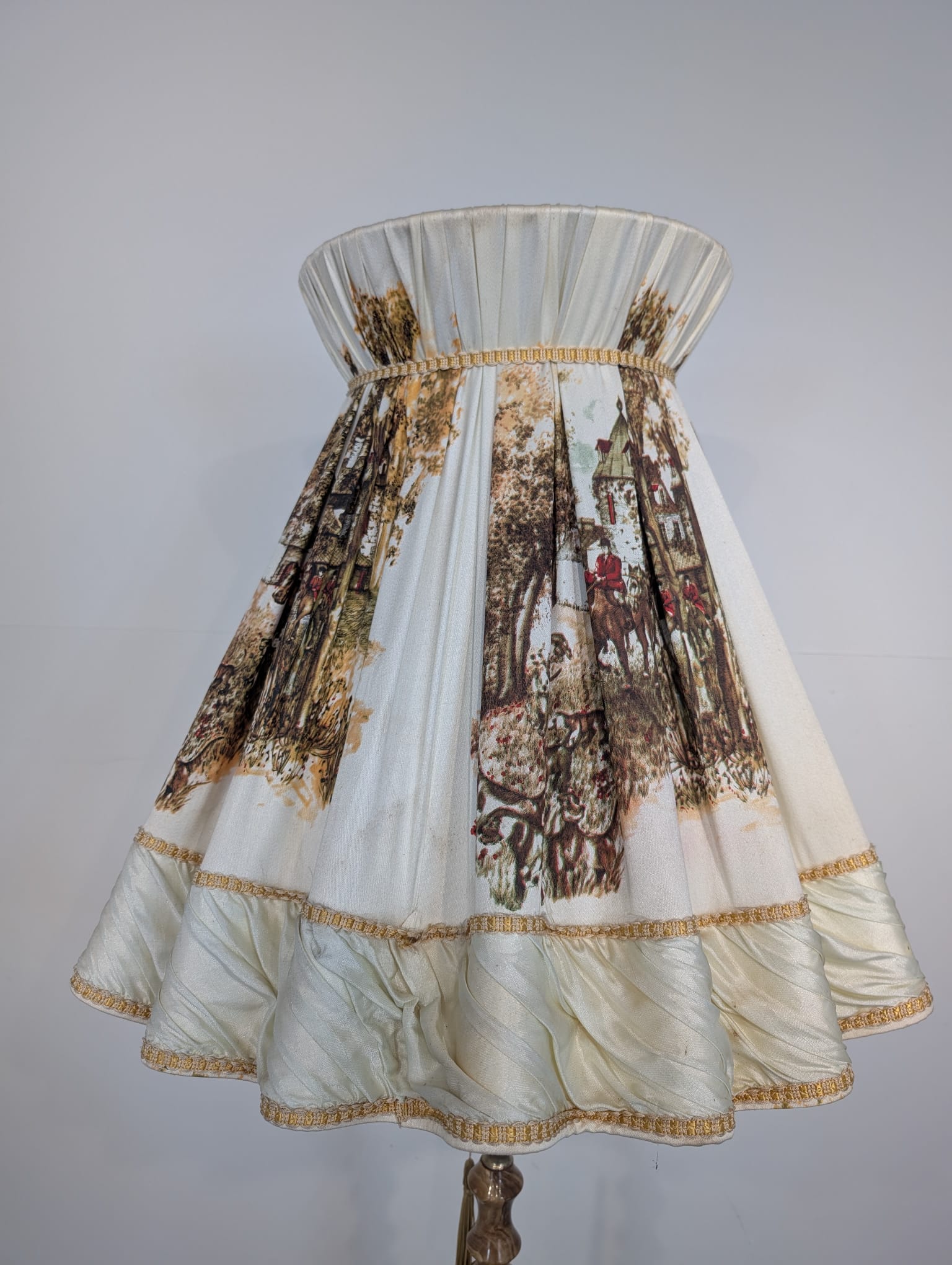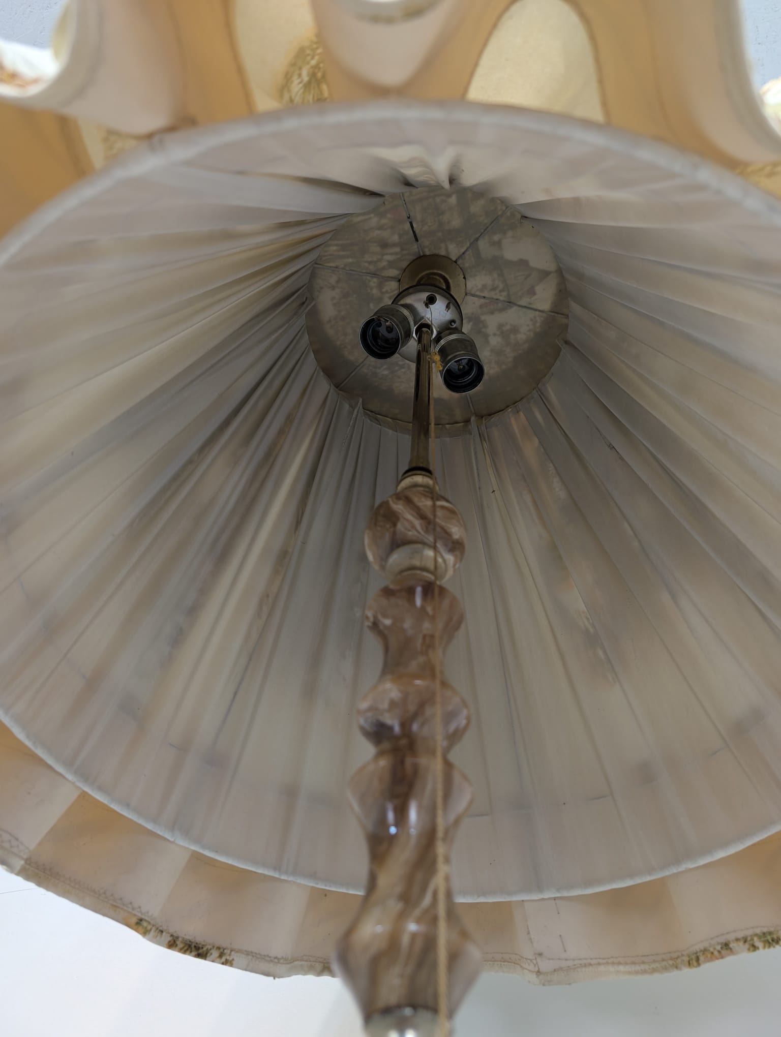Abażur posiada ślady czasu i delikatne zabrudzenia.