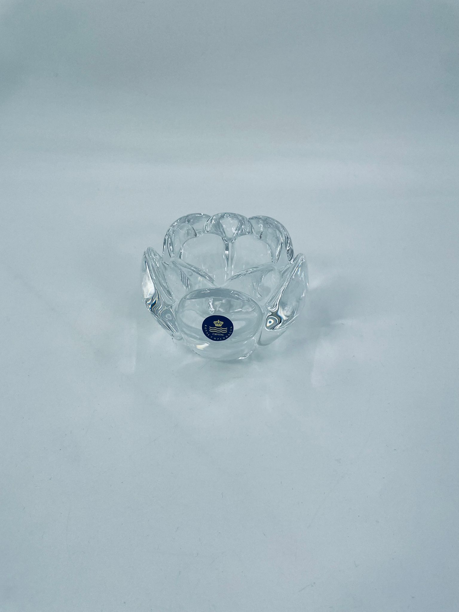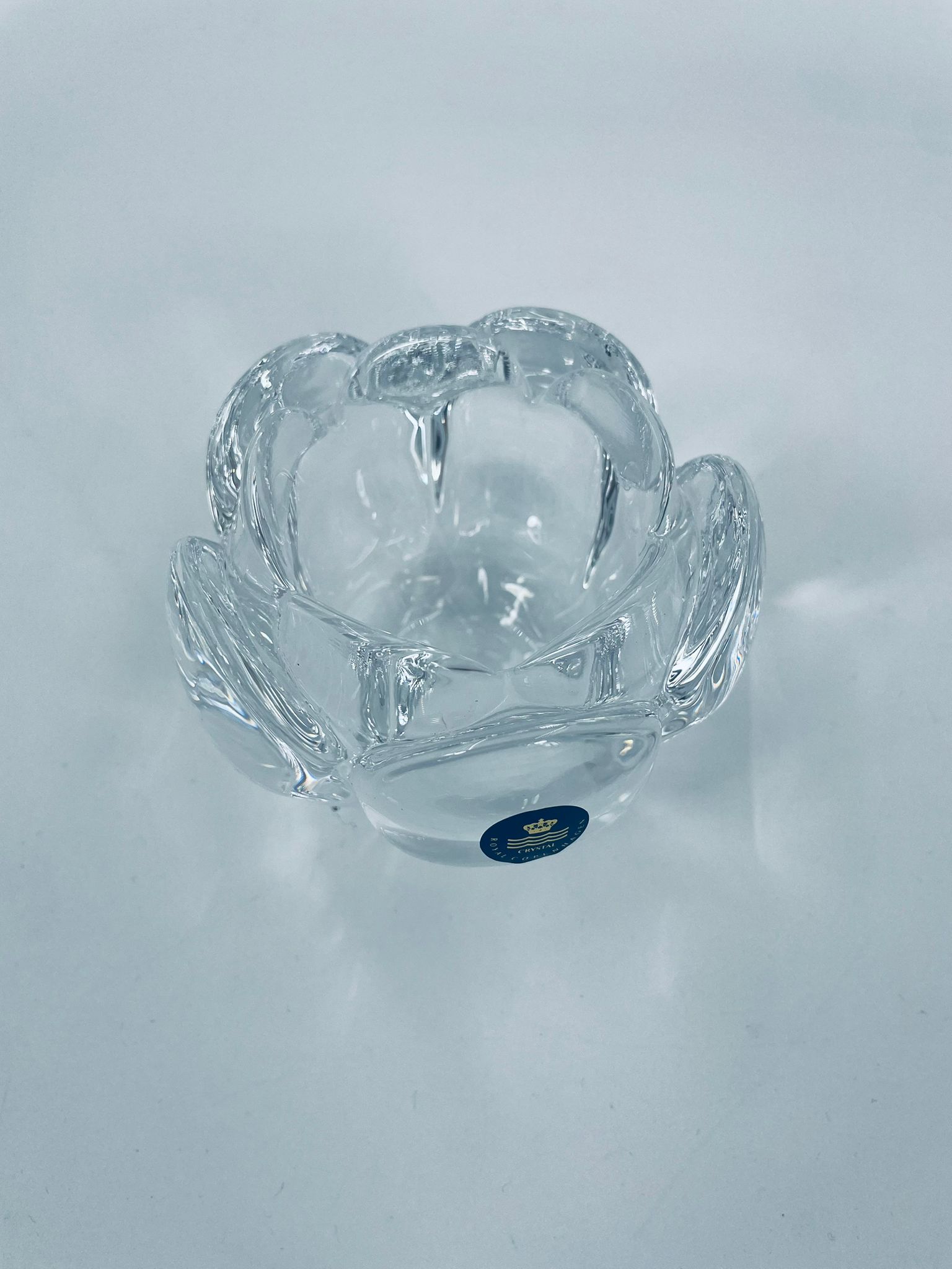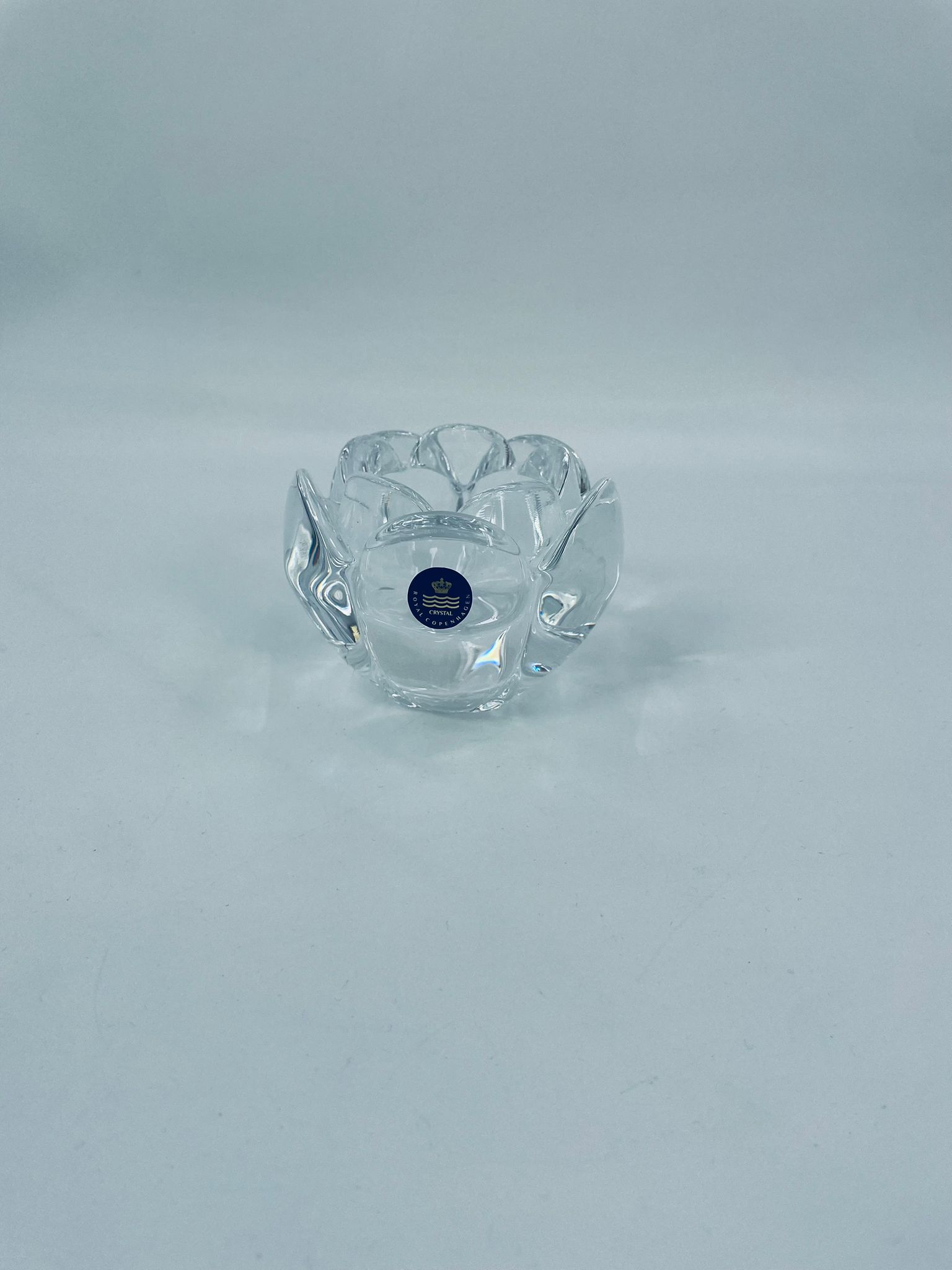 Świecznik wytwórni Royal Copenhagen wykonana z wysokiej jakości grubego szkła kryształowego. Świecznik w kształcie kwiatu losu.