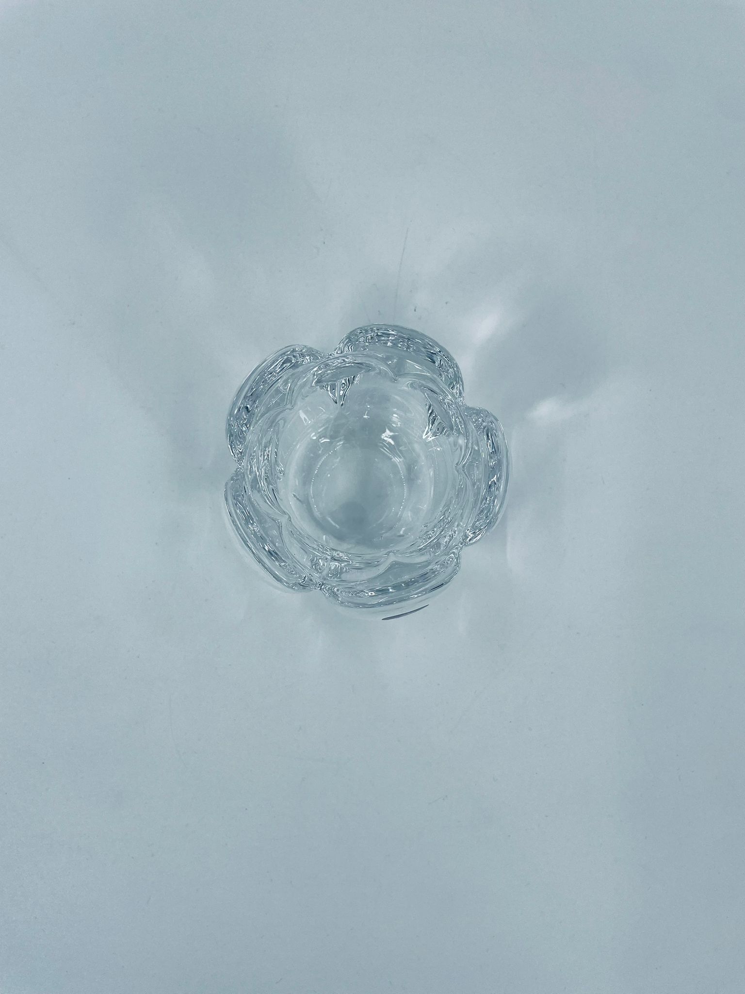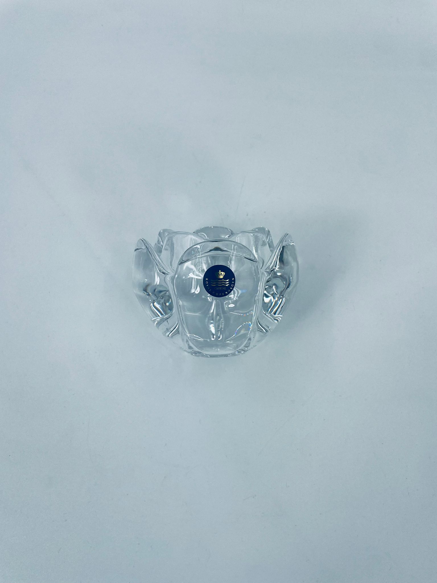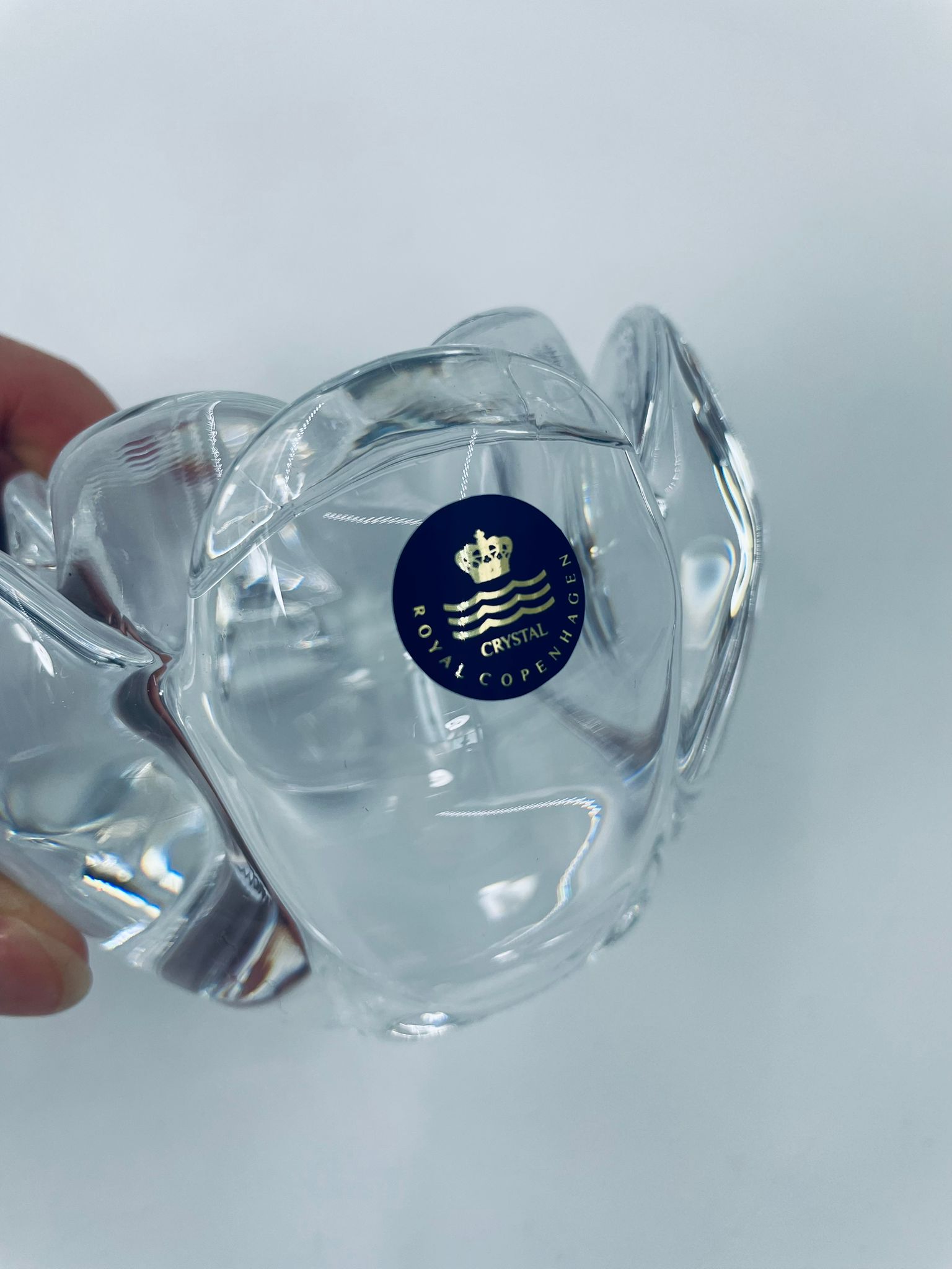Świecznik wytwórni Royal Copenhagen wykonana z wysokiej jakości grubego szkła kryształowego. Świecznik w kształcie kwiatu losu.