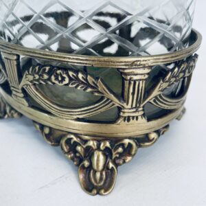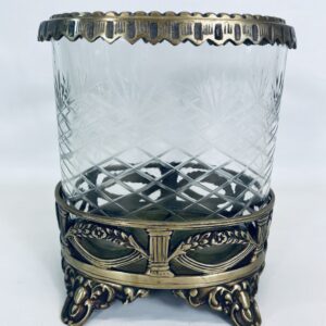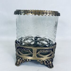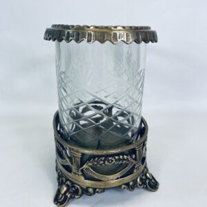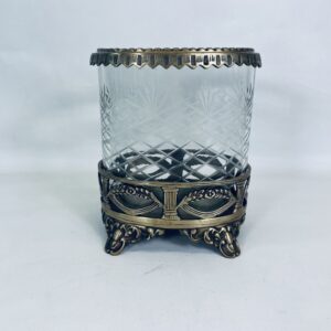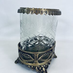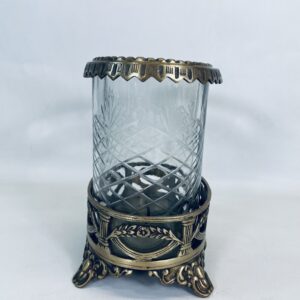 Oryginalny świecznik z mosiądzu i kryształowym szkle z szlifem.