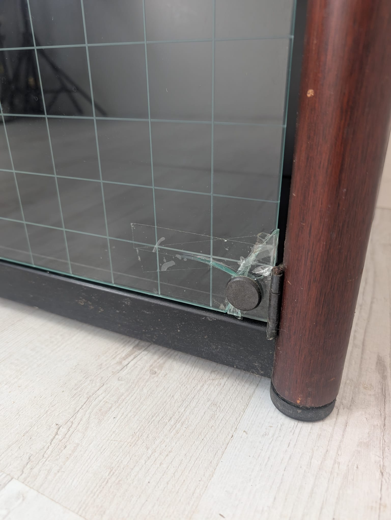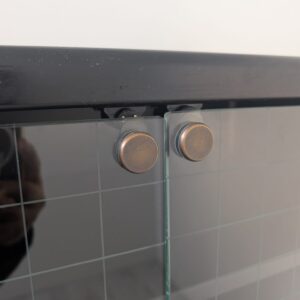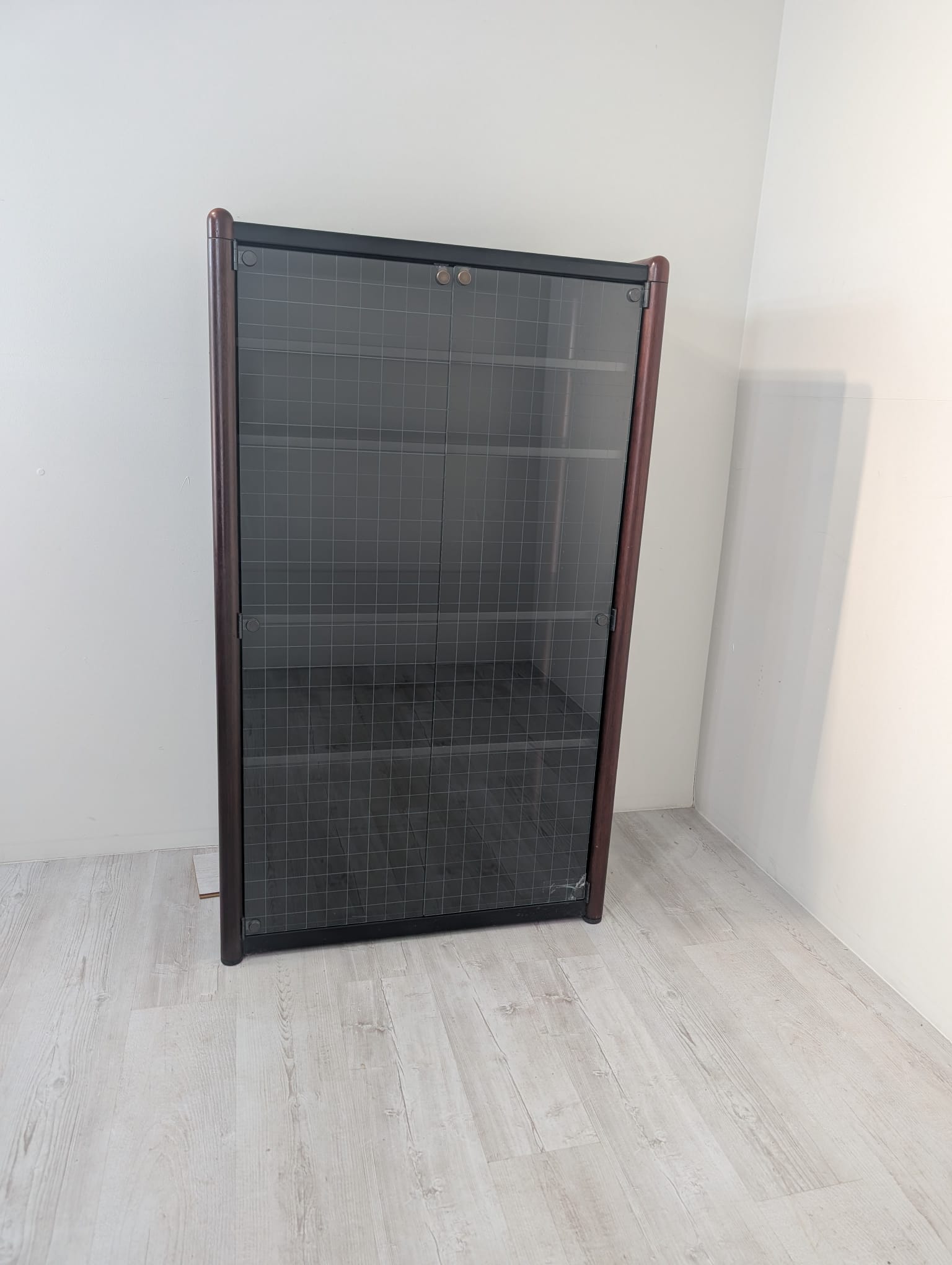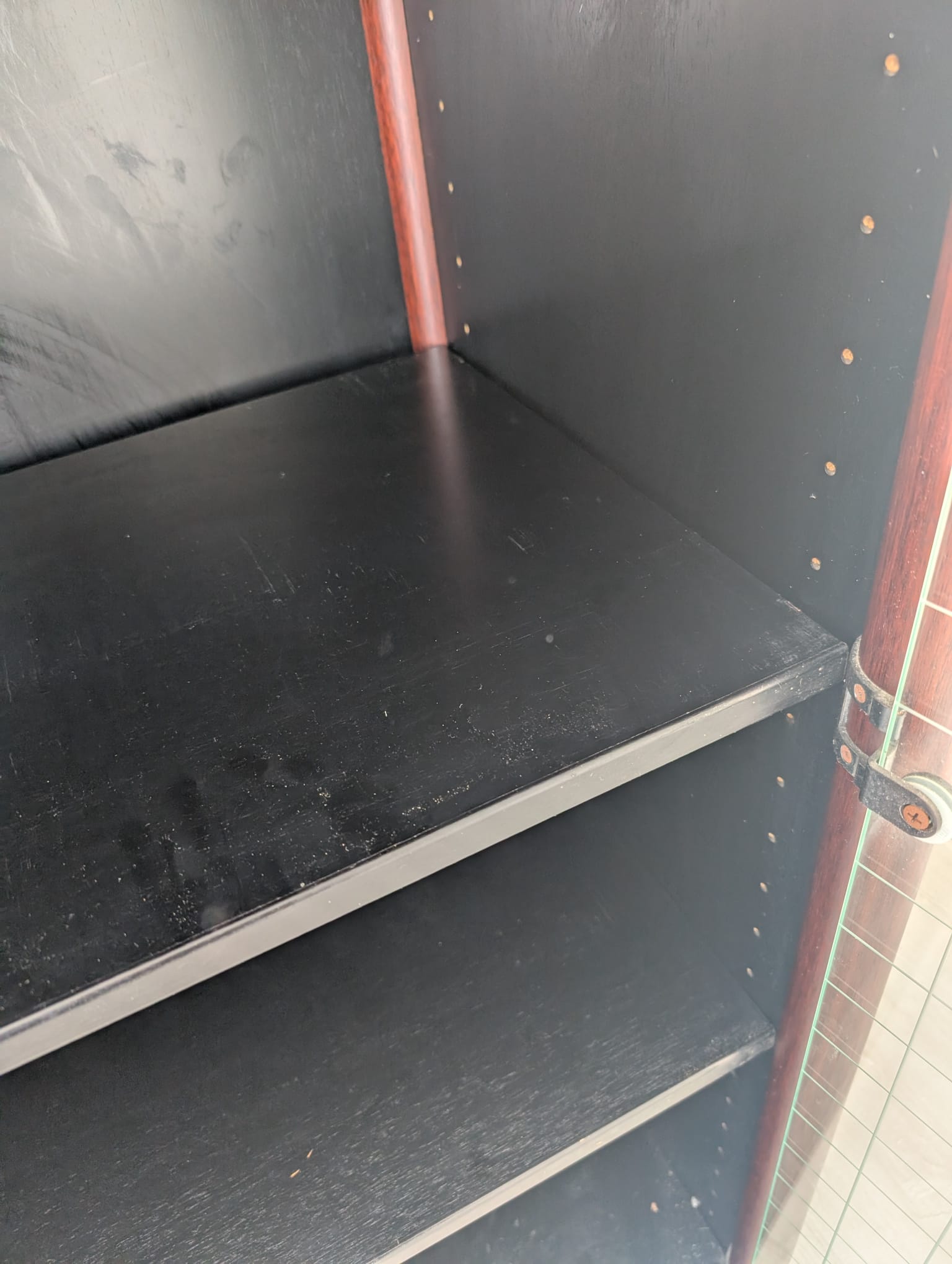 Szyby w kratkę przyciemnione. Możliwość regulacji wysokości półek.