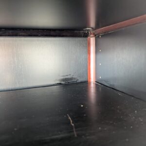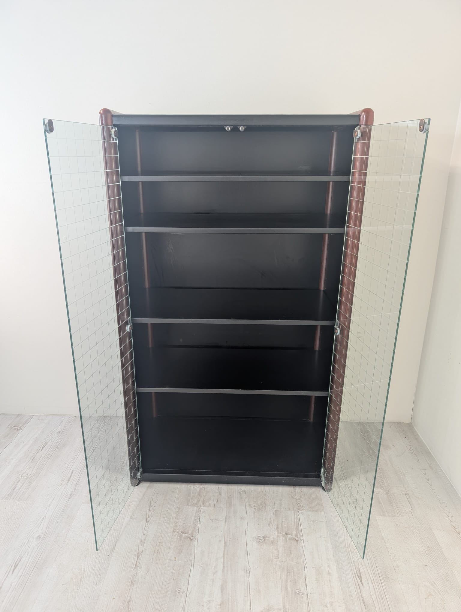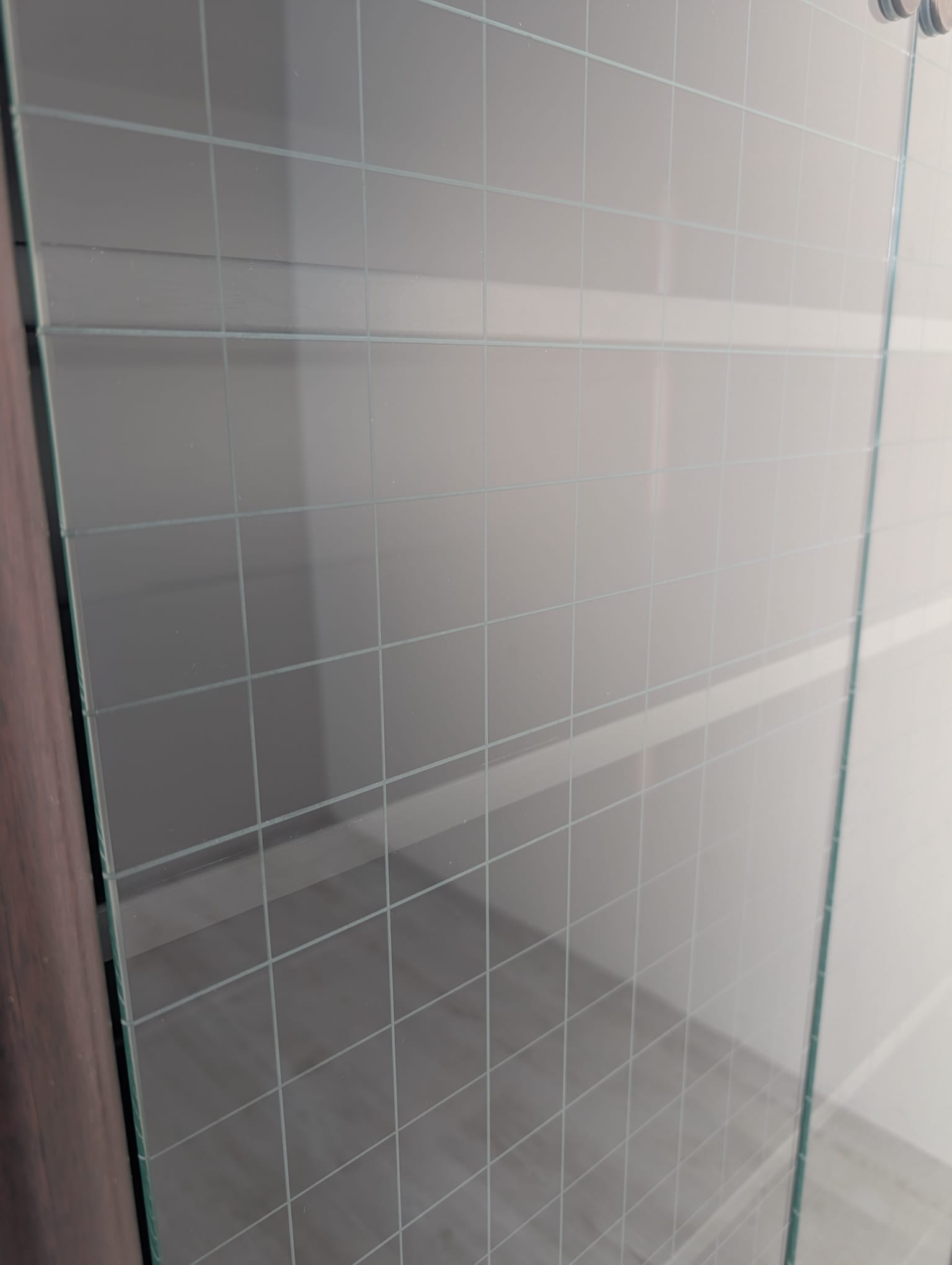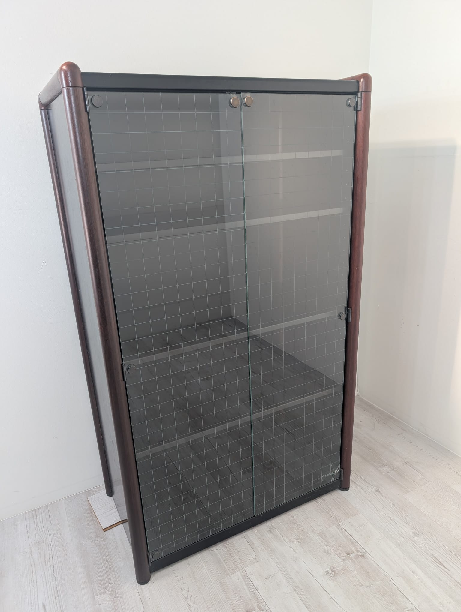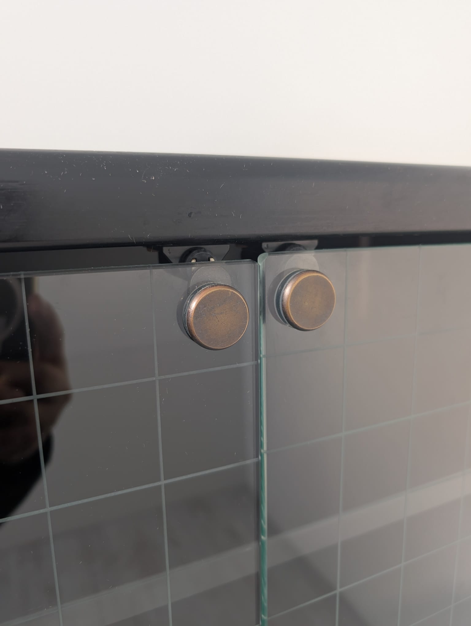 Szyby w kratkę przyciemnione. Możliwość regulacji wysokości półek.
