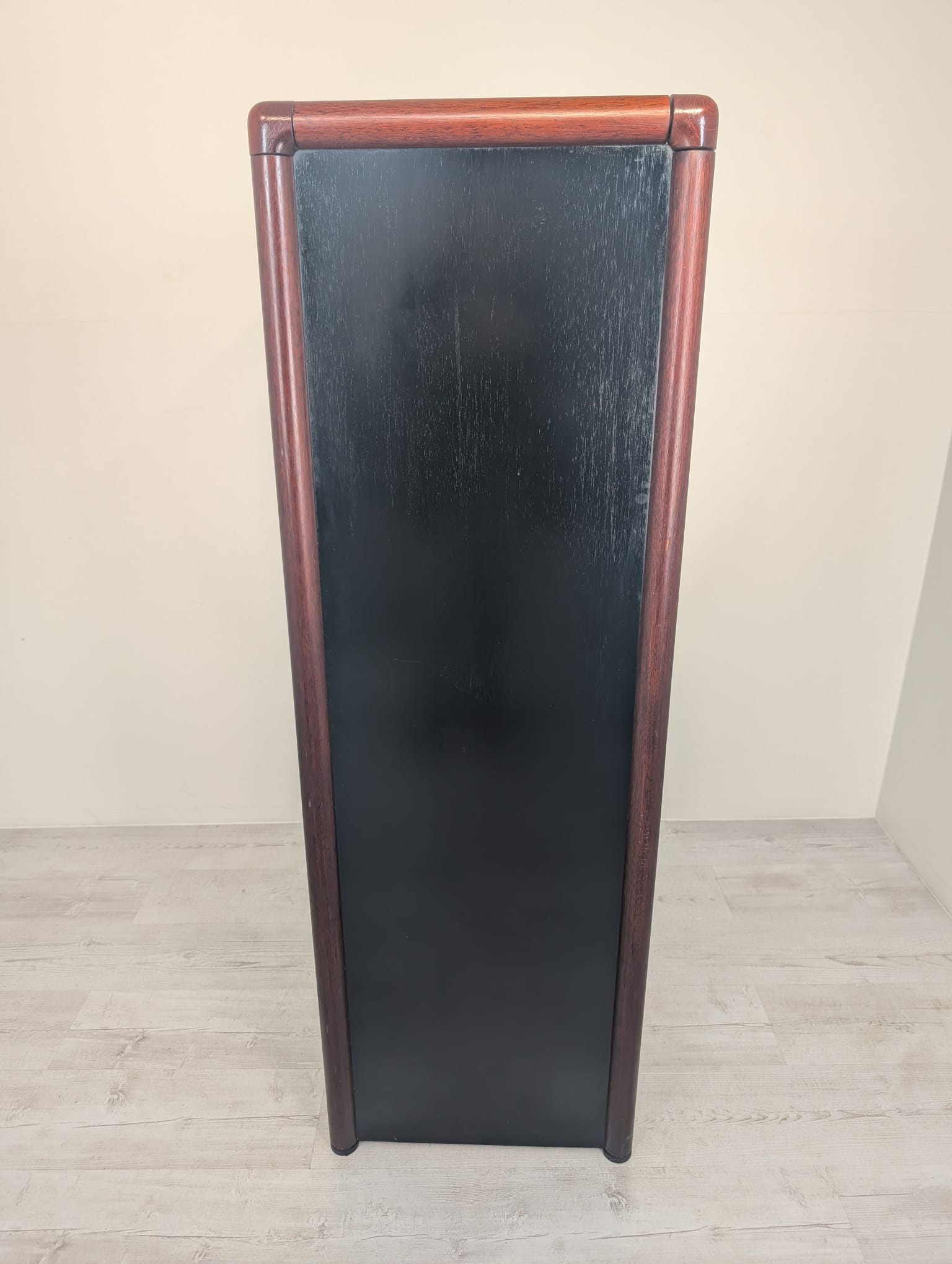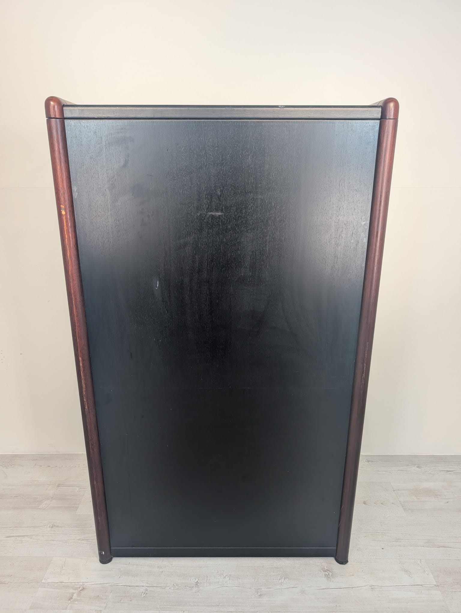 Stylowy szafka Flottoto z drewna palisandrowego z lat 70-tych. Mebel w dobrym stanie, z charakterystycznymi dla tamtego okresu drewnianymi elementami. Doskonały do aranżacji w stylu vintage lub retro.