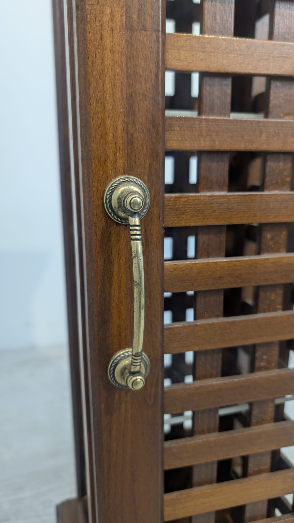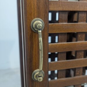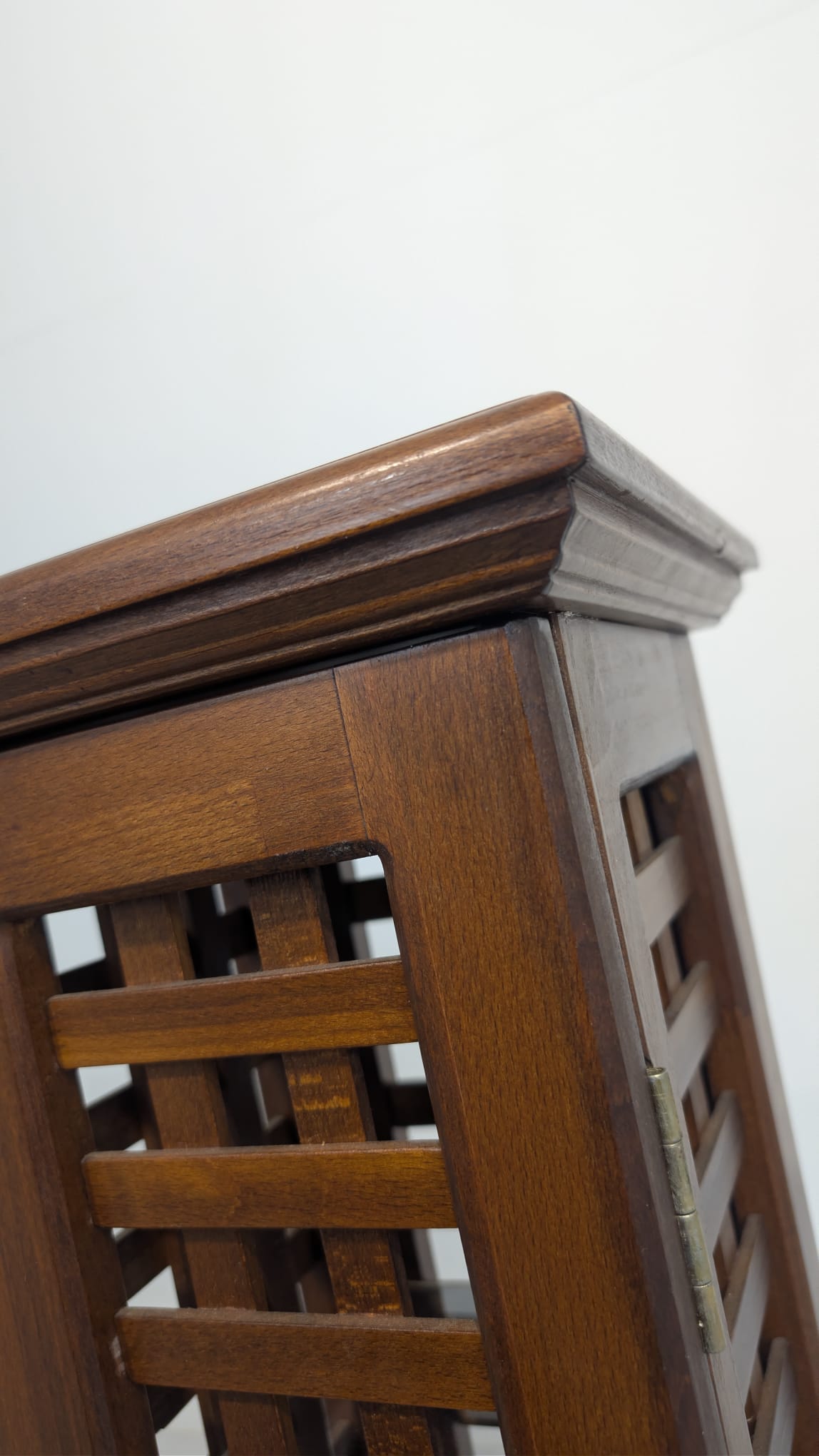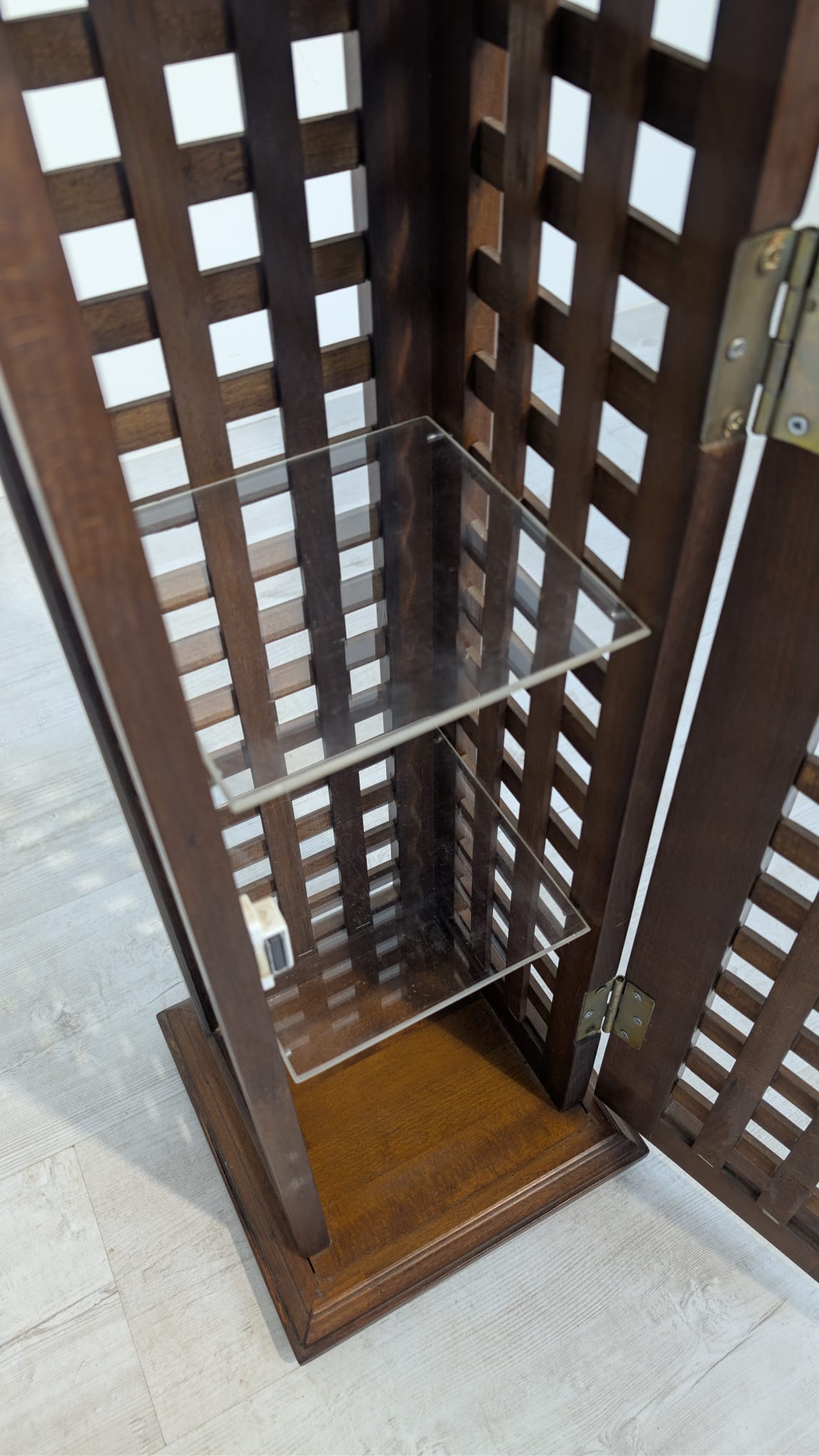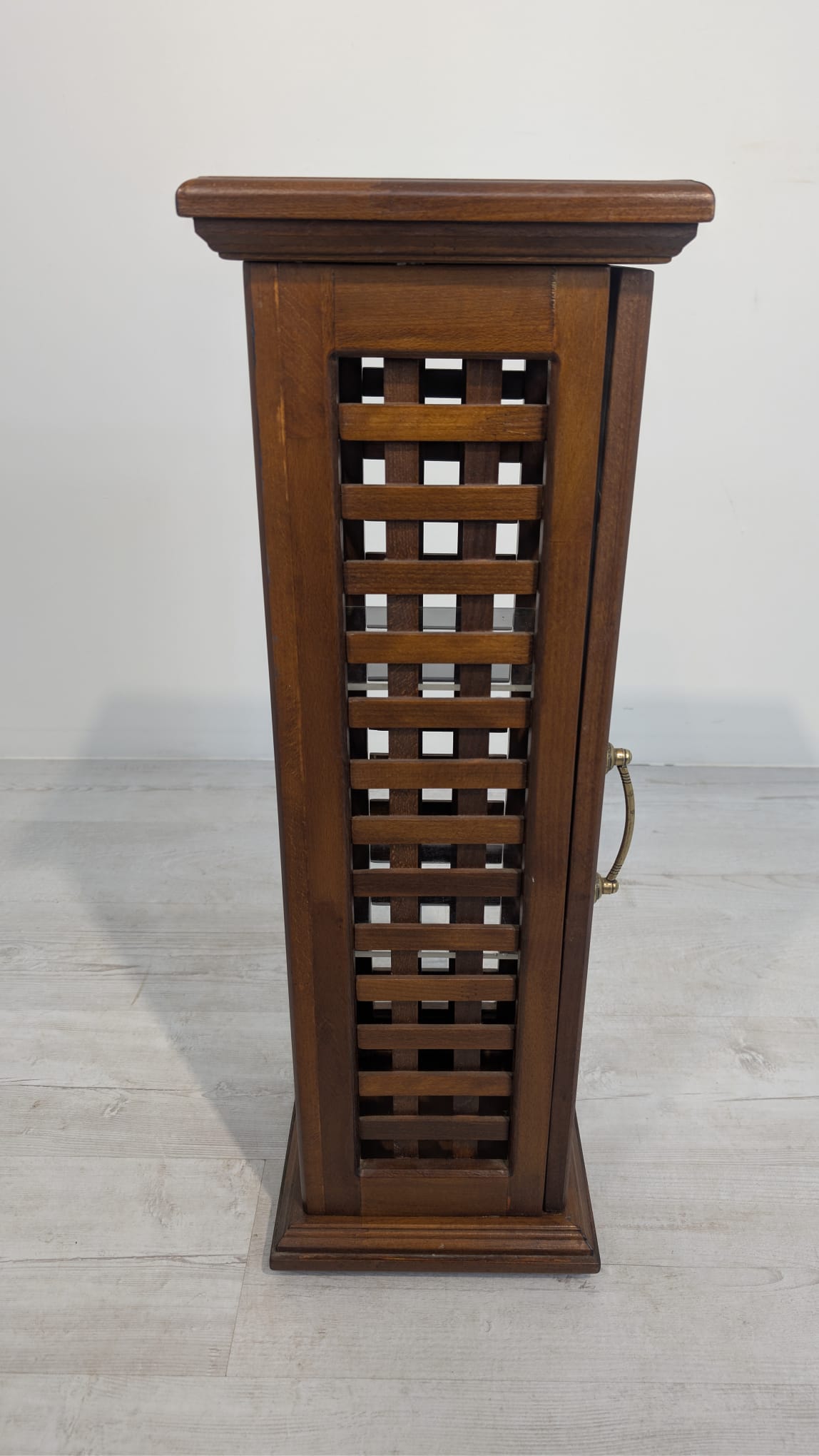 Stylowy, drewniany postument z półkami. Wykonany z drewna palisandrowego, posiada ażurową konstrukcję pozwalającą na przechowywanie. Mebel w dobrym stanie, może stanowić ciekawą dekorację lub praktyczne rozwiązanie do przechowywania.