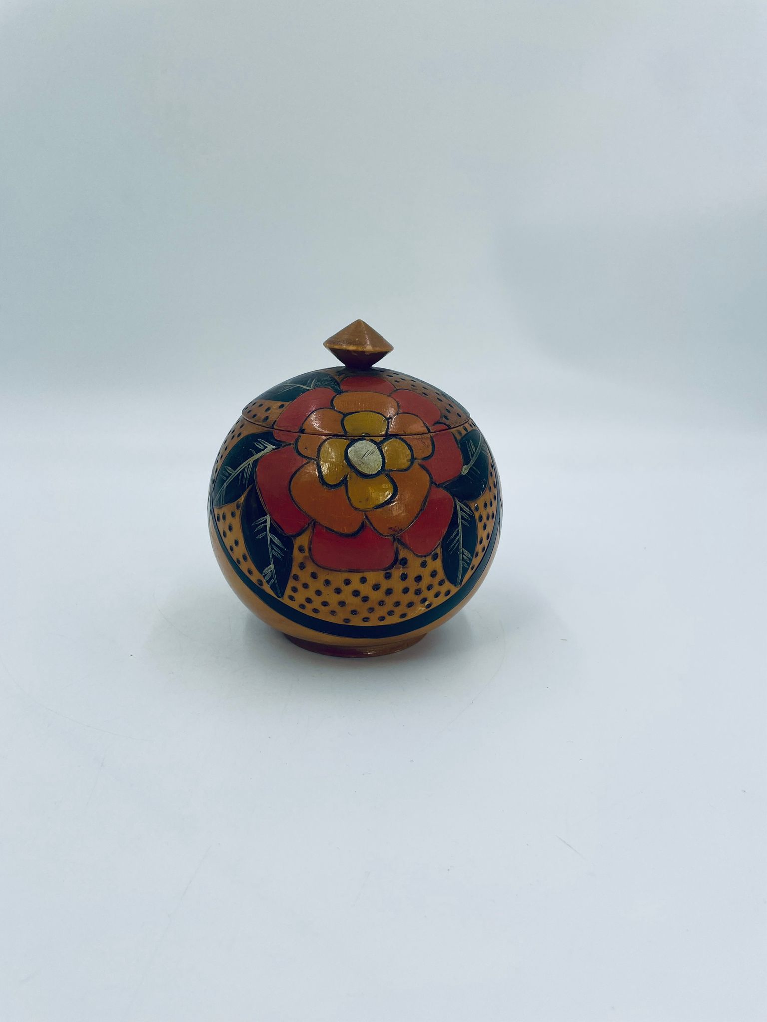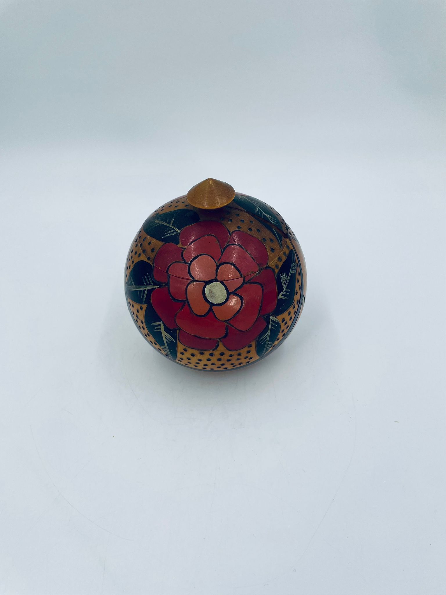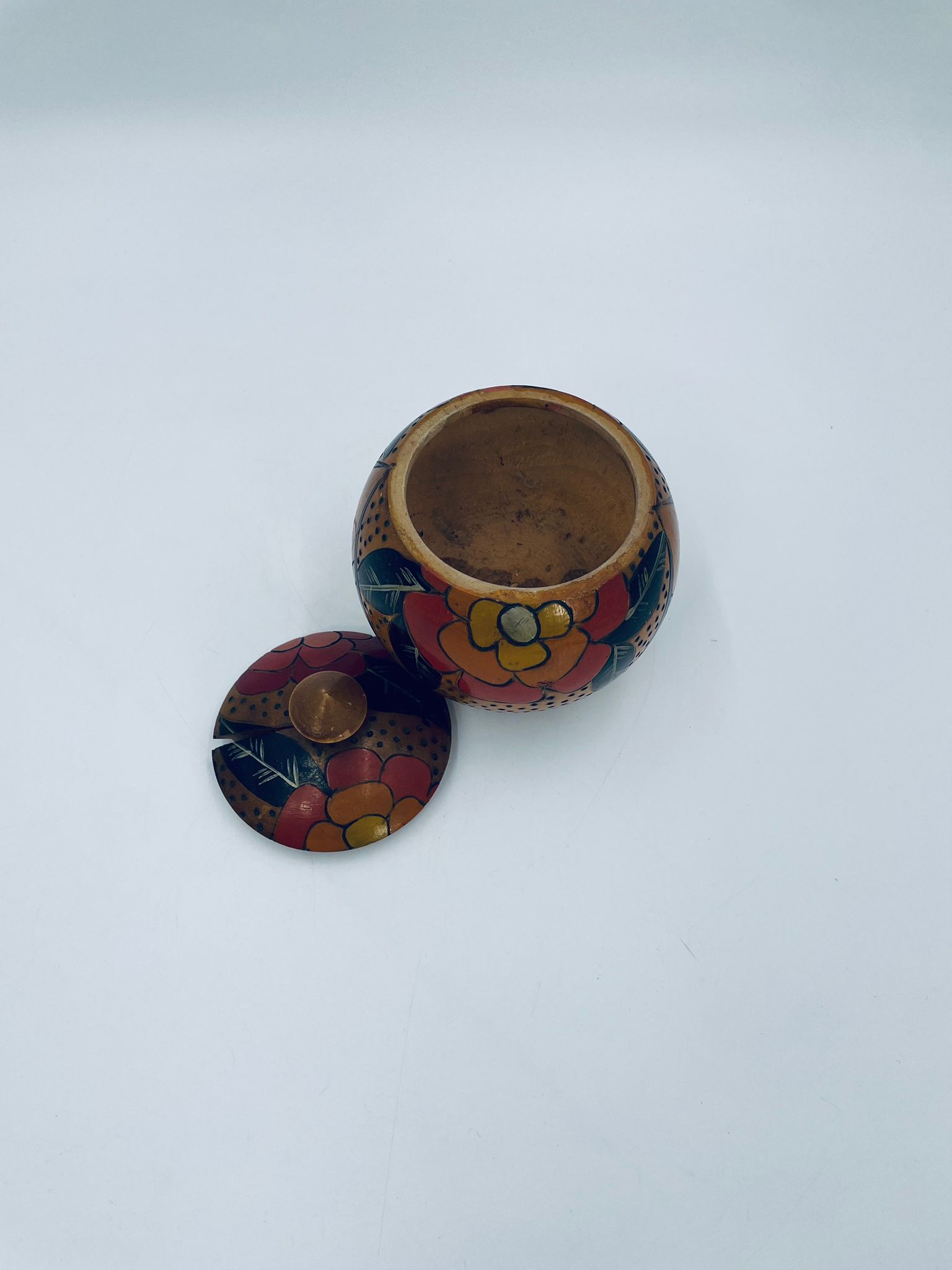 Szkatułka, pudełko na drobiazgi w stylu Vintage, wykonanie z drewna. Szkatułka z pokrywą, ozdobiona trawionym wzorem kwiatowym, ręcznie malowana. Posiada pekniecie na pokrywie