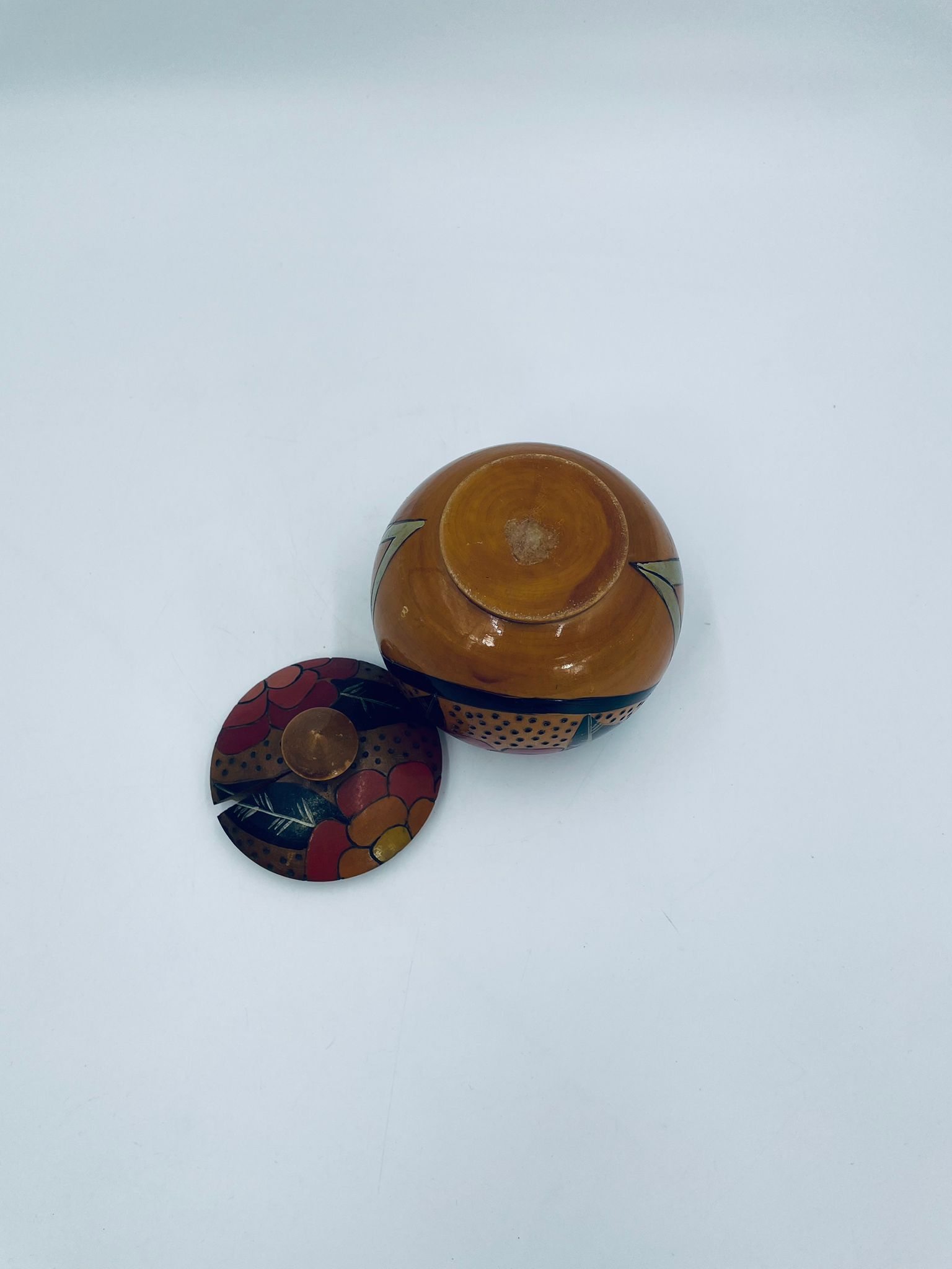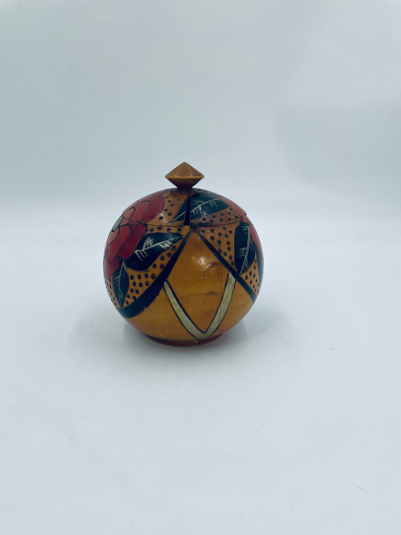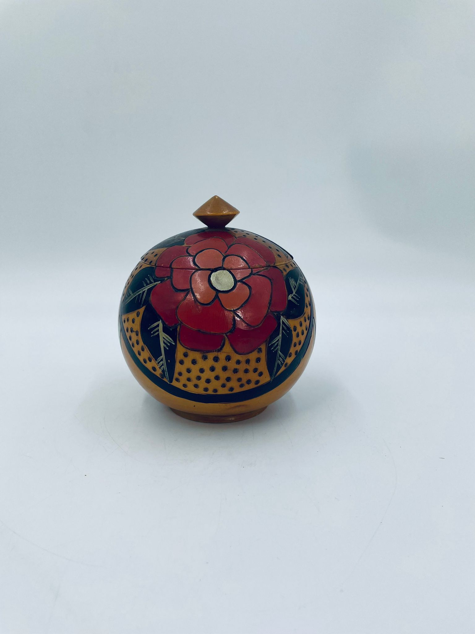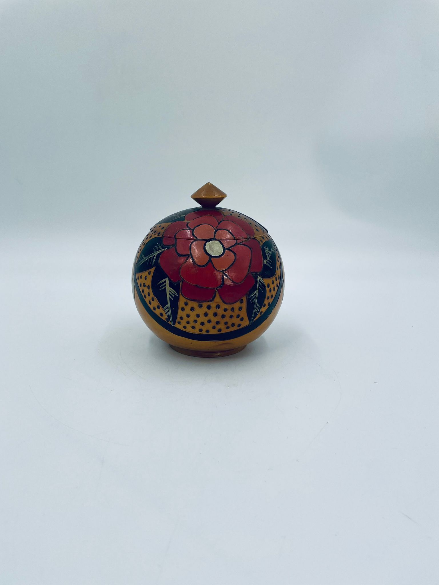 Szkatułka, pudełko na drobiazgi w stylu Vintage, wykonanie z drewna. Szkatułka z pokrywą, ozdobiona trawionym wzorem kwiatowym, ręcznie malowana. Posiada pekniecie na pokrywie