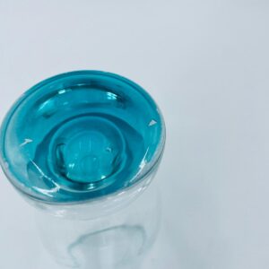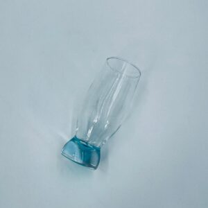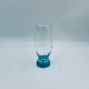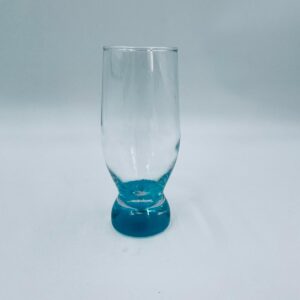 Szklanka do soku w stylu Vintage, wykonana z wysokiej jakości szkła kryształowego. Szklanka klasyczna, przezroczysta z turkusową podstawą. Posiada przetarcie na kolorze.