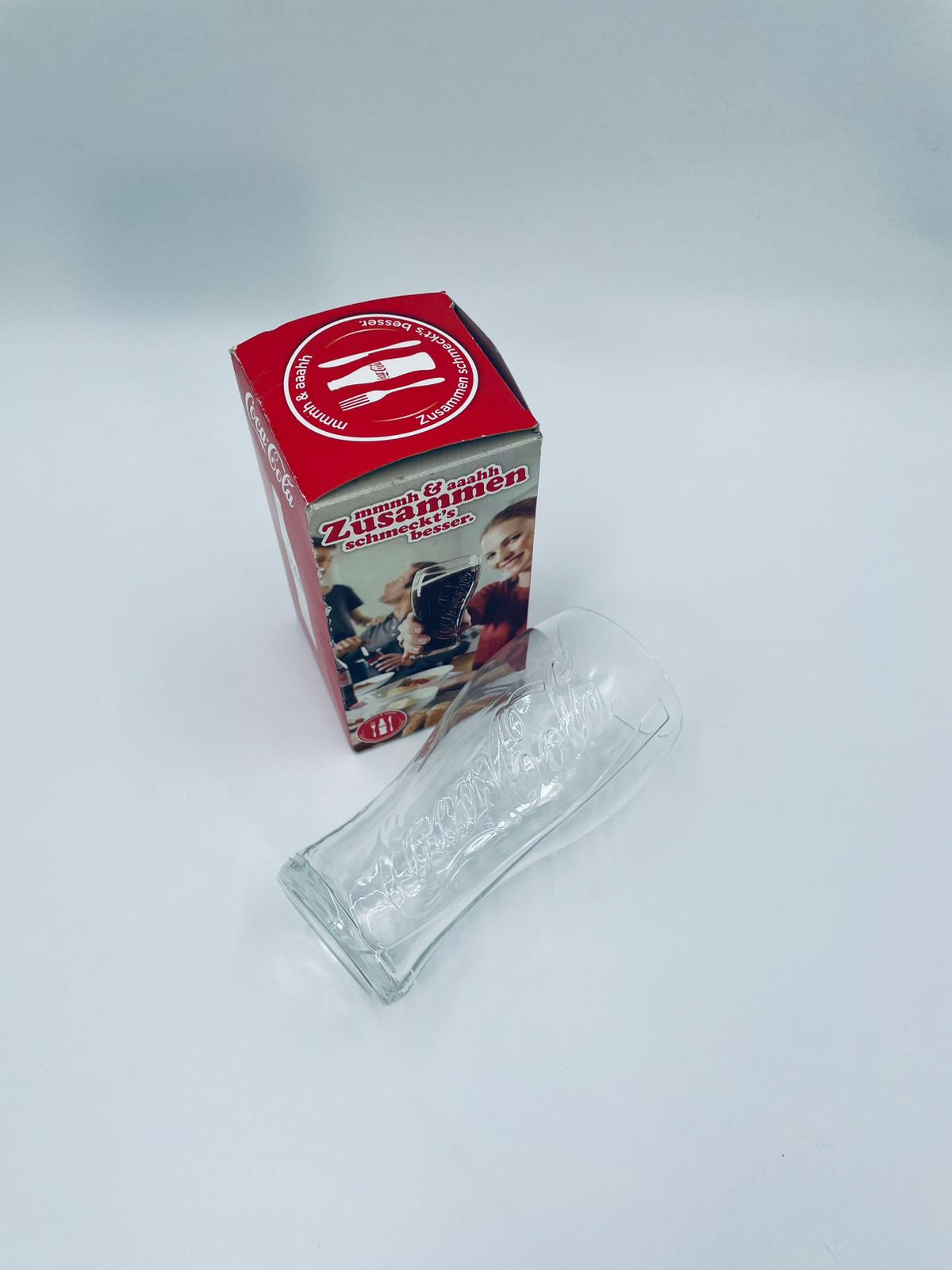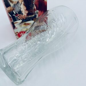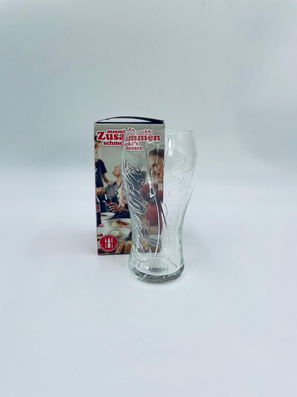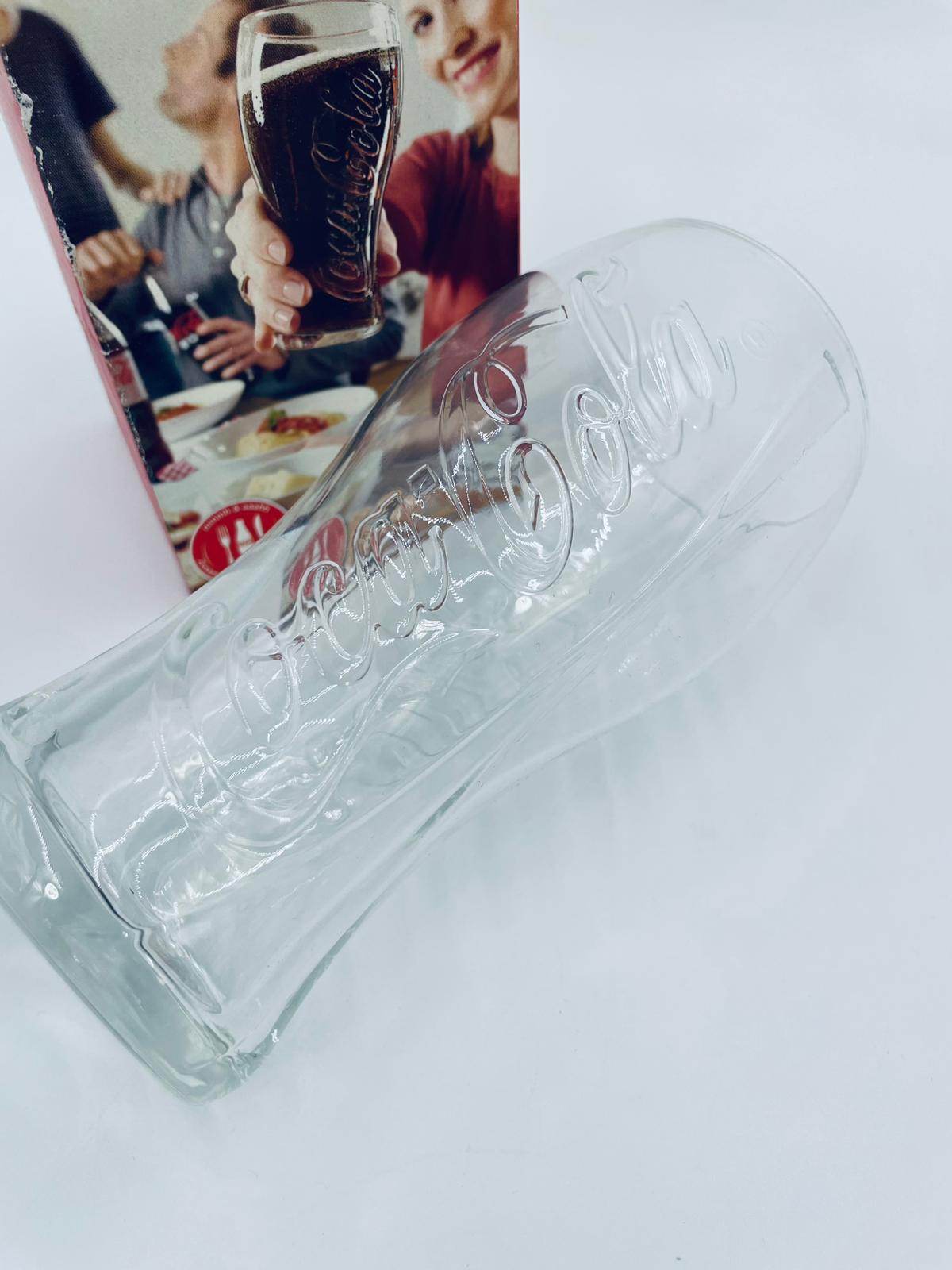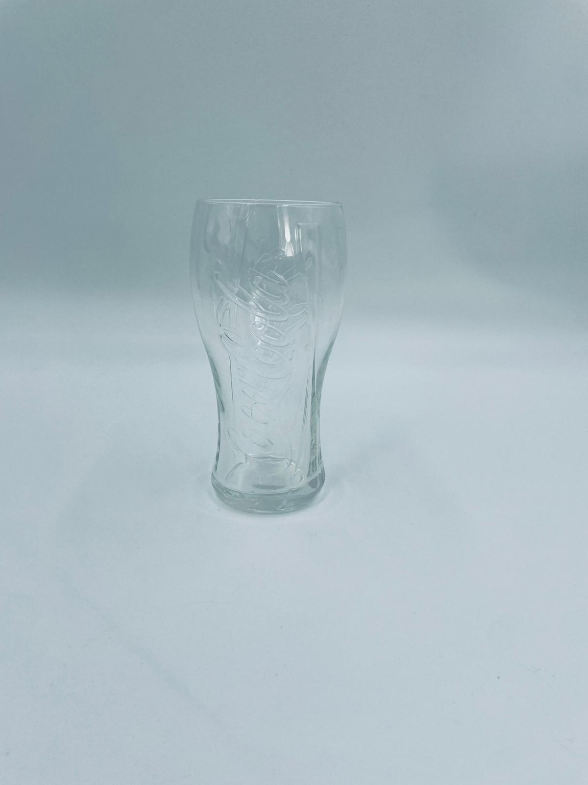 Szklanka kolekcjonerska Coca Cola, wykonana z wysokiej jakości szkła. Szklanka przezroczysta, posiada charakterystyczny, kontrowany kształt z tłoczonymi napisami Coca Cola.
