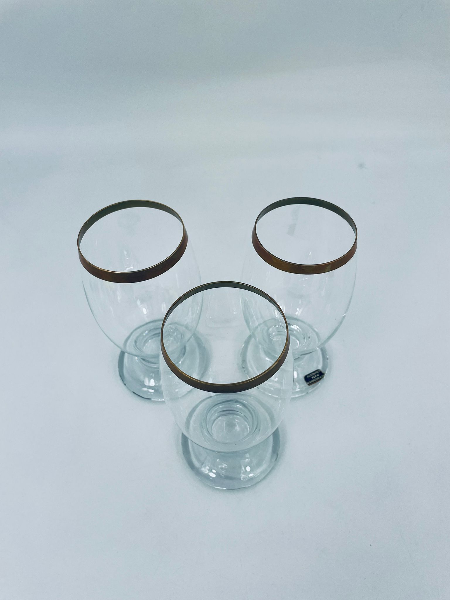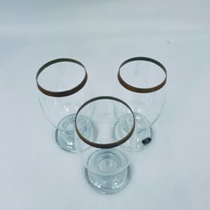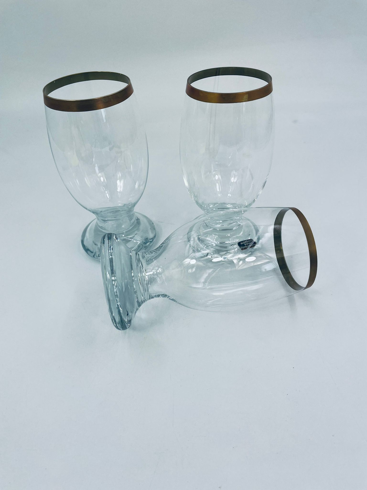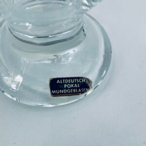 Szklany Niemiecki kielich/ kufel do piwa. Szkło dmuchane, bezbarwne, wykończone złoceniami na górnym rancie.