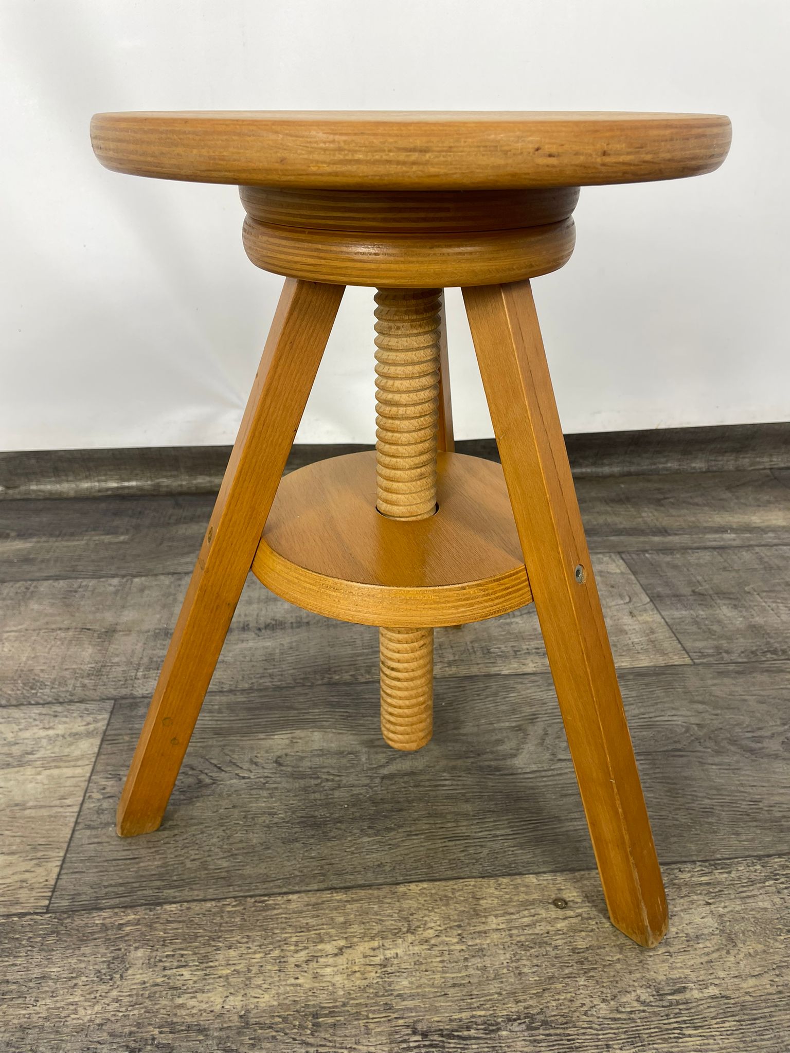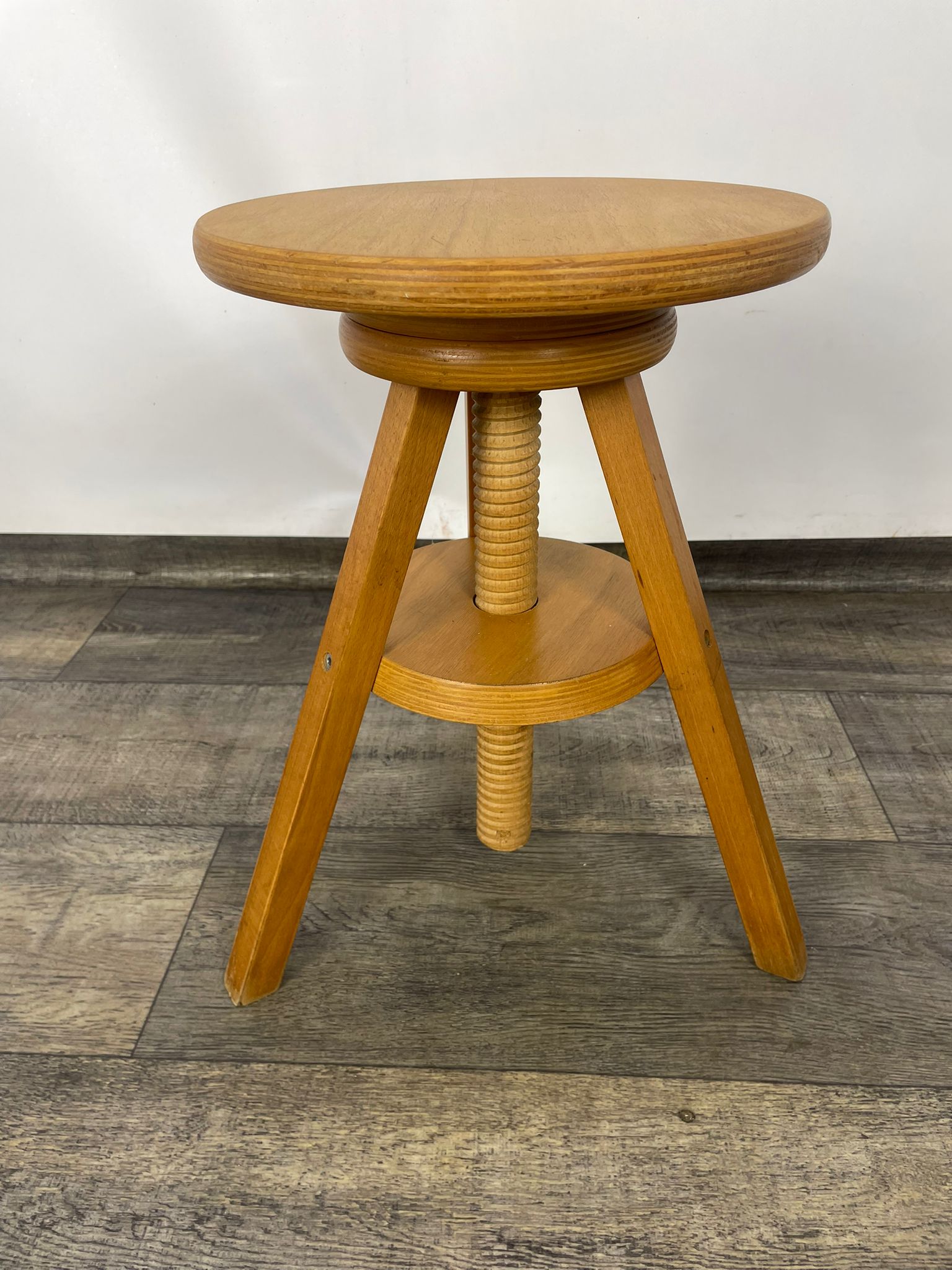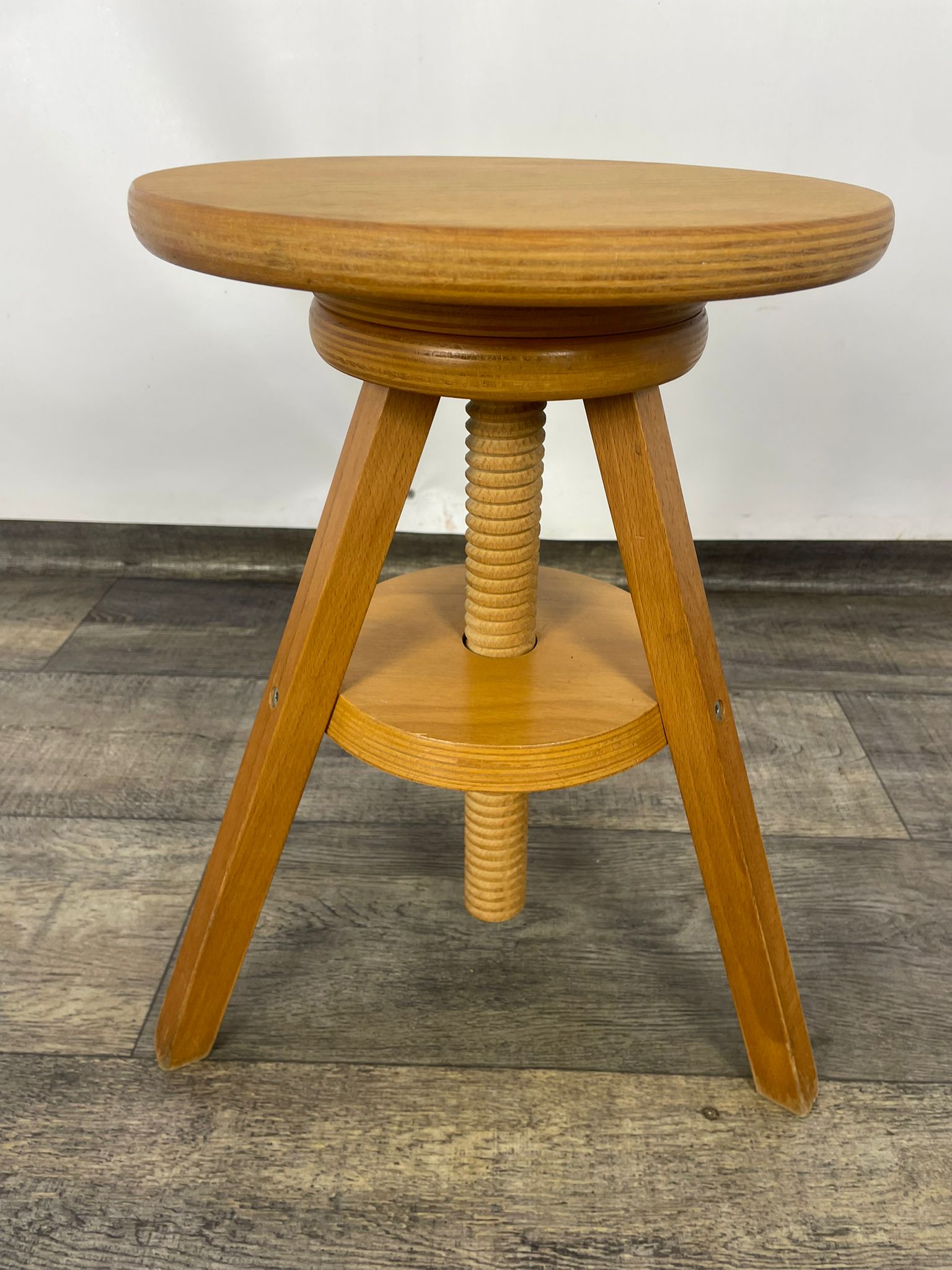 Taboret, stołek obrotowy śrubowy do pianina drewno bukowe lata 80-te