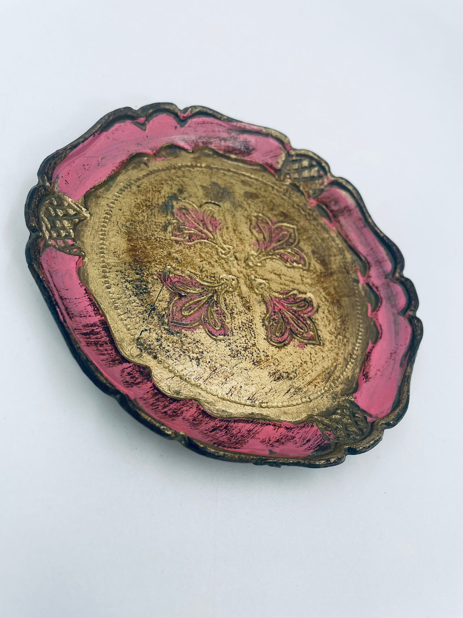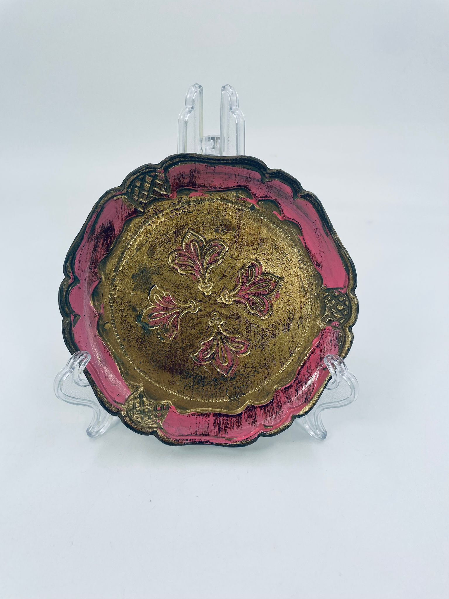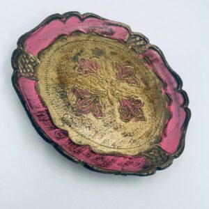 Taca włoska w stylu vintage. Ręcznie rzeźbiona i malowana w złotych kolorach z połyskiem. Barwy i wykończenia nadają szyku i elegancji dla detali z nutką przedmiotów z duszą.