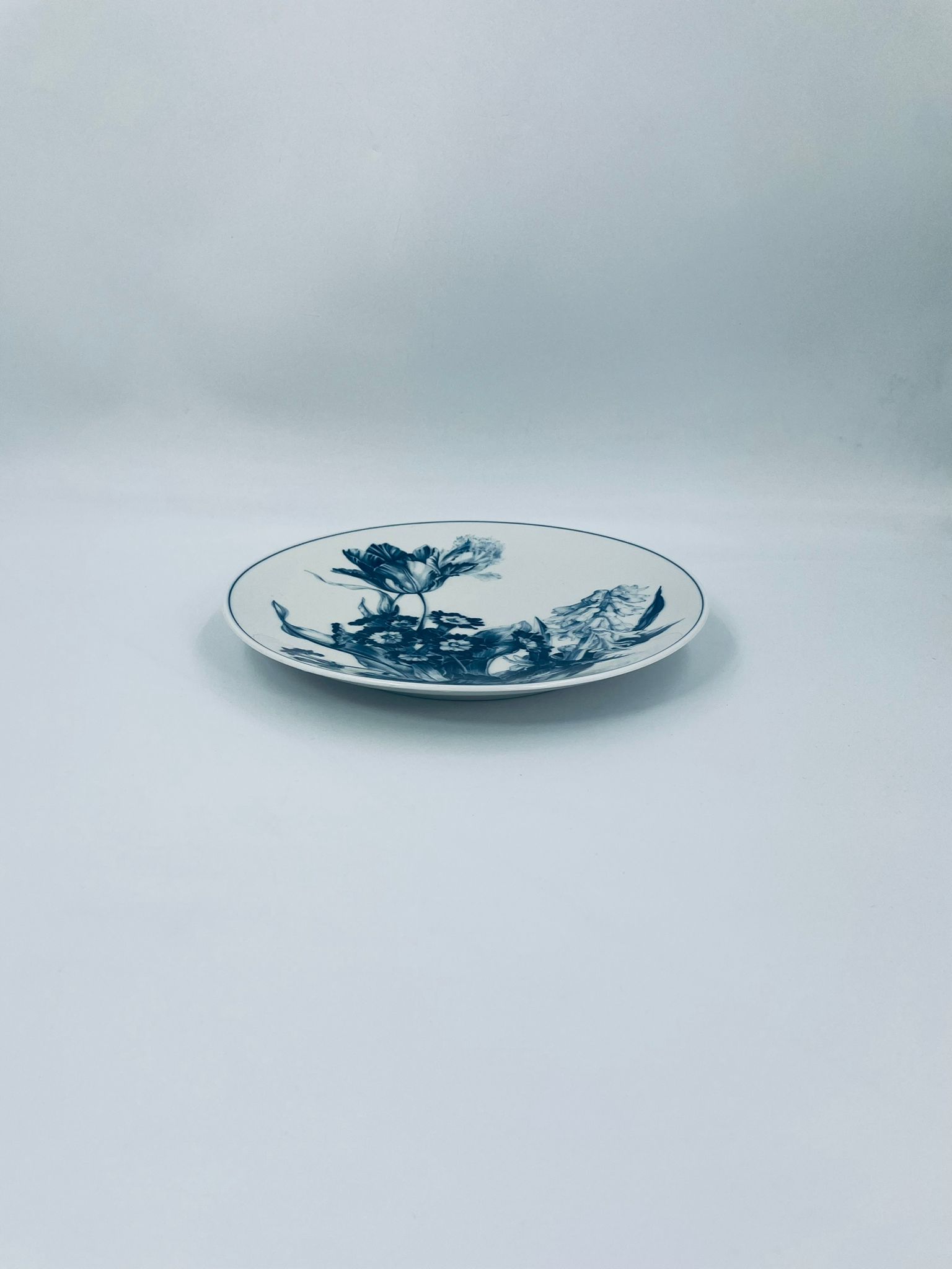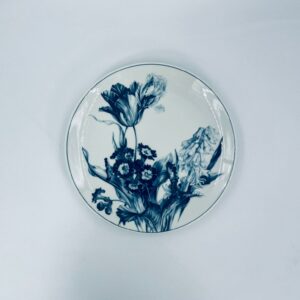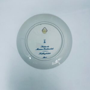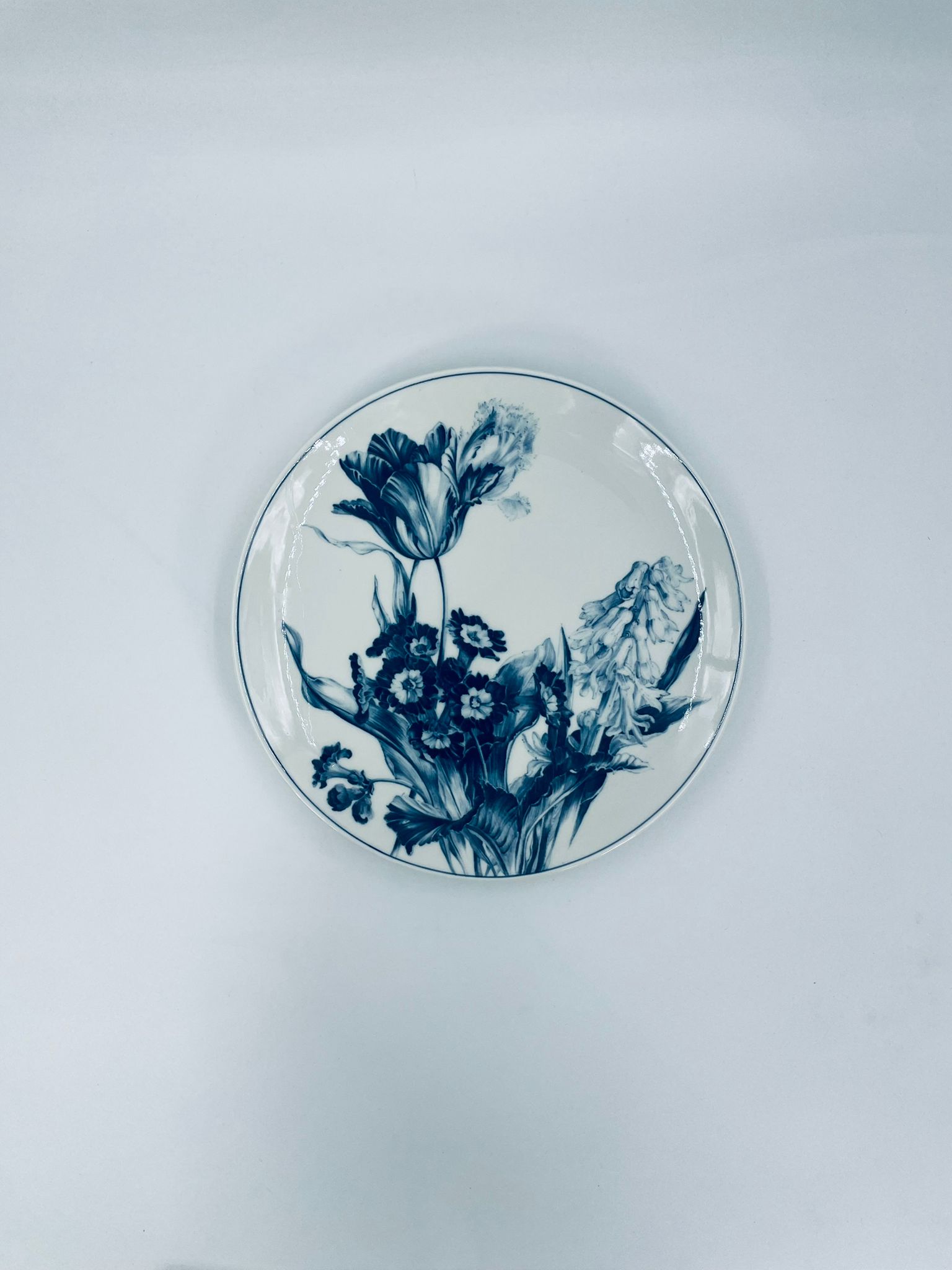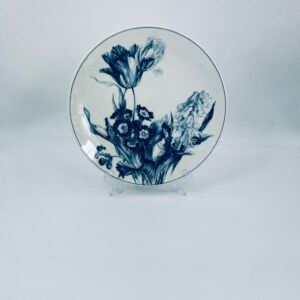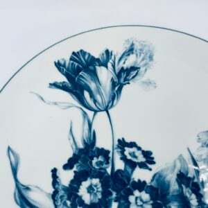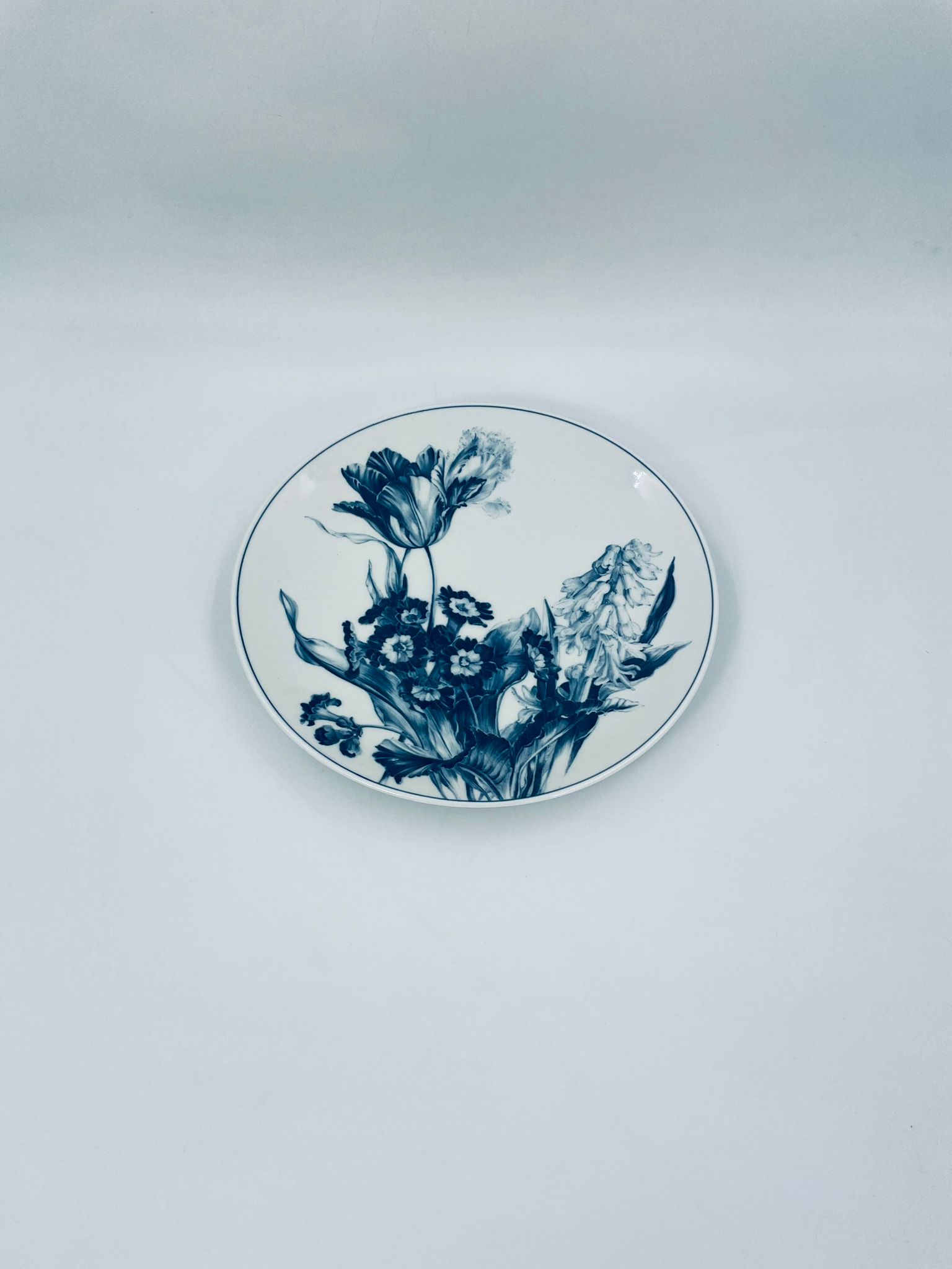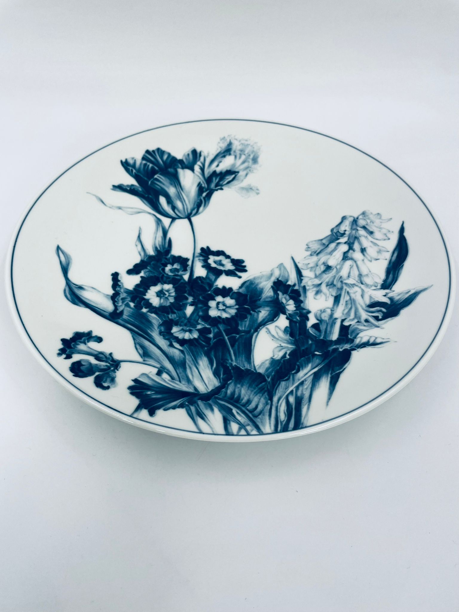 Talerz dekoracyjny ścienny wytwórni Meissen, wykonany z najwyższej jakości porcelany w kolorze ecru. Motywem na talerzu jest niebieski bukiet wiosennych kwiatów.