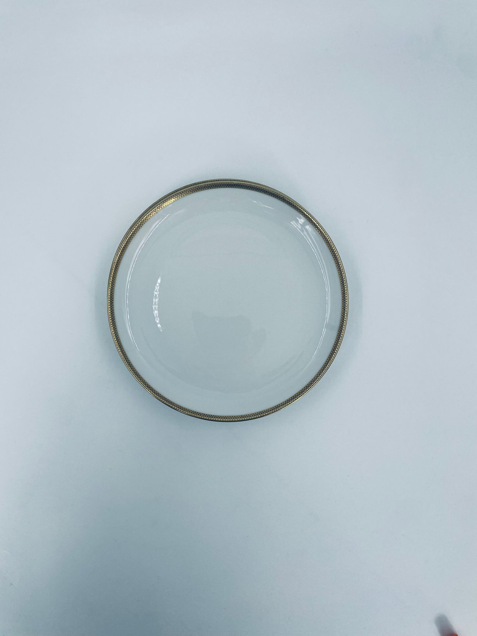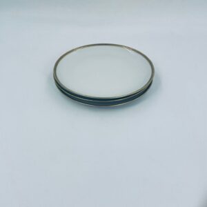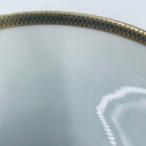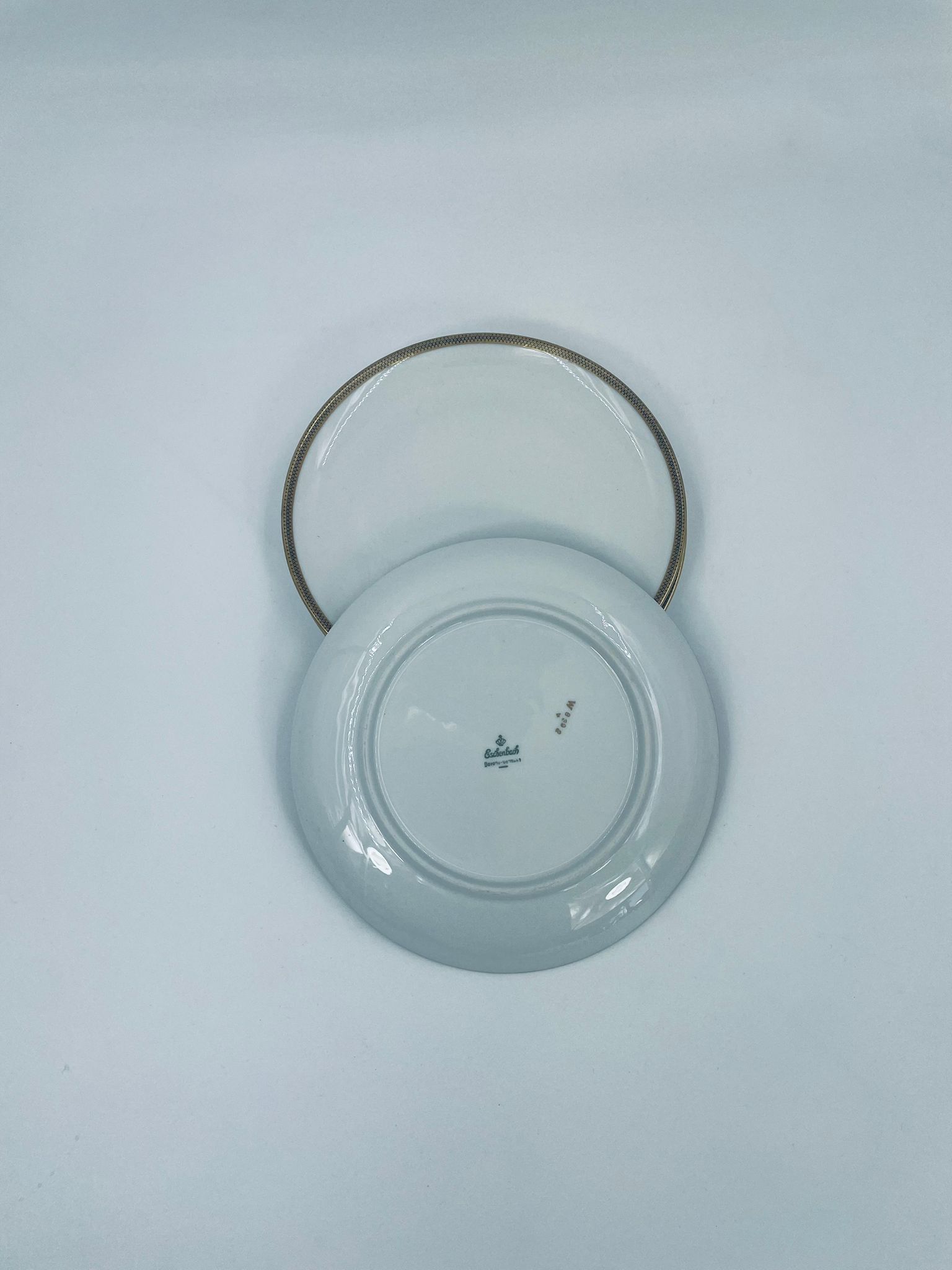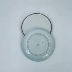 Talerz deserowy wytwórni Eschenbach Bavaria, wykonany z wysokiej jakości białej porcelany. Charakteryzuje się klasycznym stylem z delikatnym zdobieniem oraz złotym obrzeżem.