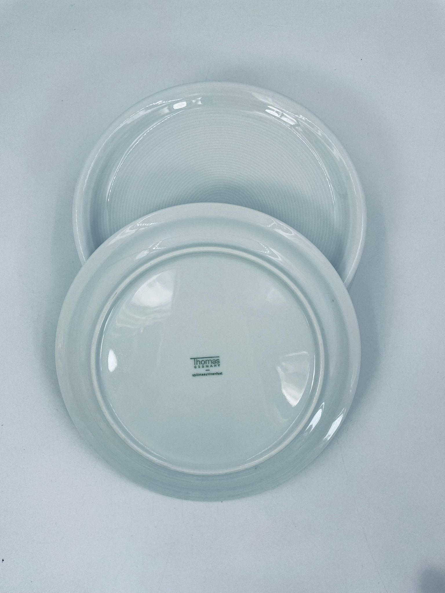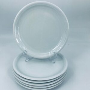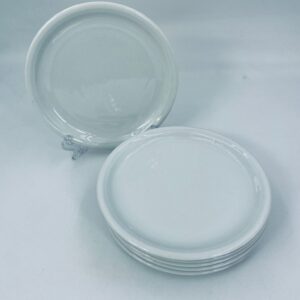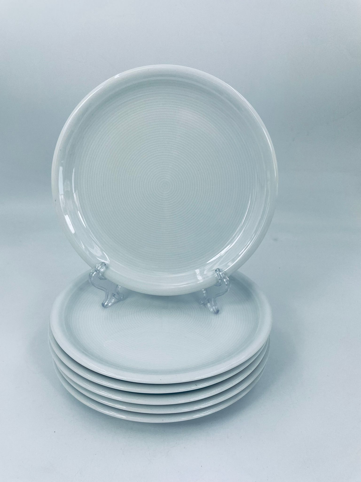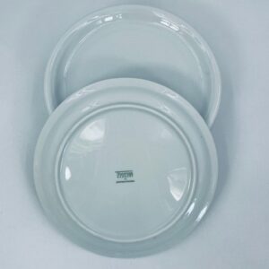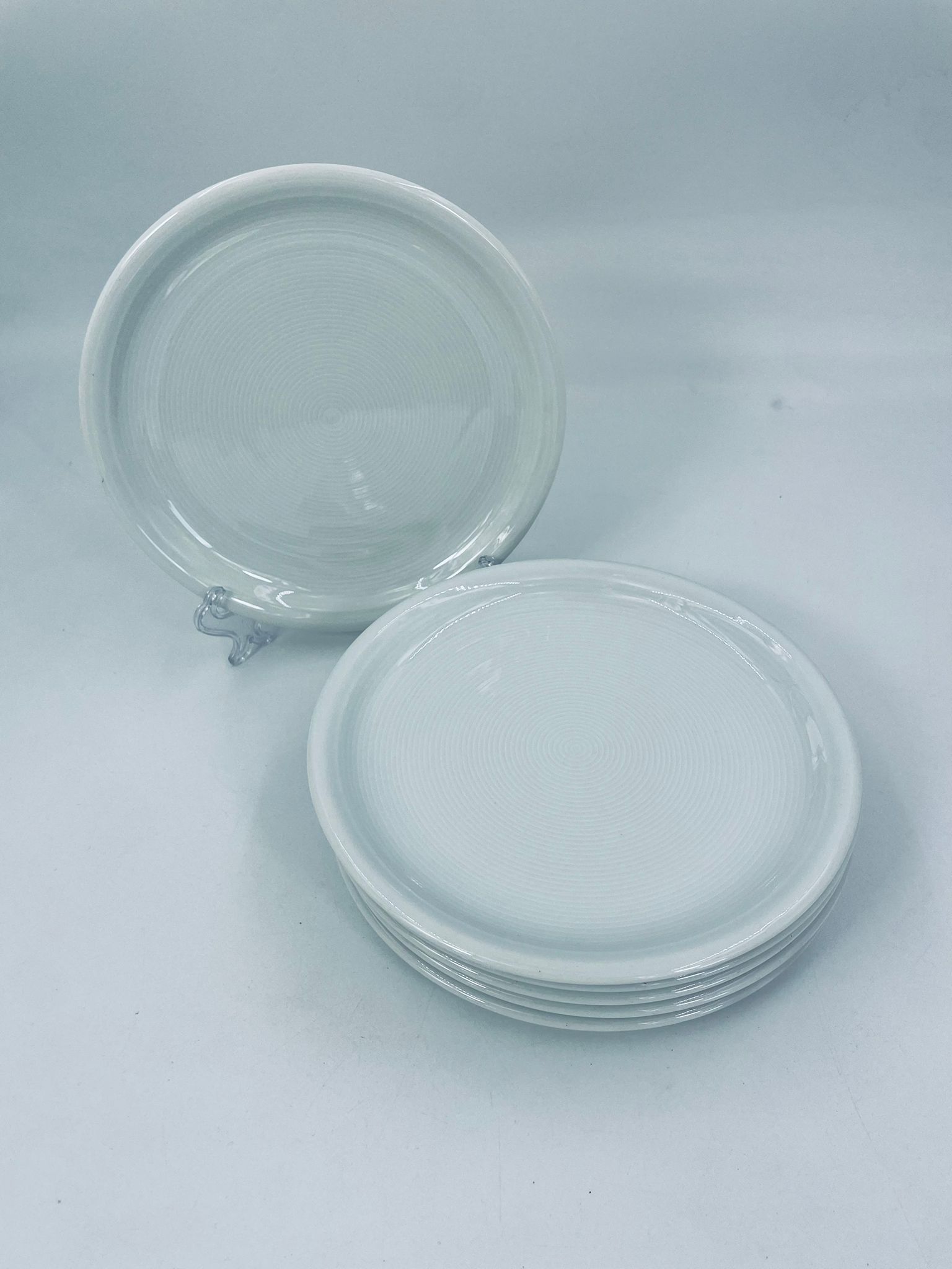 Porcelanowy talerz w białym w kolorze z motywem koncentrycznych żłobień. Element zastawy stołowej.