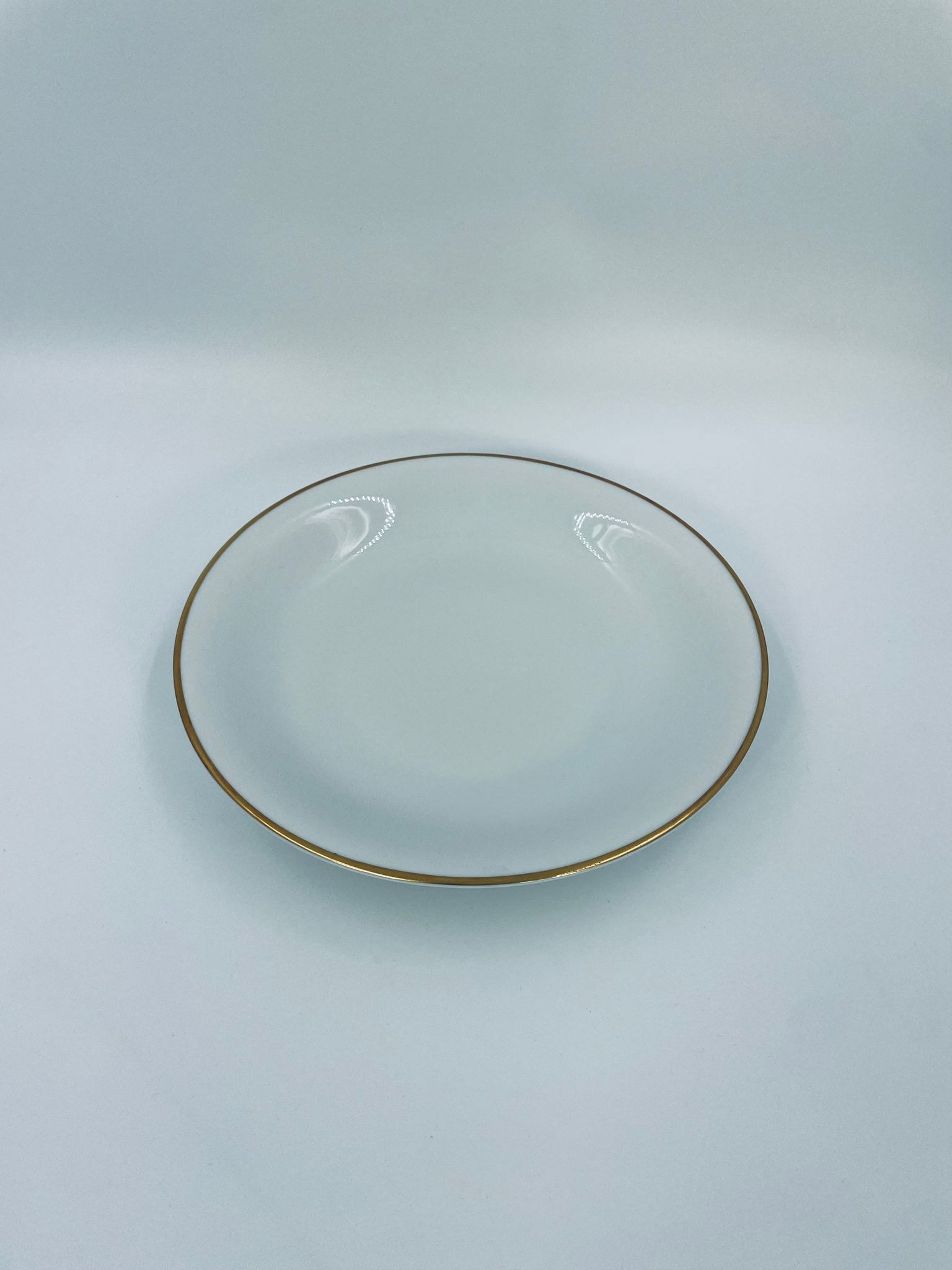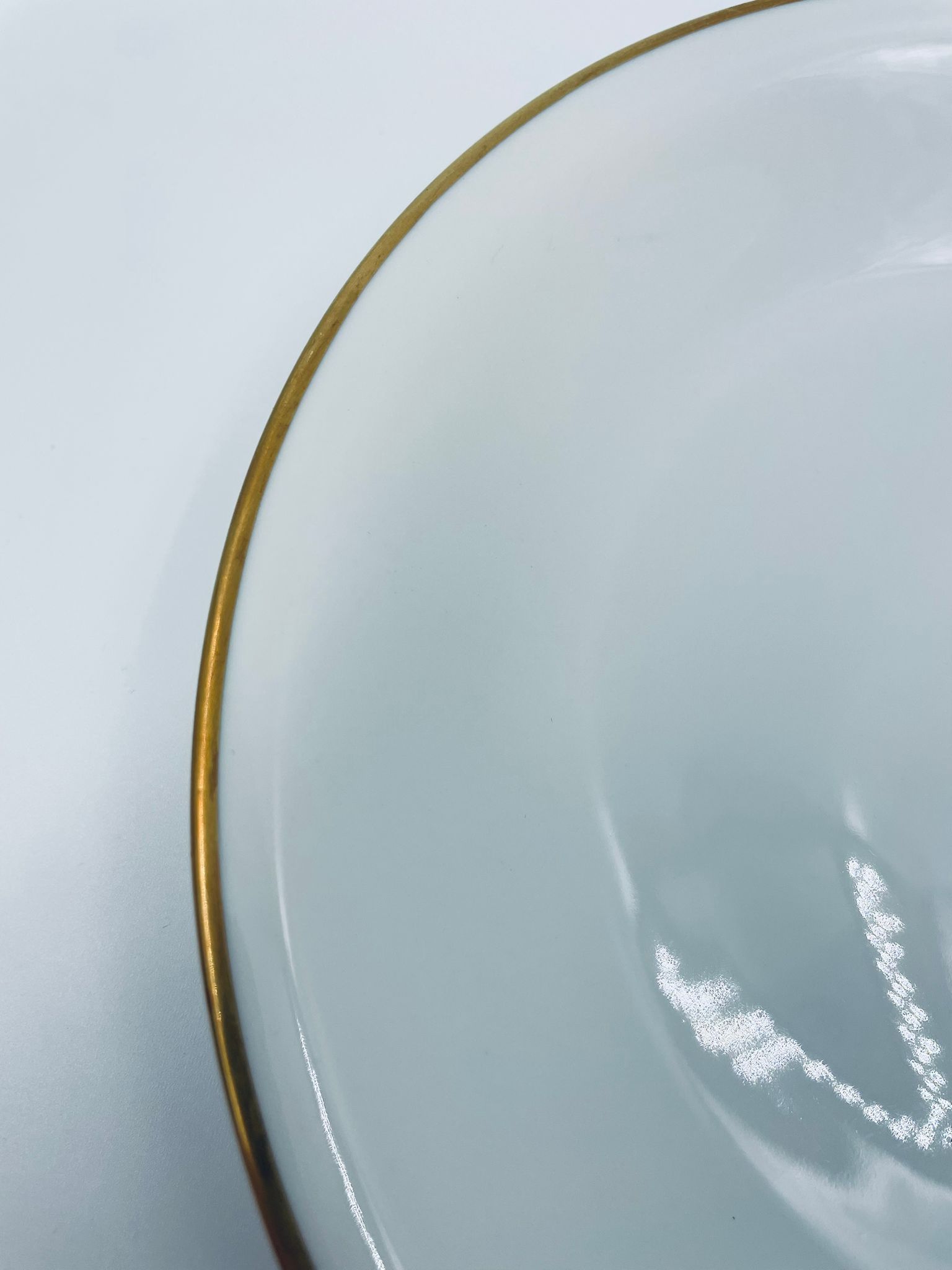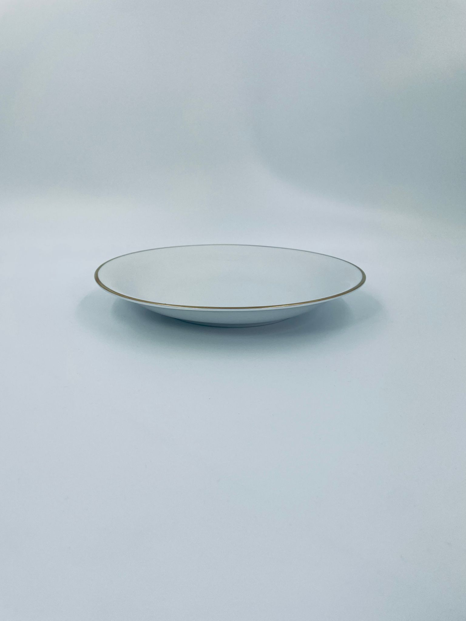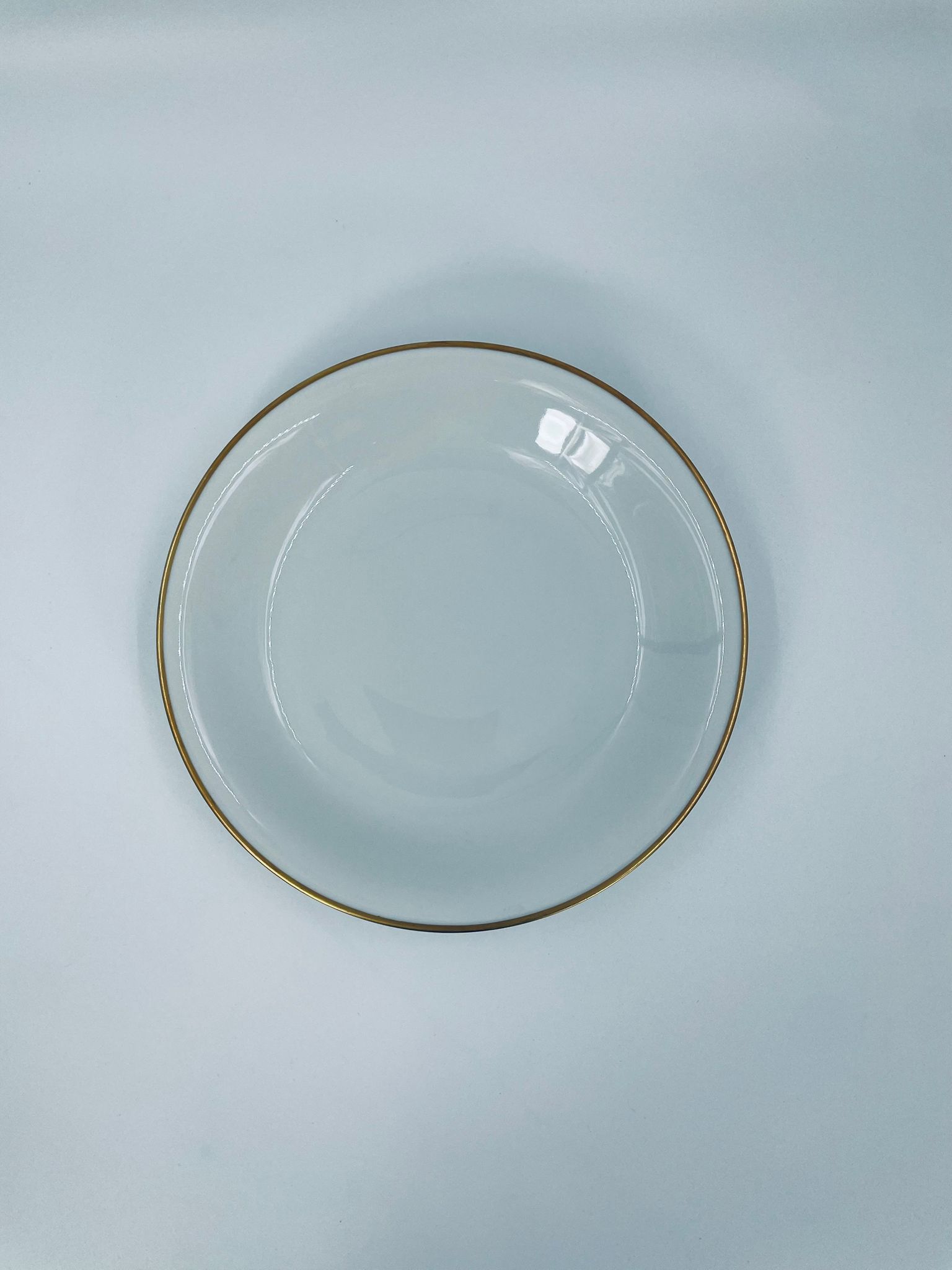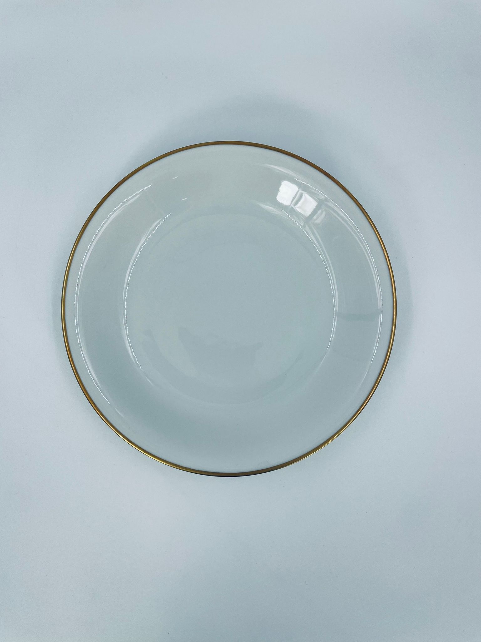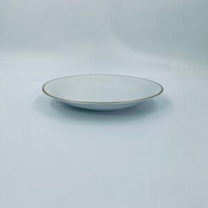 Talerz głęboki obiadowy wytwórni KPM Krister, wykonany z wysokiej jakości białej porcelany. Talerz elegancki, klasyczny, wykończony złoceniem na rancie.