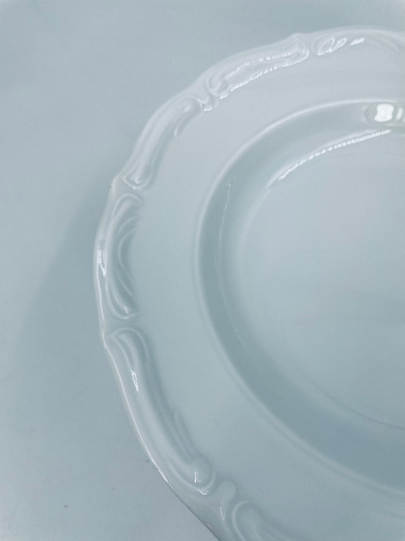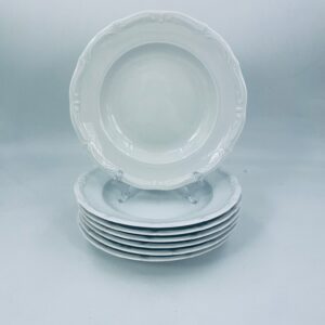 Talerz głęboki z kolekcji Maria Teresa Wałbrzych, klasyczny element zastawy stołowej. Polska porcelana w kolorze białym z charakterystycznym falistym brzegiem.