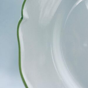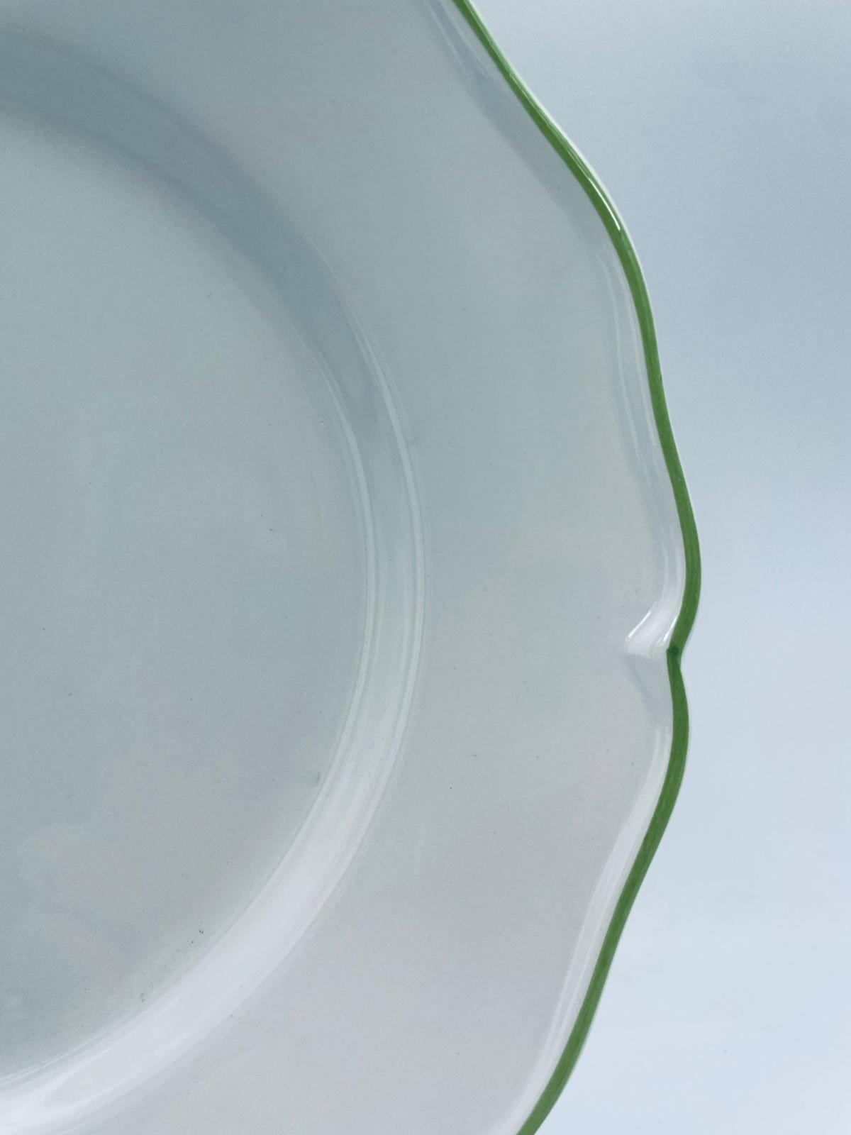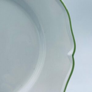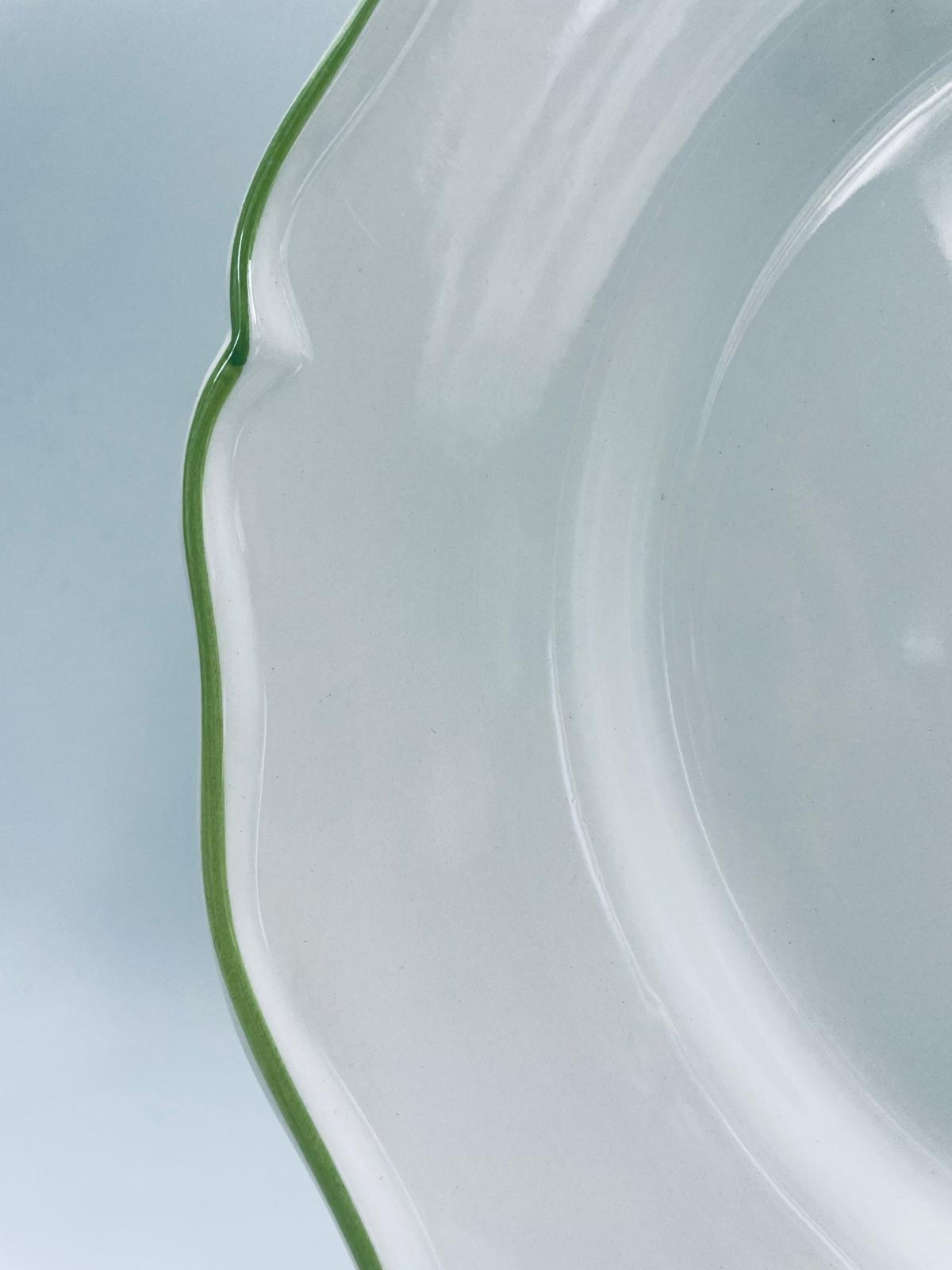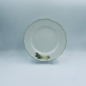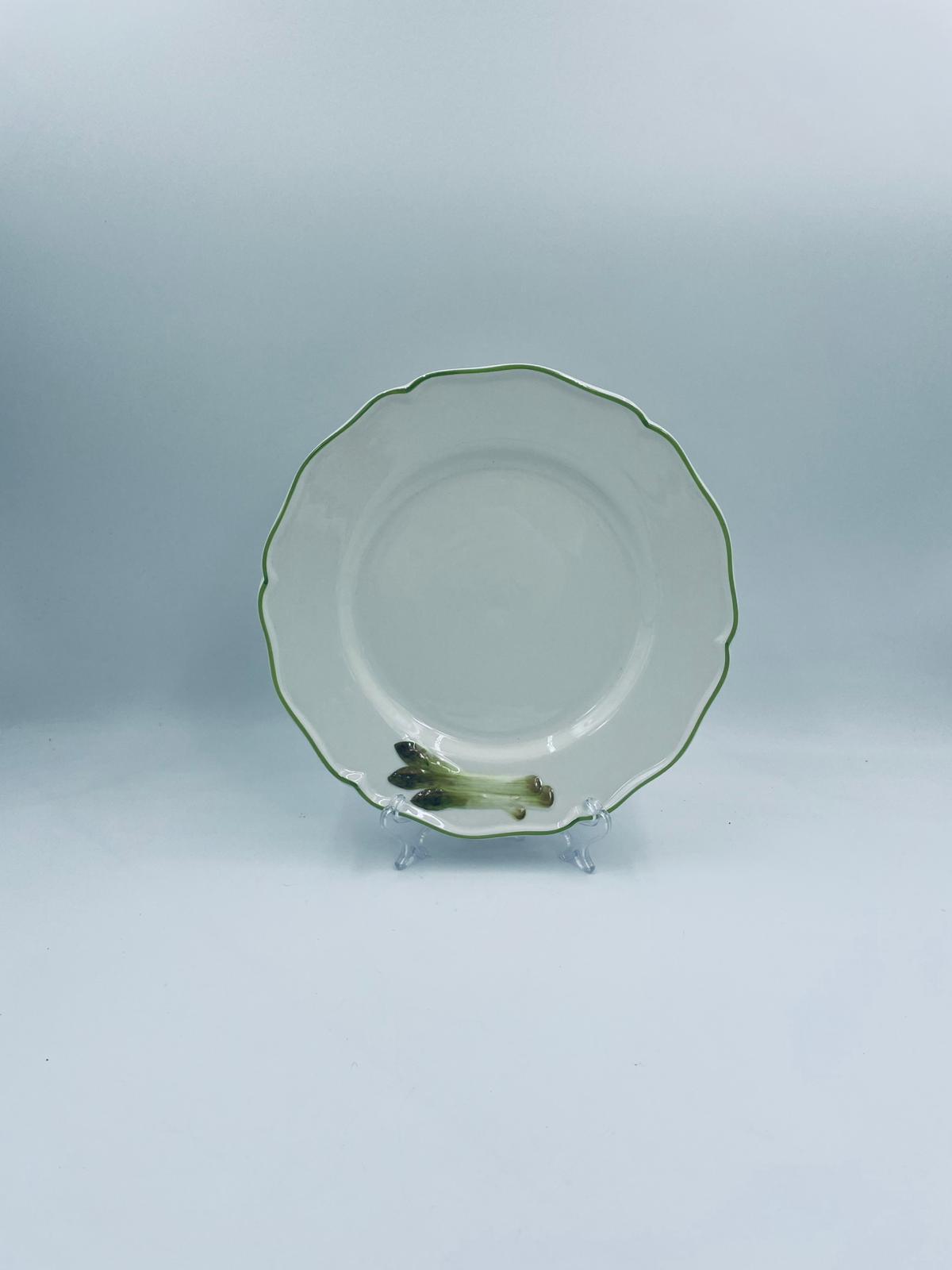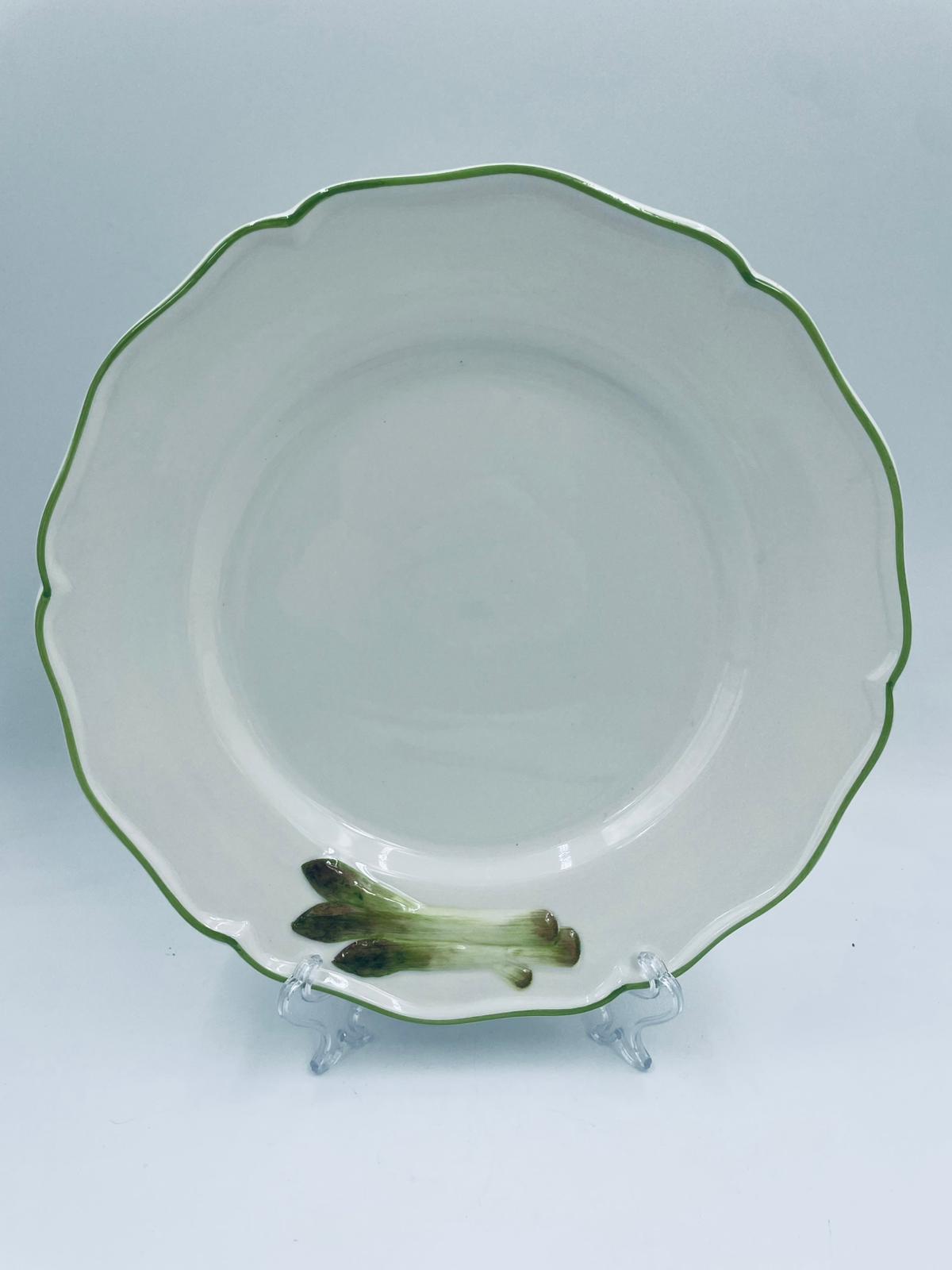 Talerz płaski obiadowy lub do serwowania z zielonym rantem z motywem szparagów.