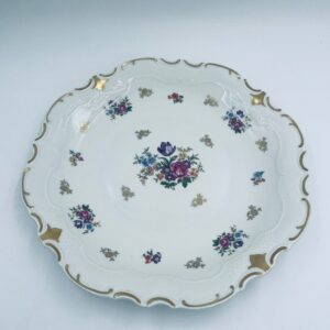 Duży talerz porcelanowy z motywem kwiatowym i złocony wyprodukowany w latach 40-stych przez Democratic Republic Fin China. Patera z kolekcji ekskluzywnej.