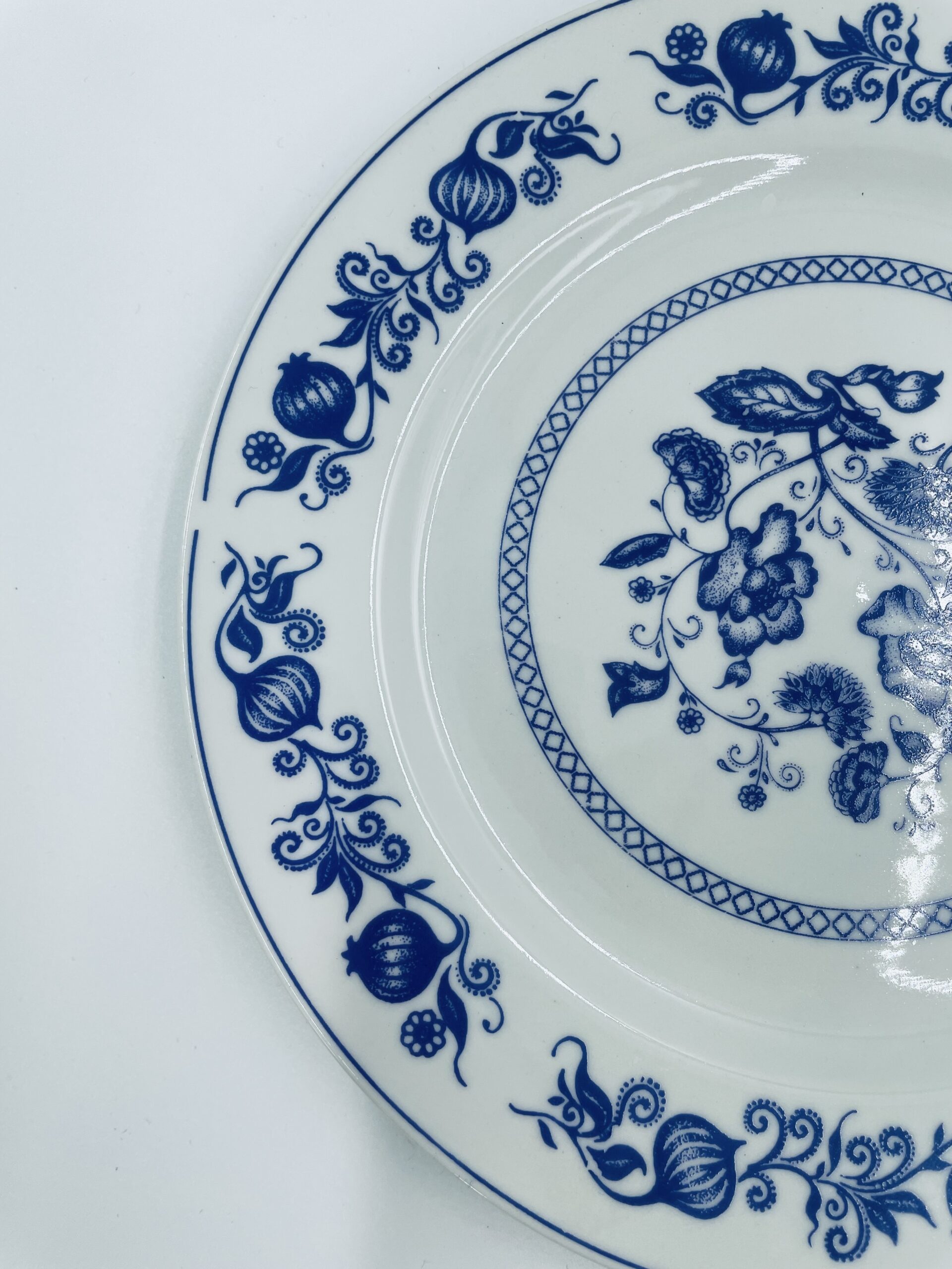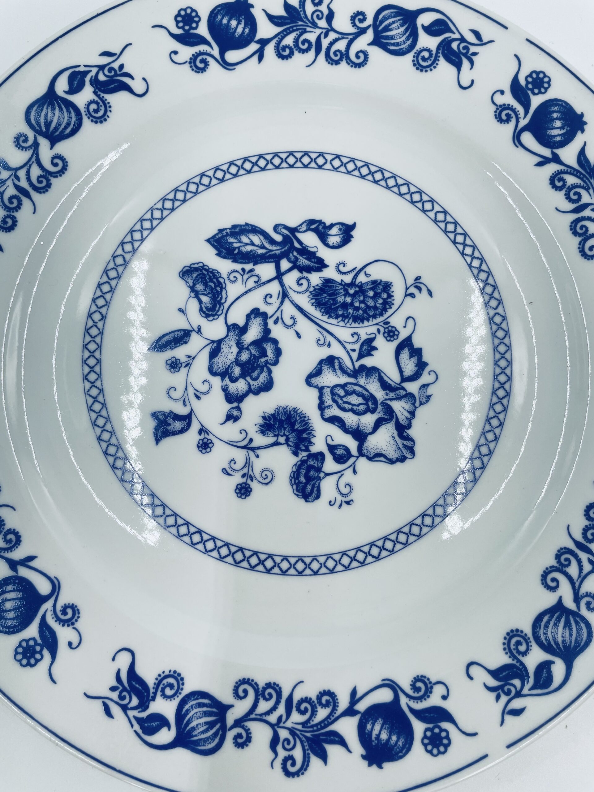 Talerzyk w kolorach kobaltu. Wyprodukowany w Chinach w wzorze cebulowym.