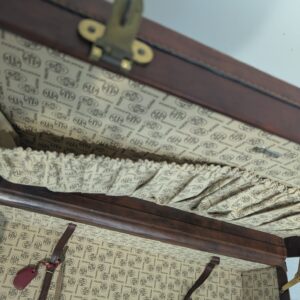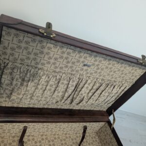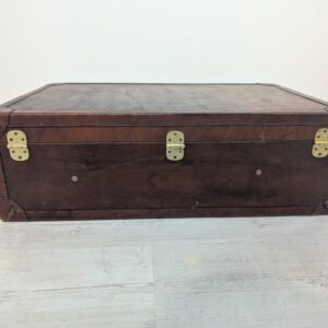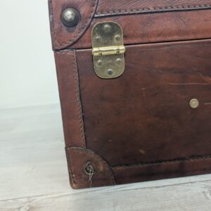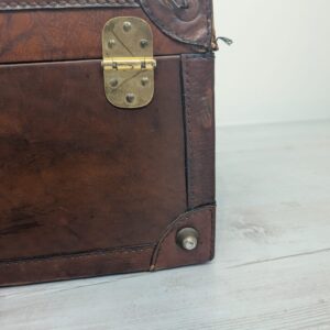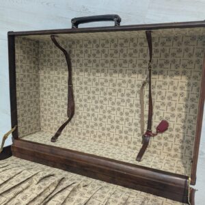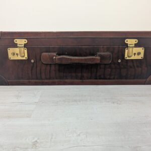 Włoska duża walizka z lat 50-tych wykonana z prawdziwej skóry. Klasyczny design i kolor brązowy nadają elegancji. Stan używany, idealna dla miłośników vintage.