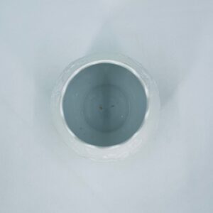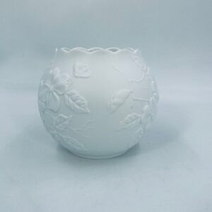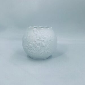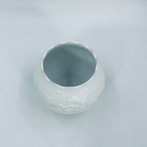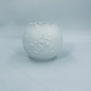 Wazon dekoracyjny wytwórni Kaiser, wykonany z wysokiej jakości białej porcelany biskwitowej, nieszkliwionej z zewnątrz i szkliwionej wewnątrz. Wazon charakteryzuje się falistą krawędzią oraz reliefowa dekoracja z motywem kwiatowym.