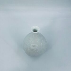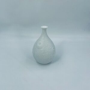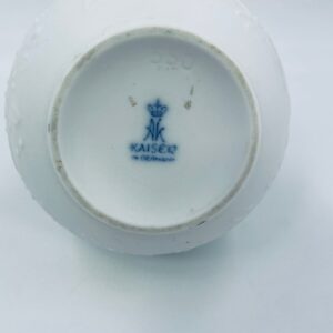 Wazon dekoracyjny wytwórni Kaiser, wykonany z wysokiej jakości białej porcelany Biswitowej, nieszkliwionej z zewnątrz i szkliwionej wewnątrz. Wazon posiada dekoracyjny, wypukły wzór z motywem kwiatowym.