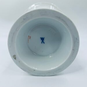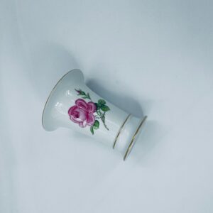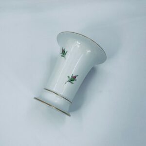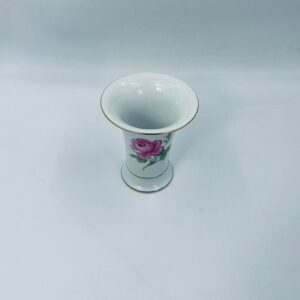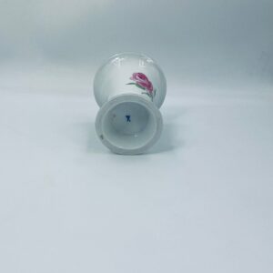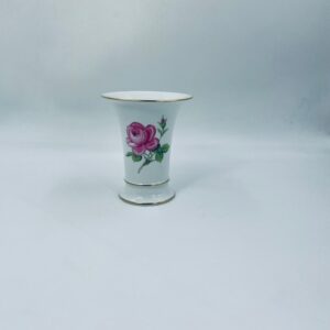 Wazon dekoracyjny wytwórni Meissen, wykonany z najwyższej jakości białej porcelany. Wazonik o eleganckiej formie z dekoracją różowej róży, wykończony zleceniem na rancie.