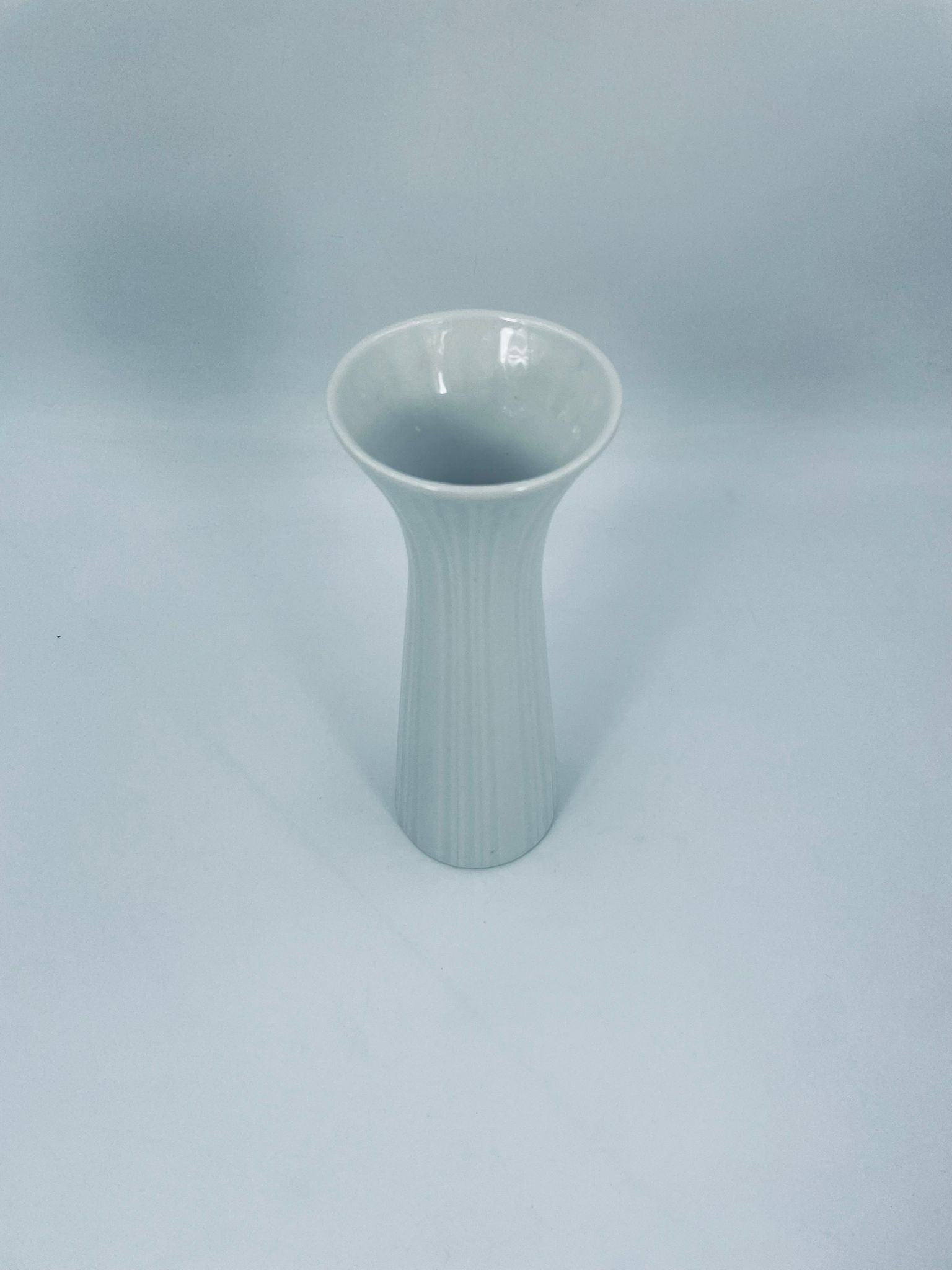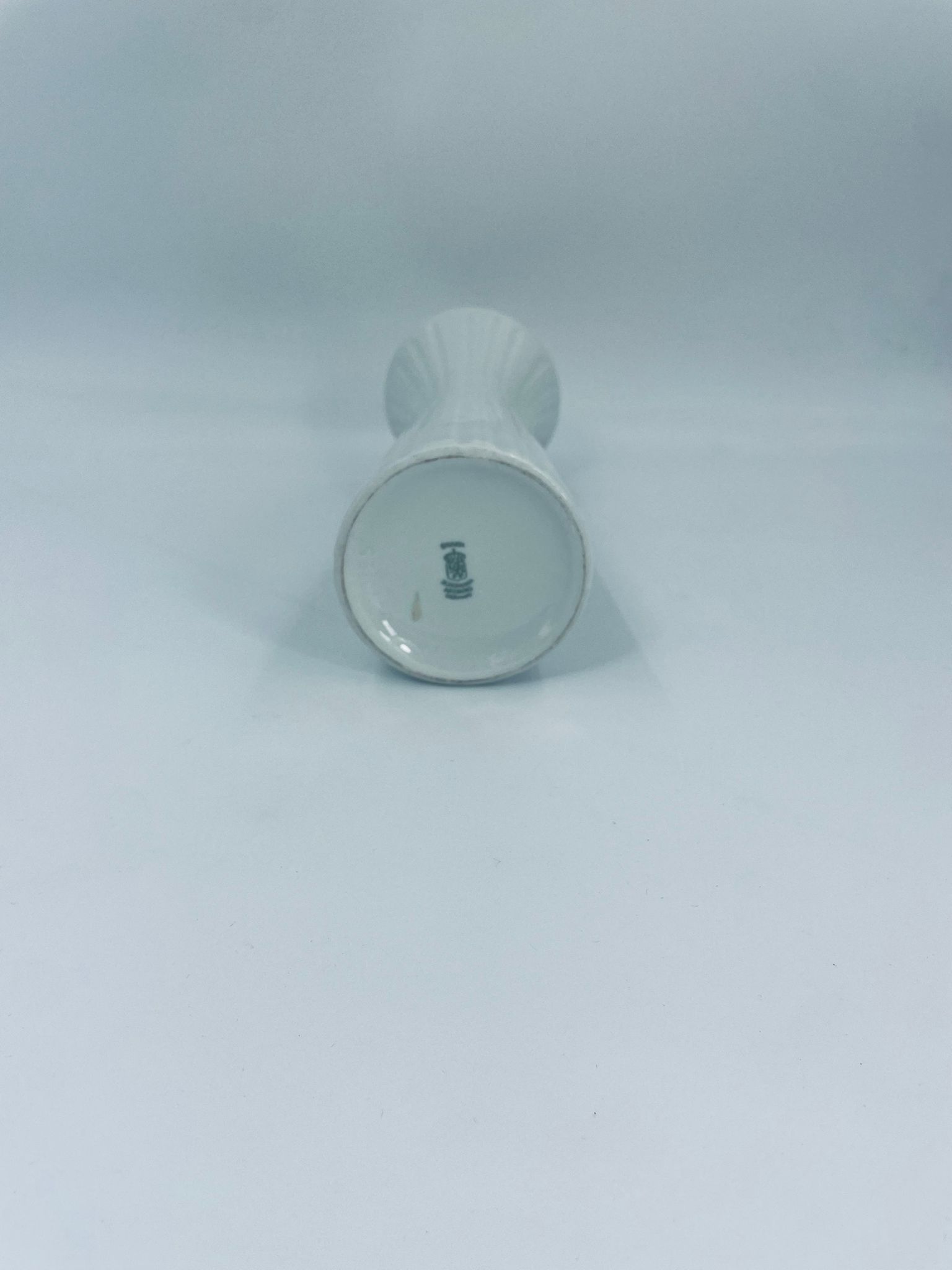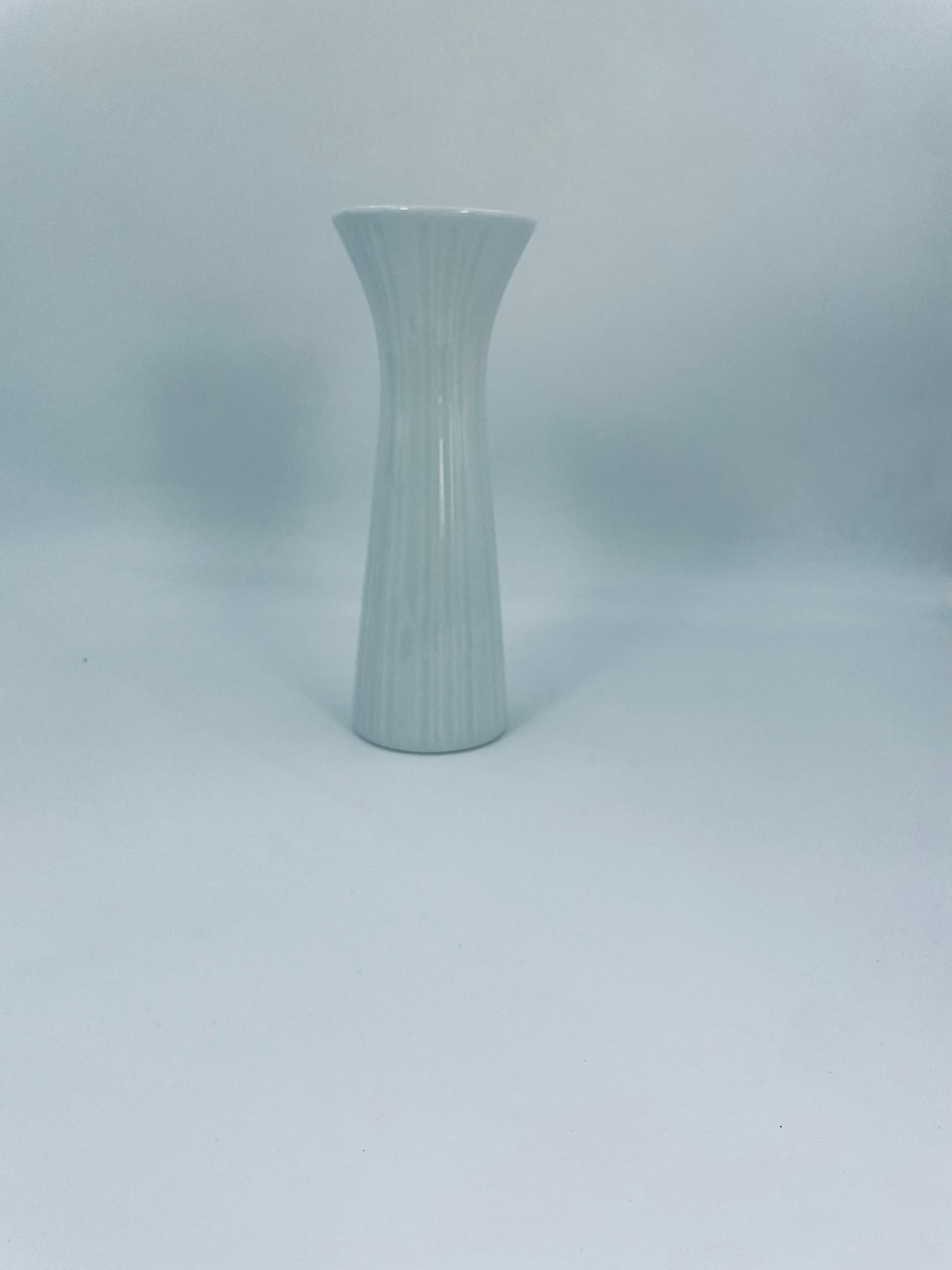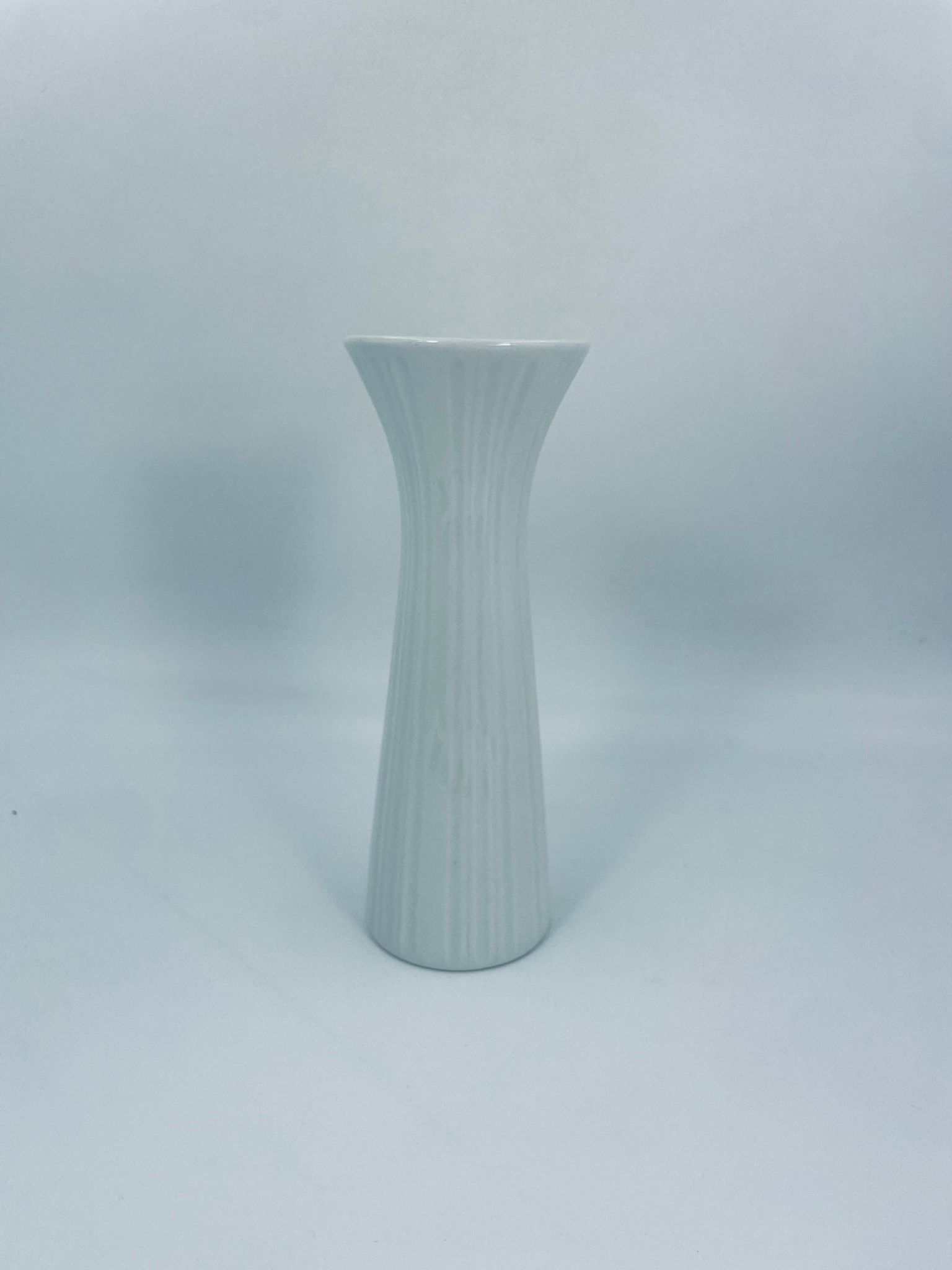 Wazon dekoracyjny wytwórni Schumann Arzberg Bavaria, wykonany z wysokiej jakości białej porcelany. Wazon o klasycznym kształcie z rozszerzającą się szyjką i charakterystyczną elegancką formą z pionowymi żłobieniami.