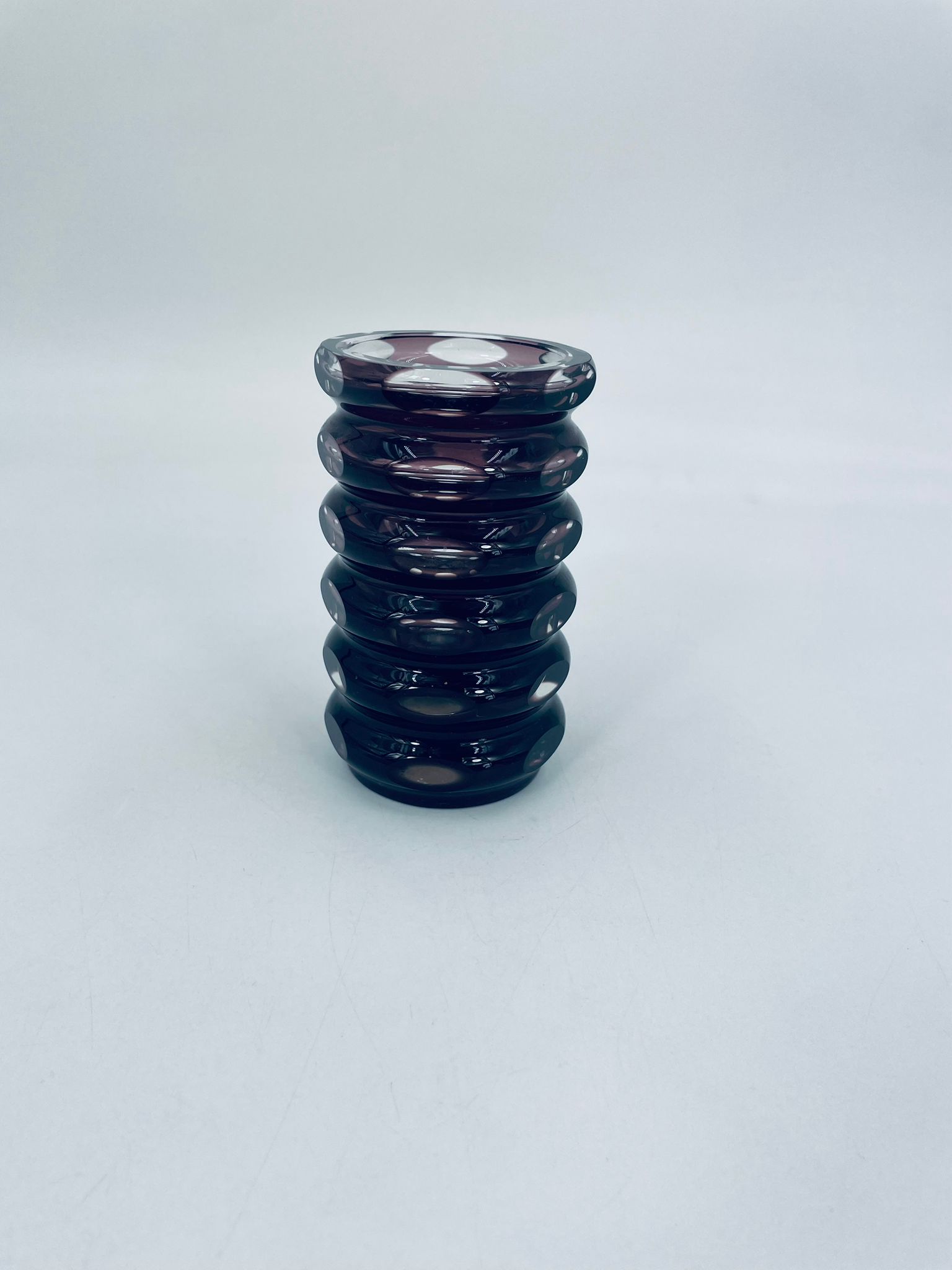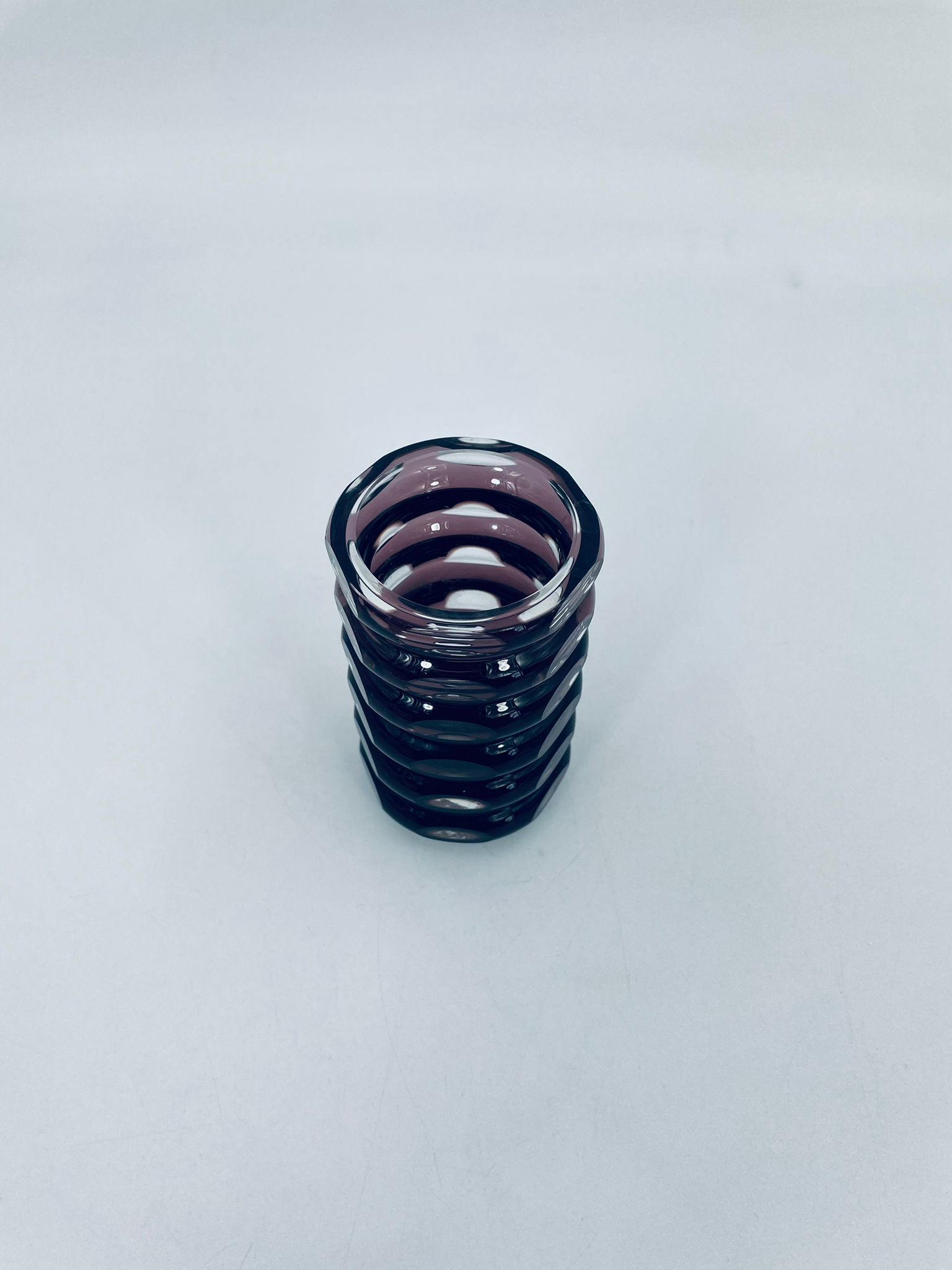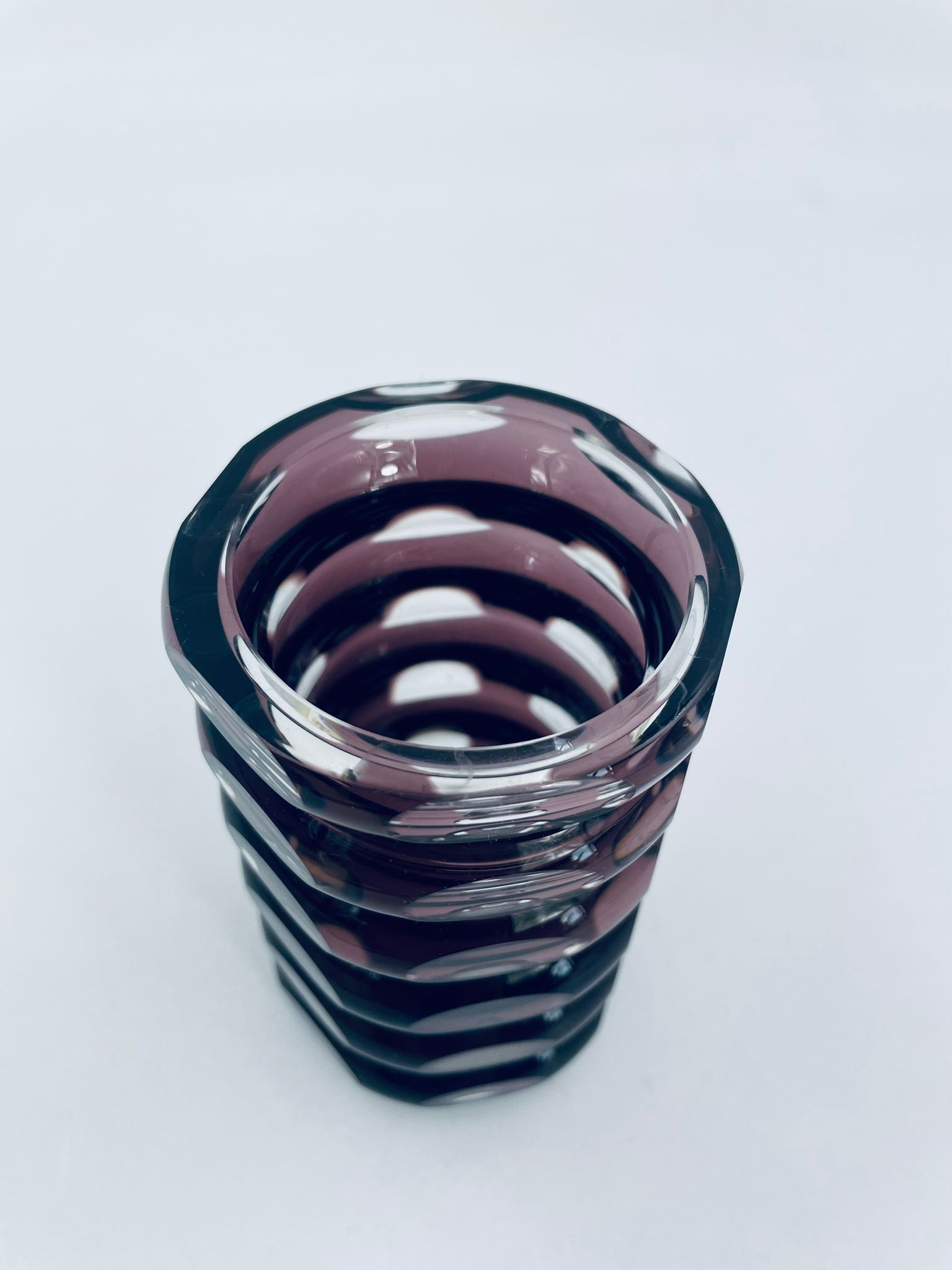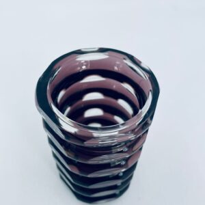 Zabytkowy Wazon Jlm Kristall, z ciężkiego, grubego, ciętego szkła kryształowego w kolorze fioletowym.