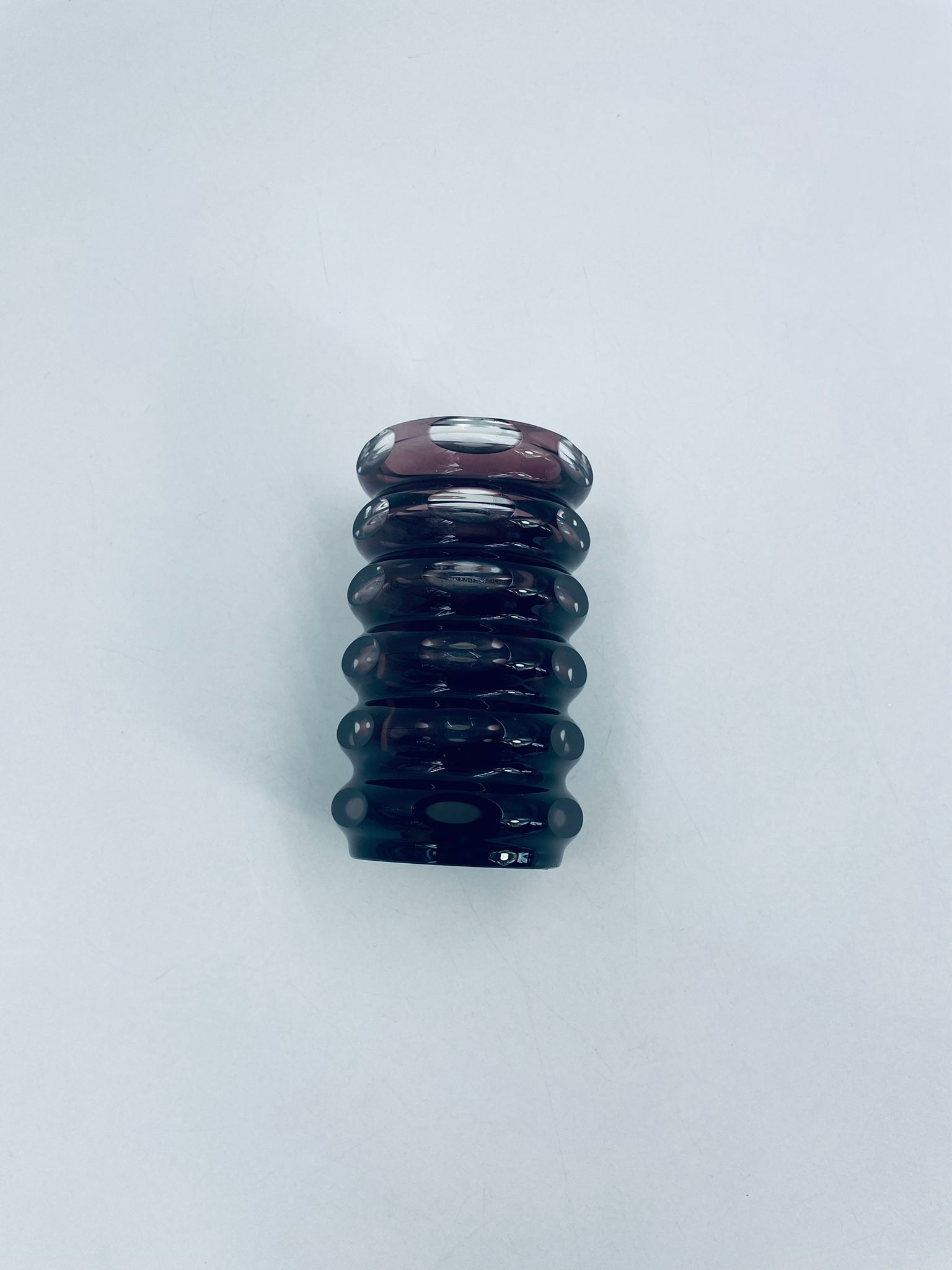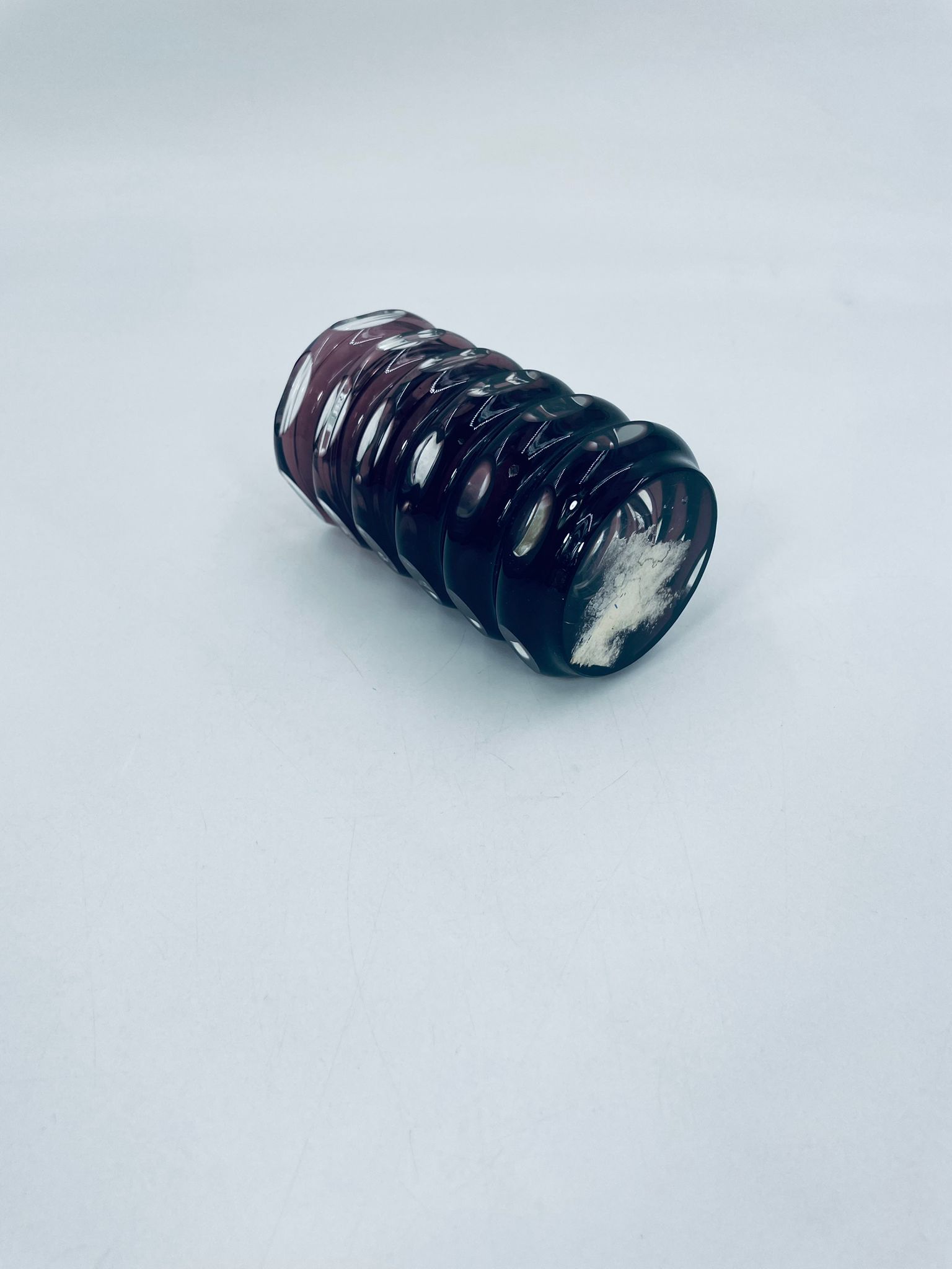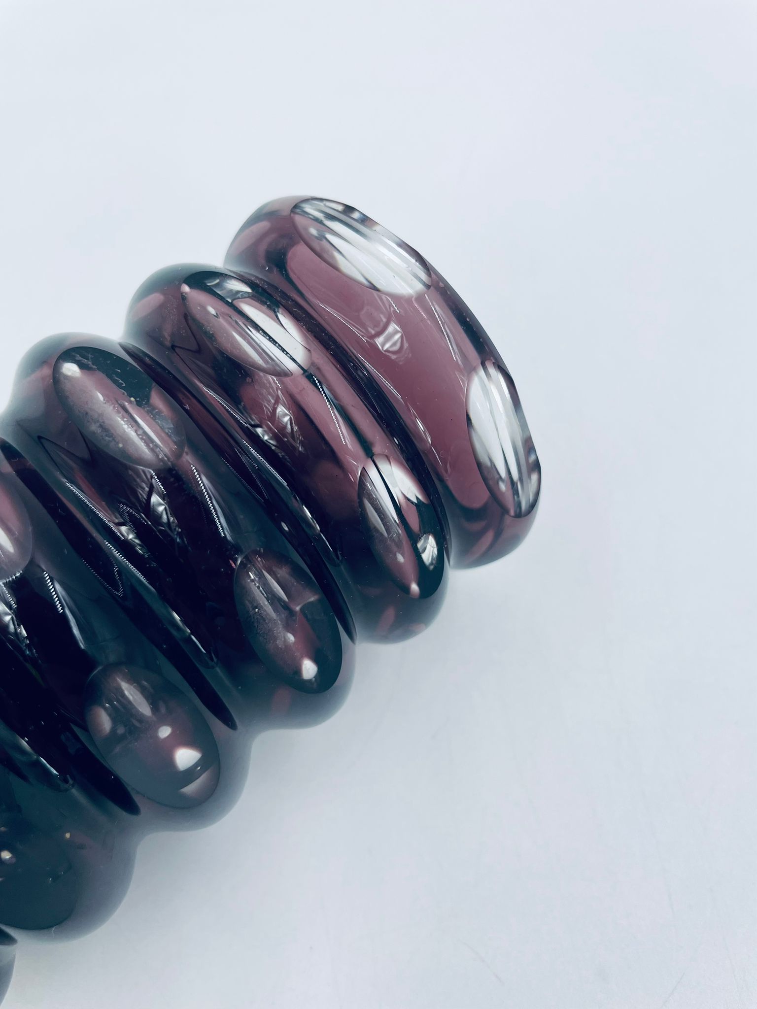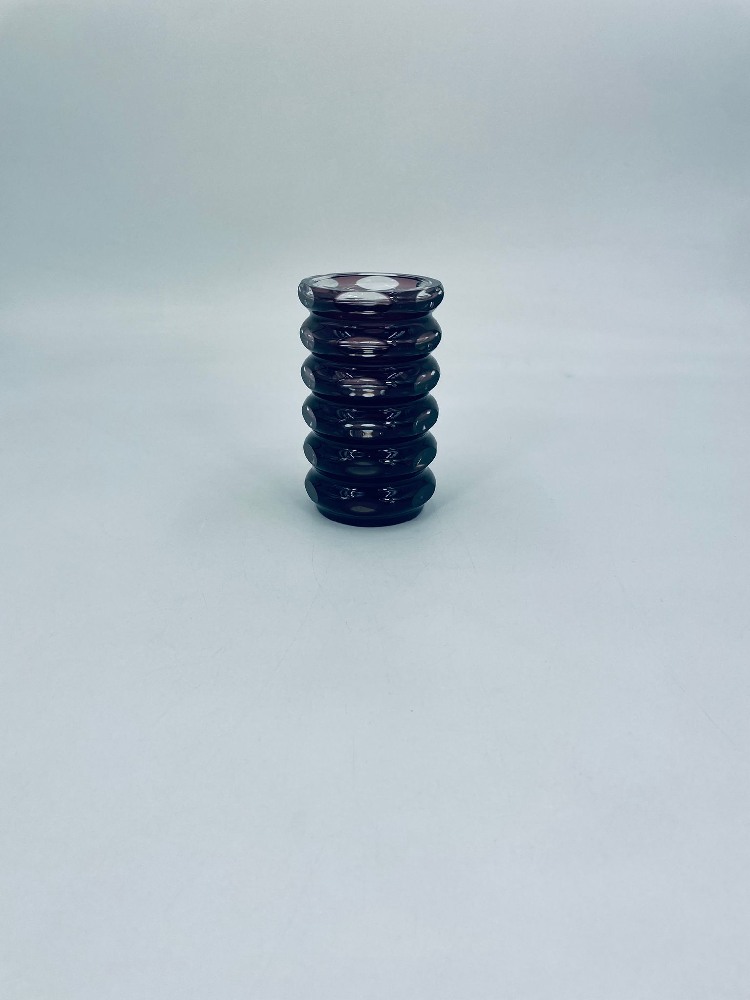 Zabytkowy Wazon Jlm Kristall, z ciężkiego, grubego, ciętego szkła kryształowego w kolorze fioletowym.
