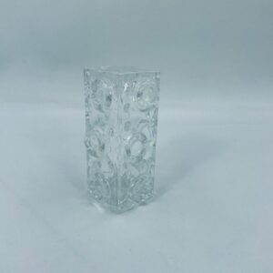 Artystyczny i kolekcjonerski Wazon dekoracyjny zaprojektowany przez Josefa Schotta dla szwedzkiej firmy Smalandshyttan w latach 60tych. Wazon wykonany z wysokiej jakości, formowanego szkła kryształowego, przezroczystego. Charakteryzuje się unikatowym wzorem wypukłych kółek i bąbelków.