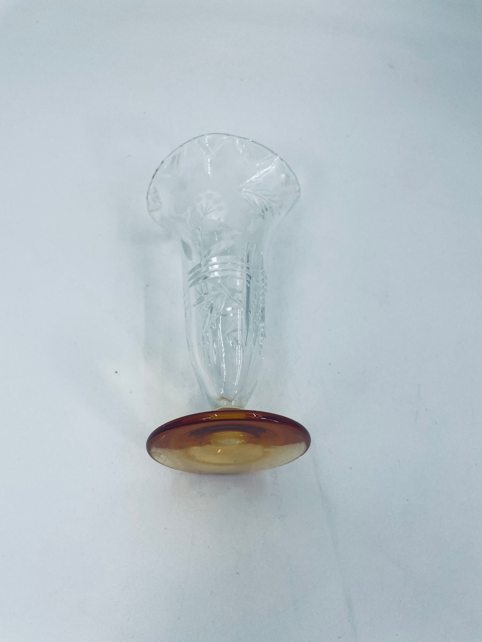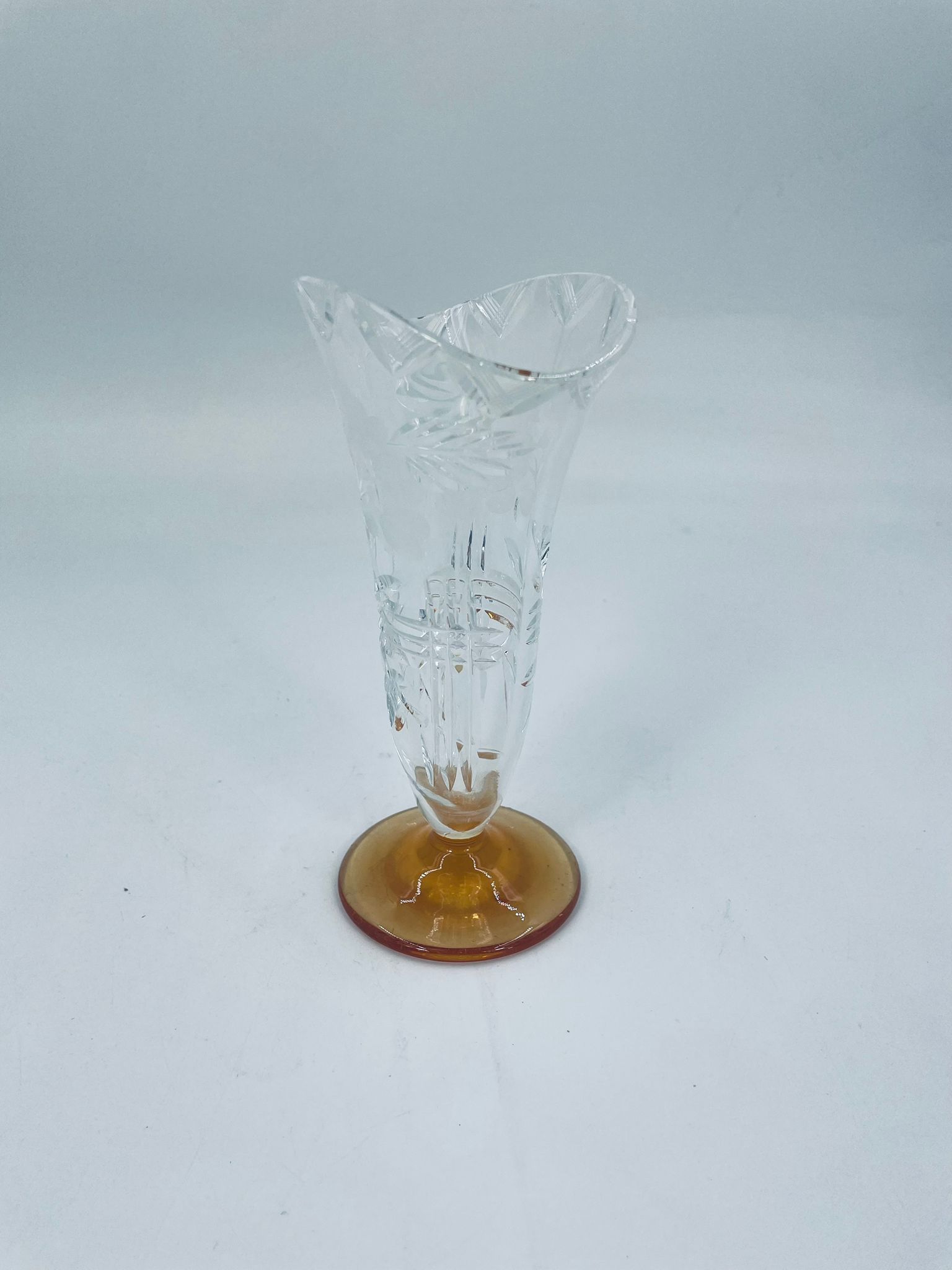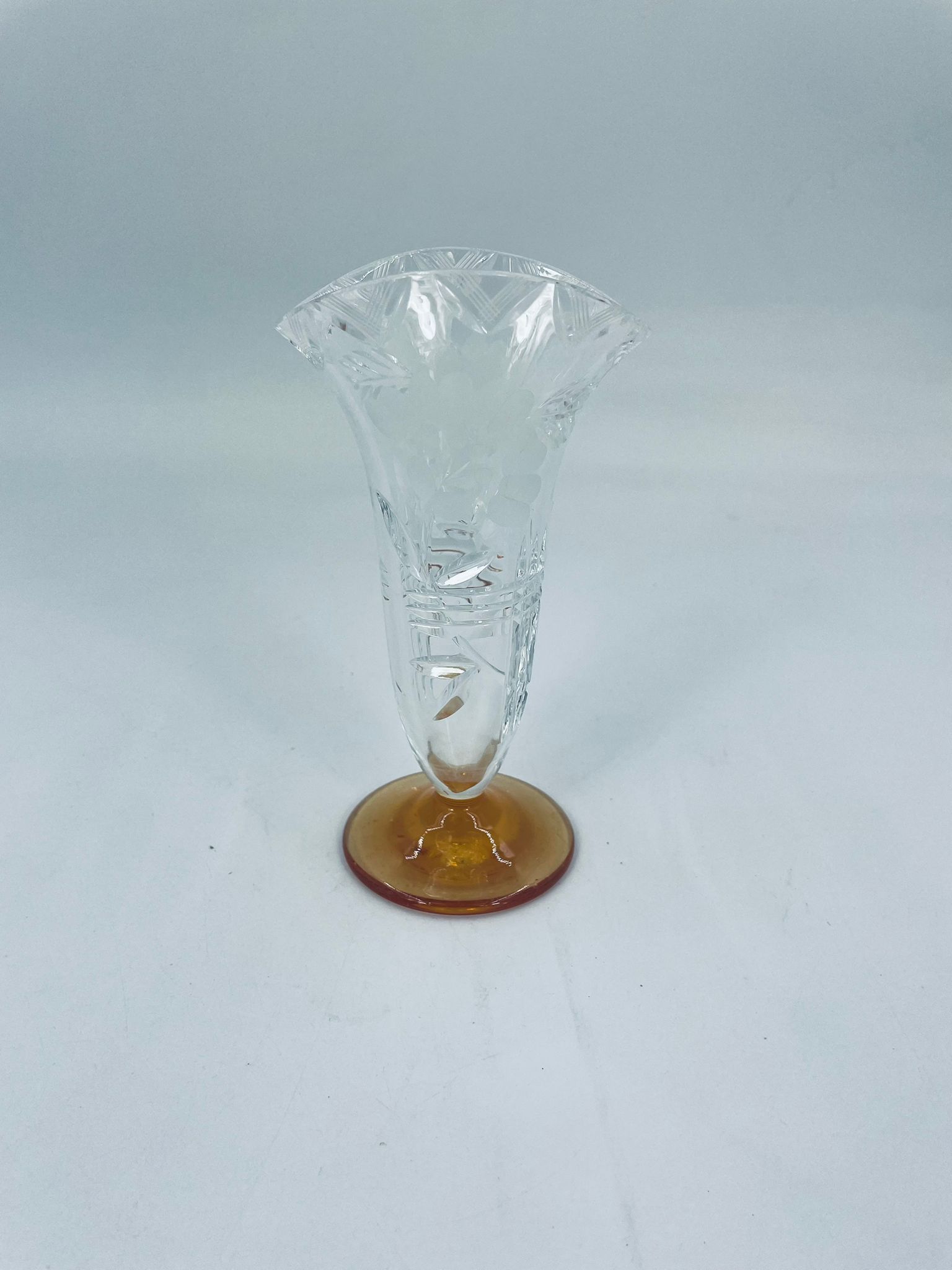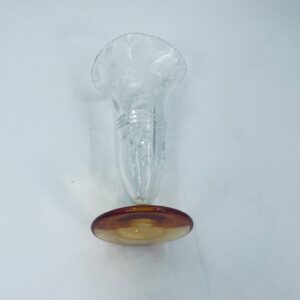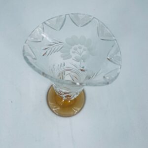 Szklany wazon z pięknym szlifem na nóżce w kolorze pomarańczowym. Pięknie się prezentuje i pasuje do każdego wnętrza.
